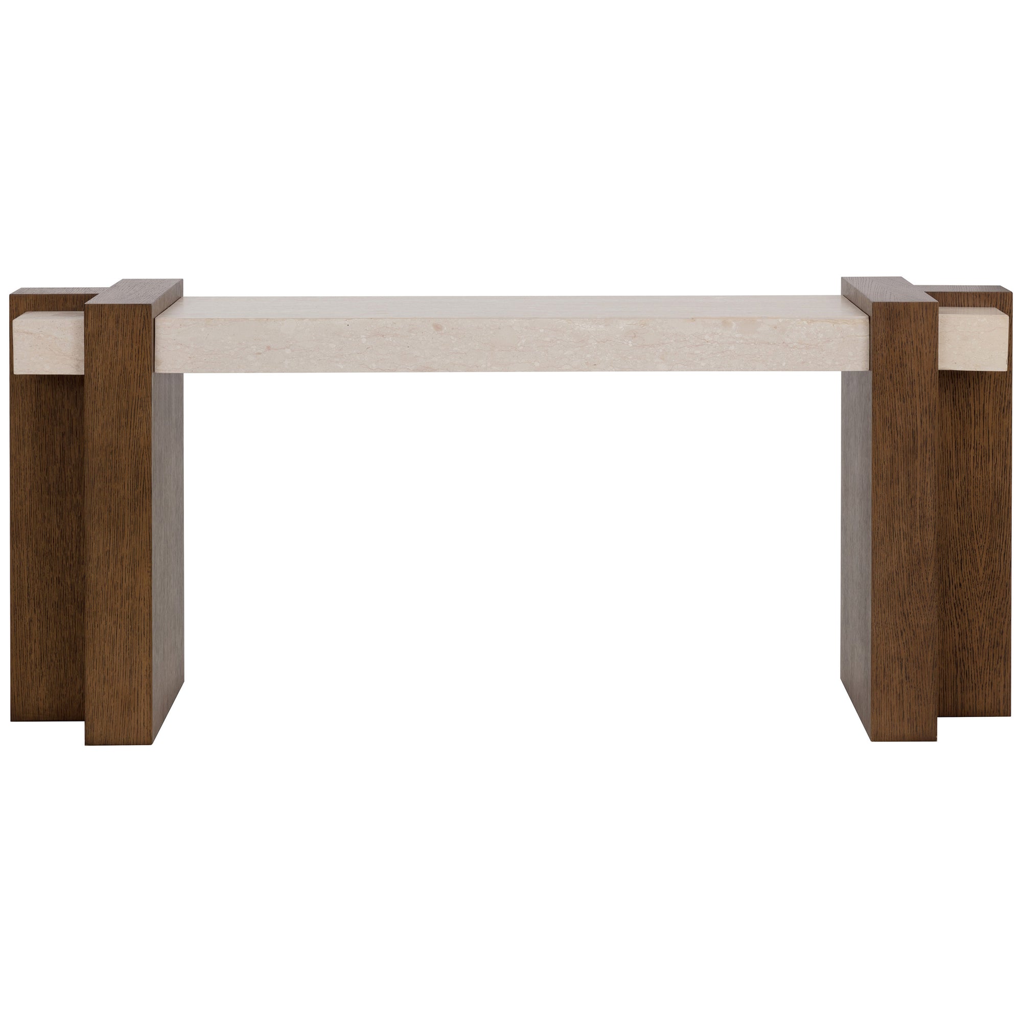 The Minerva Console Table combines a solid marble top with interlocking wooden legs to create a bold, architectural silhouette. Its sculptural design and natural materials bring a sophisticated, statement-making presence to entryways, dining areas, or living spaces.