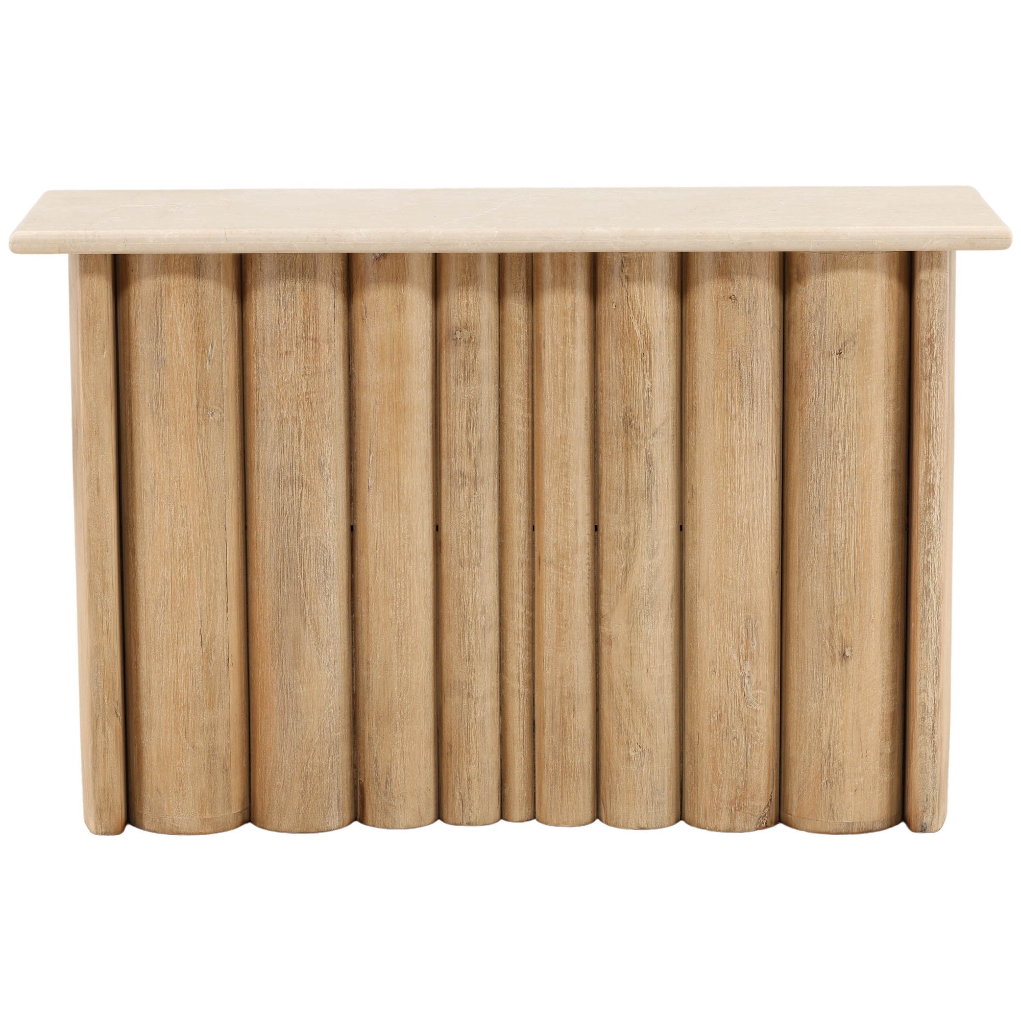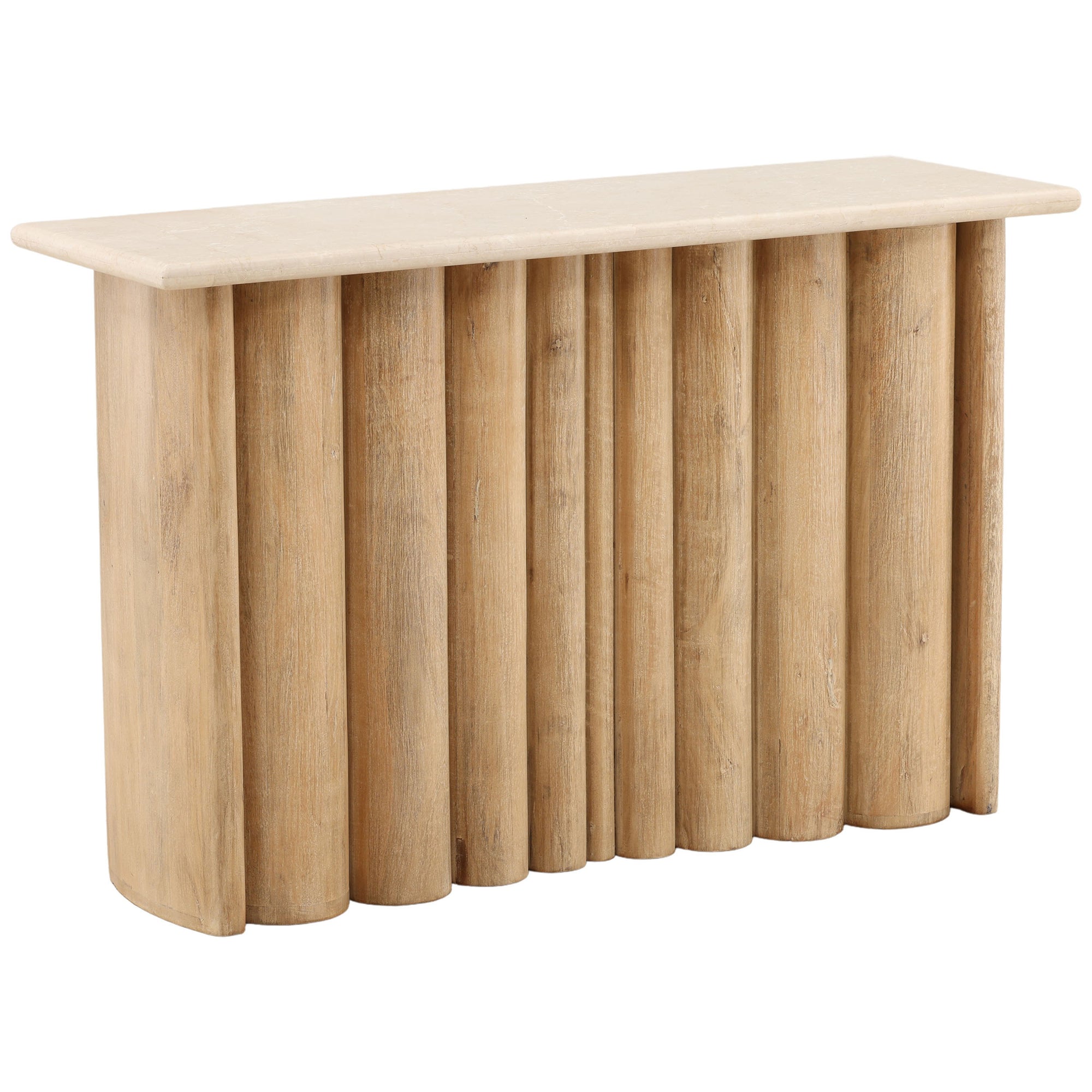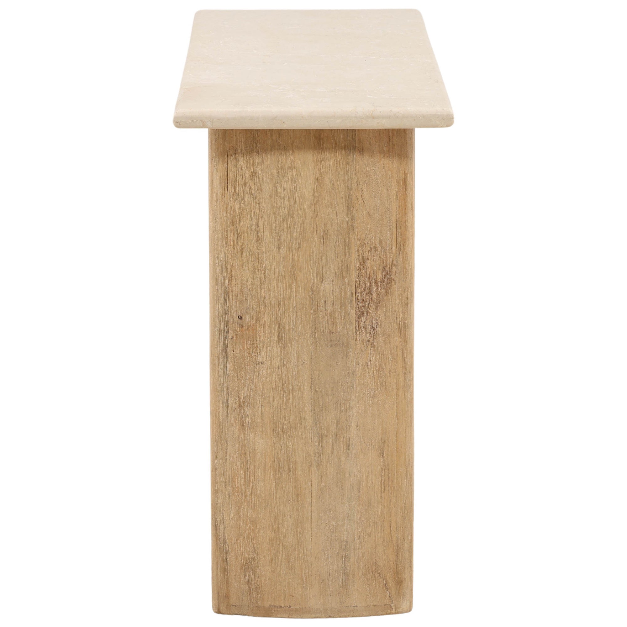 The Thandi Console Table is a statement of organic elegance, perfect for an entryway or living space. It features a stunning Botticino stone top that rests on a solid mango wood base, creating a beautiful harmony of natural materials. The light natural finish on both elements highlights their unique textures and variations. With its slim profile and sophisticated design, the Thandi Console Table provides a stylish surface for lamps, decor, and everyday essentials.