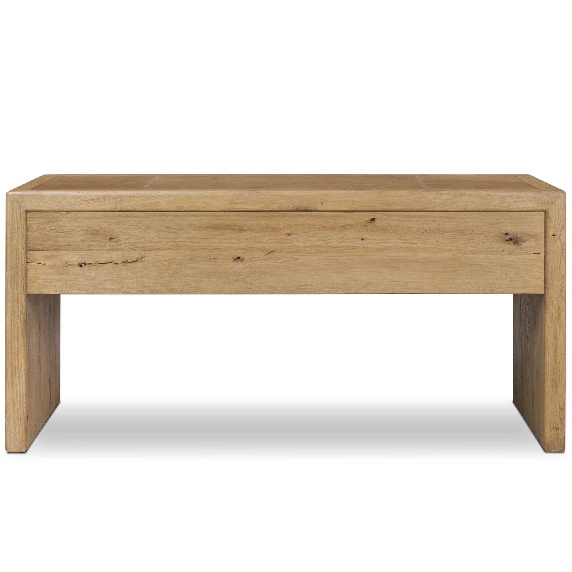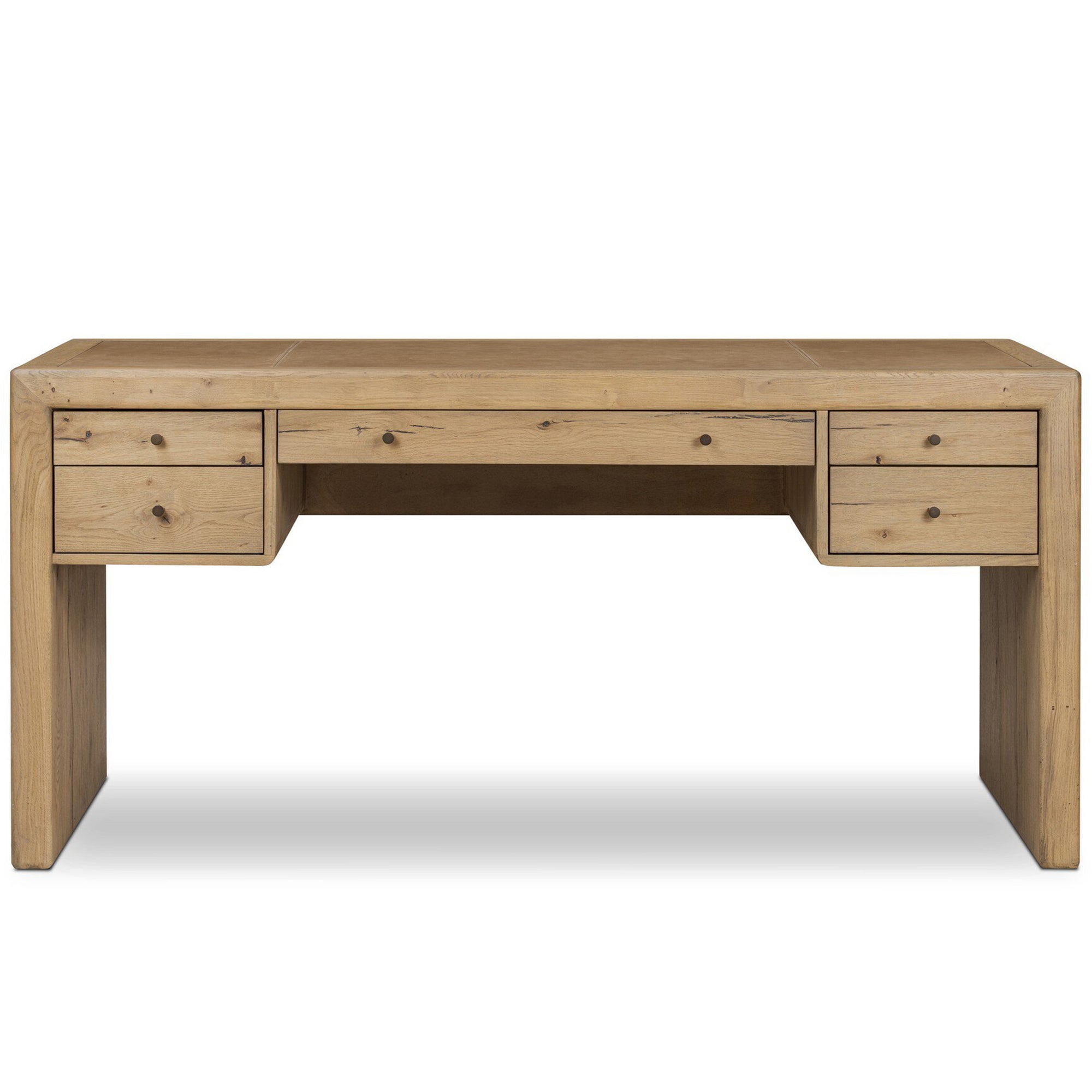 The Nico Desk reimagines Nordic minimalist design with its thick profile and compact drawers. Crafted from solid oak and veneers in a natural finish, this desk is elevated for the home office by a stylish top-grain leather inlay. With ample space and integrated storage, it blends sophisticated design with high functionality.