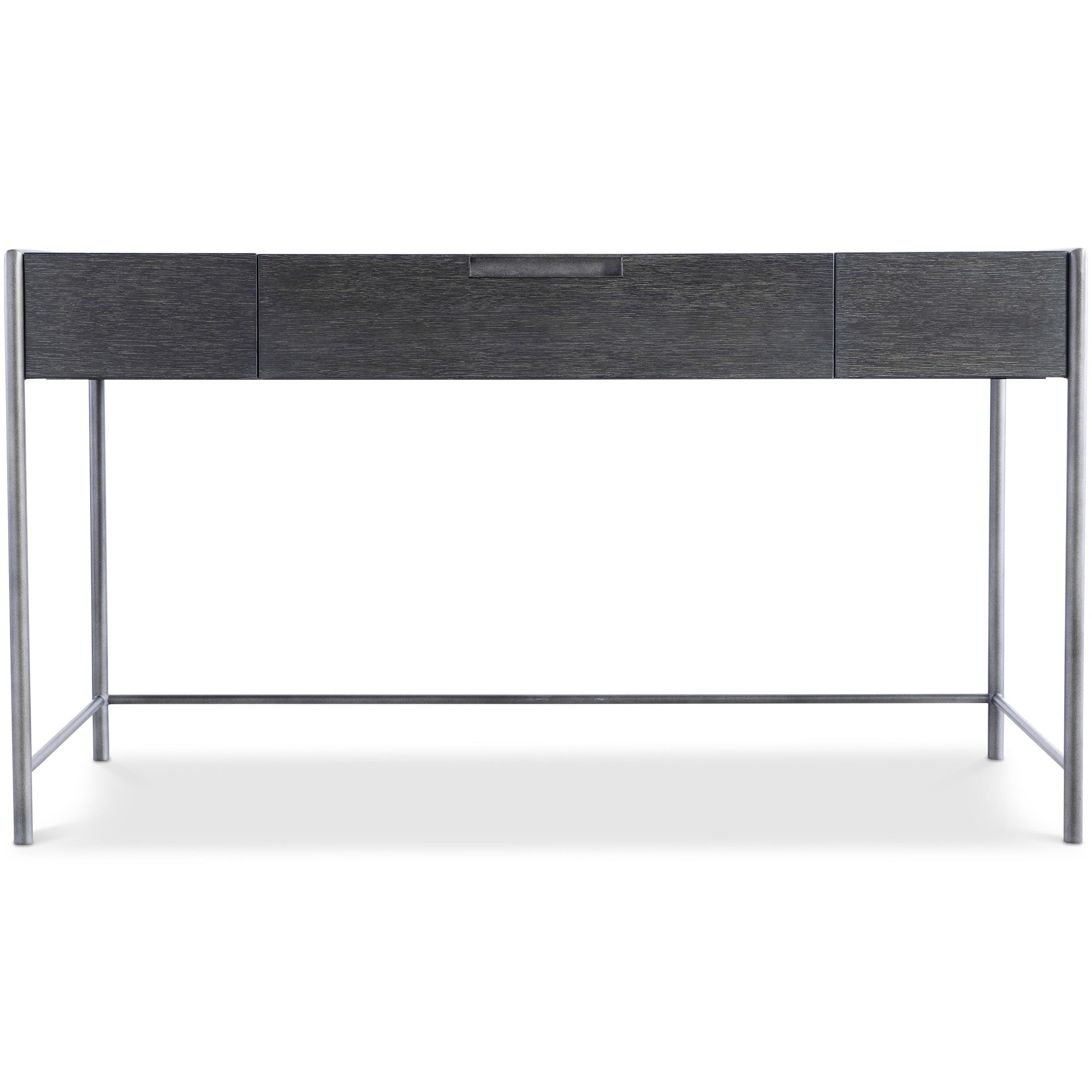 The Outline Desk features a distinctive design with a metal frame that wraps around the wooden desktop. The Atra-finished metal extends to form sleek legs, creating a refined yet casual look with a minimalist edge. Perfect for modern spaces seeking understated sophistication.
