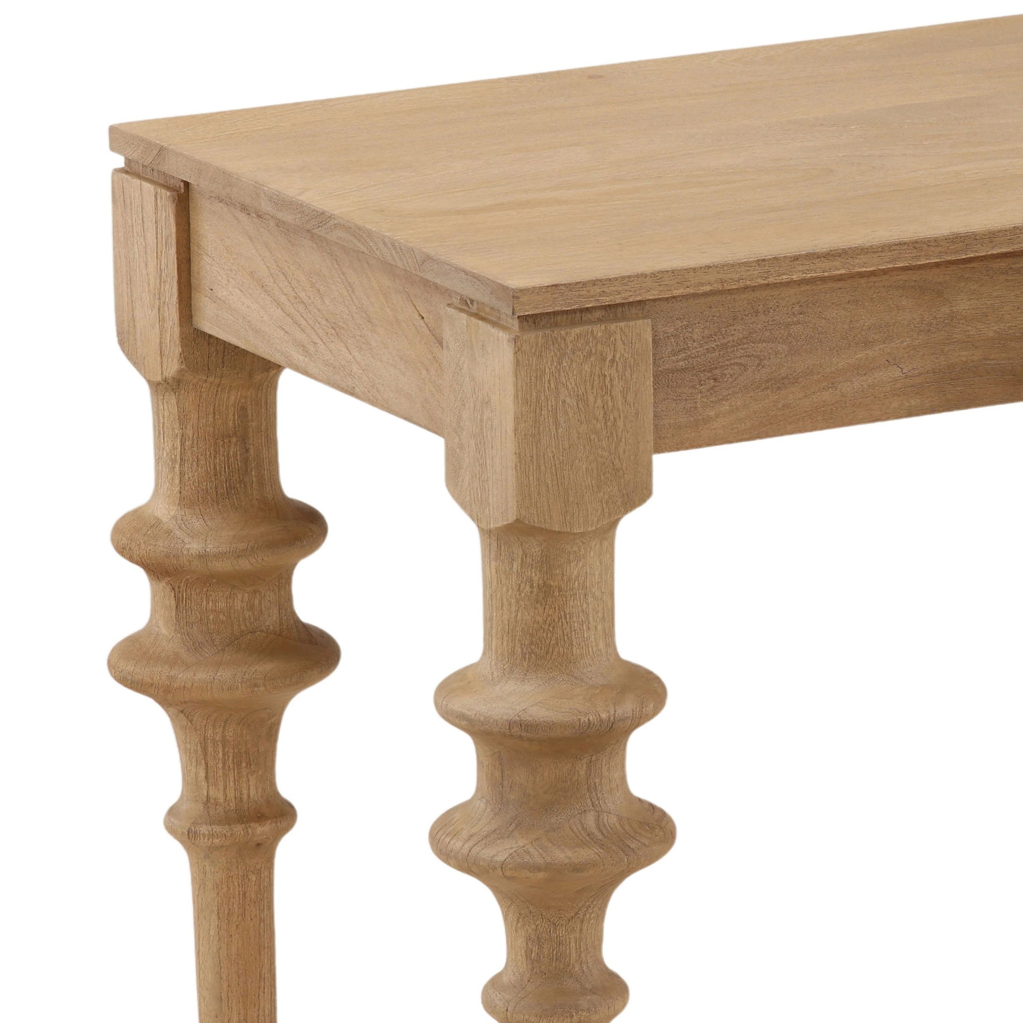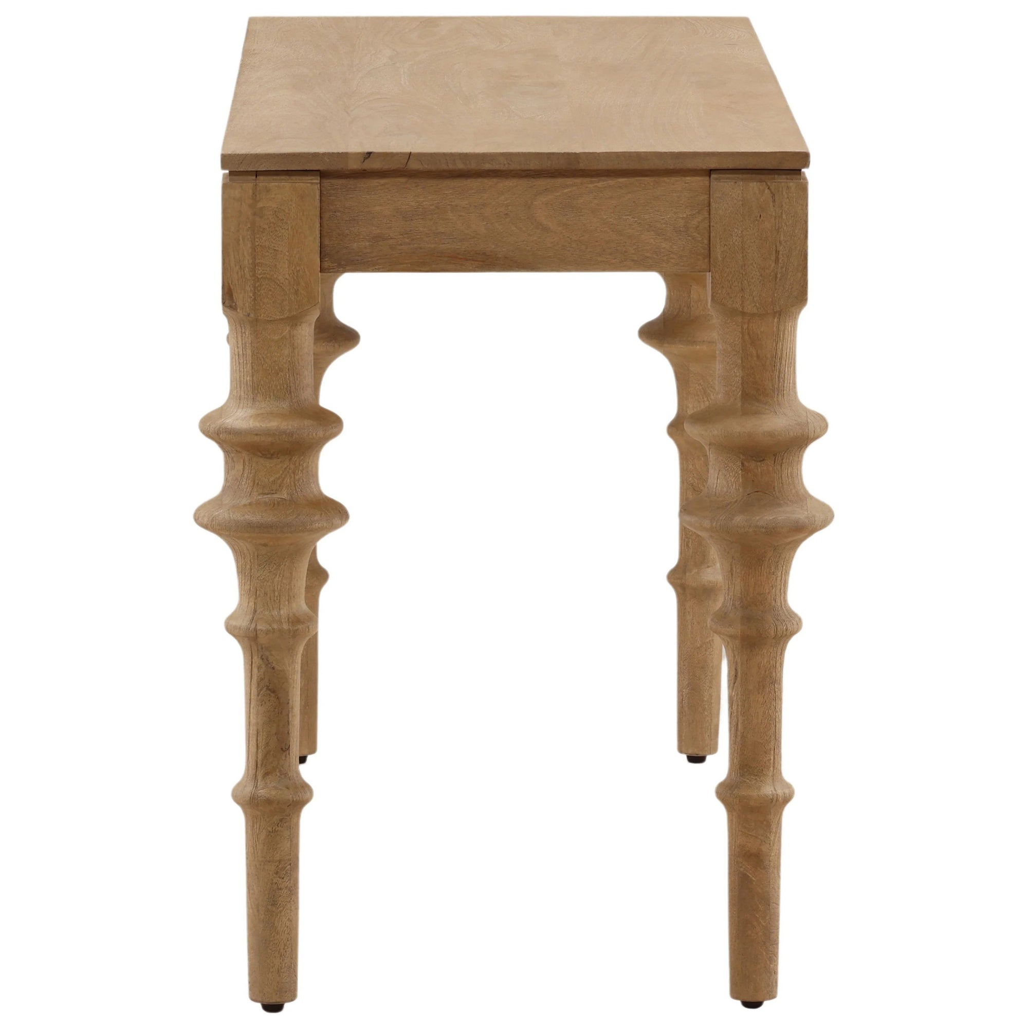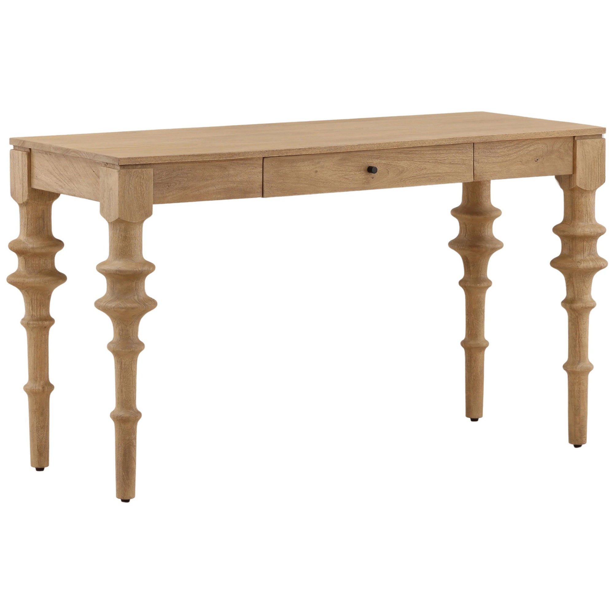The Savin Desk is a distinctive piece that brings artistic craftsmanship and functionality to a home office or creative space. The wide surface offers ample working area, while its most defining feature is the dramatically turned, decorative legs that provide strong visual interest. This refined desk combines practicality with an elegant, statement-making design.