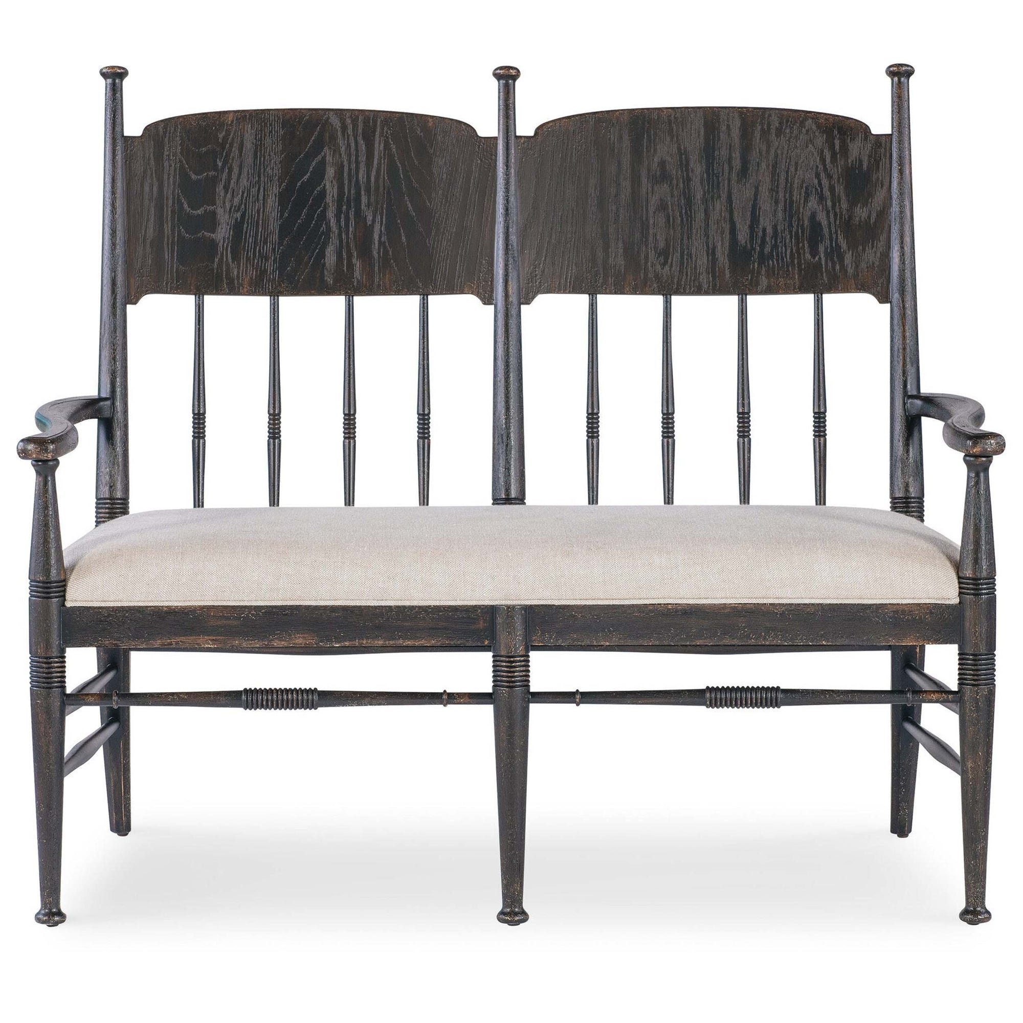 The Americana Dining Bench celebrates the natural beauty of a simpler time with its inviting, nostalgic design. It features a spindle-style back with carved accents on the spindles and frame, adding character and charm. The seat is tailored with welt trim for a clean, finished look. With the appearance of a cherished heirloom passed down through generations, this piece strikes a timeless balance between history and nature, making it a welcoming addition to any space.