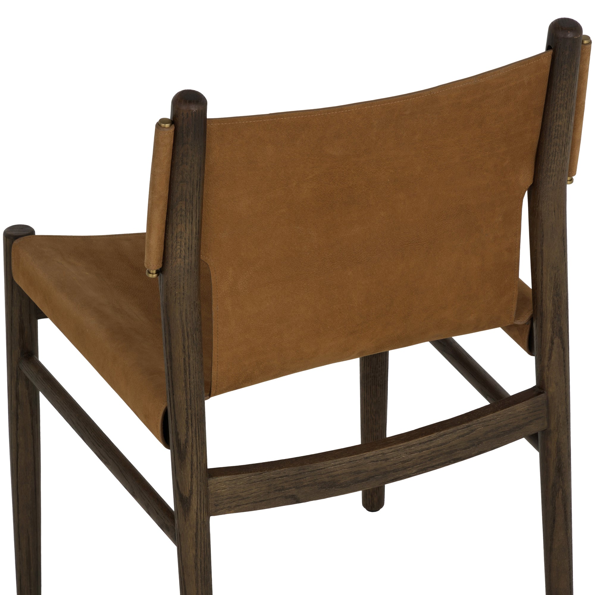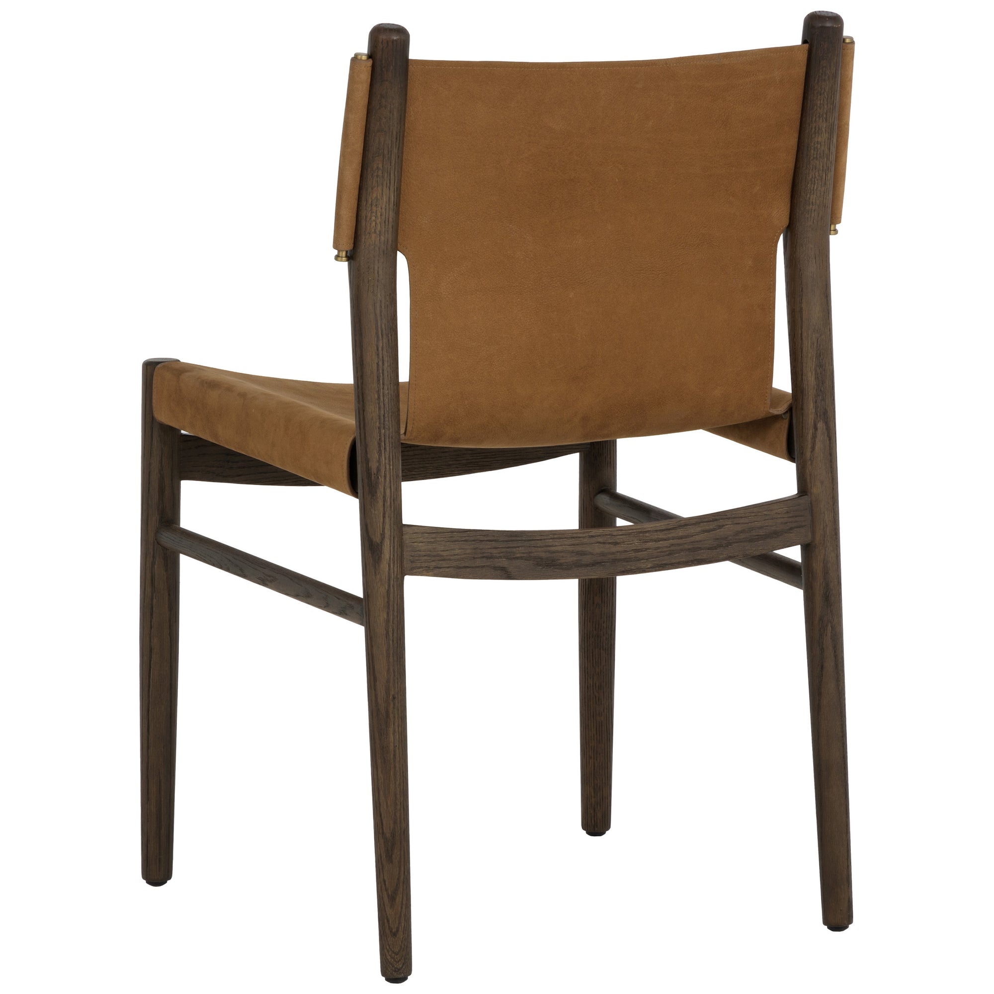 The Argus Leather Dining Chair combines a solid oak frame with supple nubuck leather for a refined mid-century modern look. Its sling-style silhouette and stitched side panels provide an elegant, airy profile while offering comfortable seating. Water-resistant leather and foam support make the Argus Dining Chair durable and stylish, perfect for contemporary dining spaces.