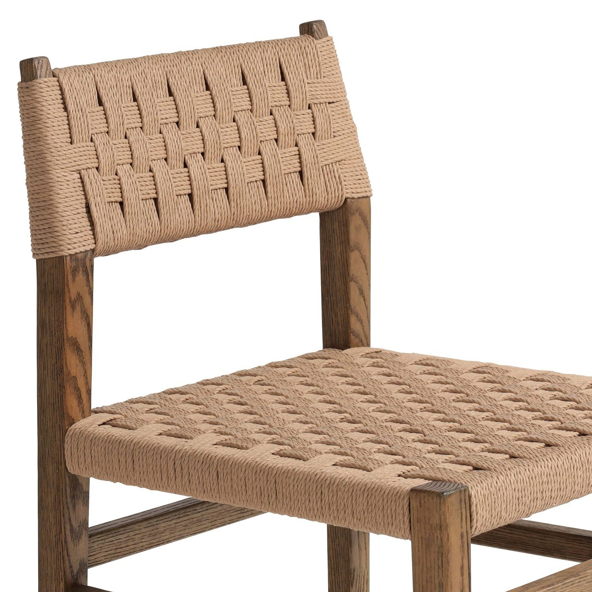 The Hamlin Dining Chair combines modern elegance with natural textures. Crafted with a tapered solid oak frame, it exudes sophistication and durability. Its updated woven back and seat add texture to the clean lines, creating a harmonious blend of contemporary and traditional styles. Perfect for dining rooms or kitchen tables, this chair offers both comfort and aesthetic appeal. Whether for everyday meals or special occasions, the Hamlin Dining Chair enhances any dining space with its timeless design and quality craftsmanship.