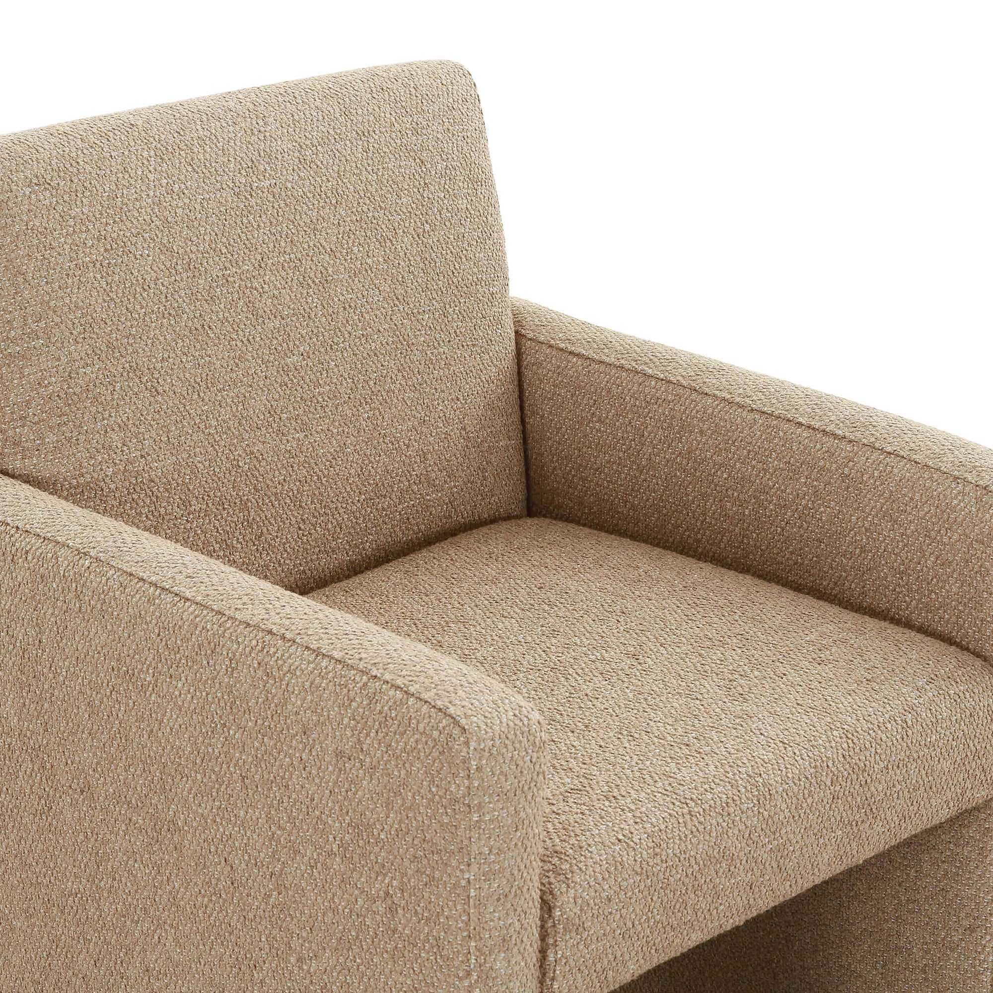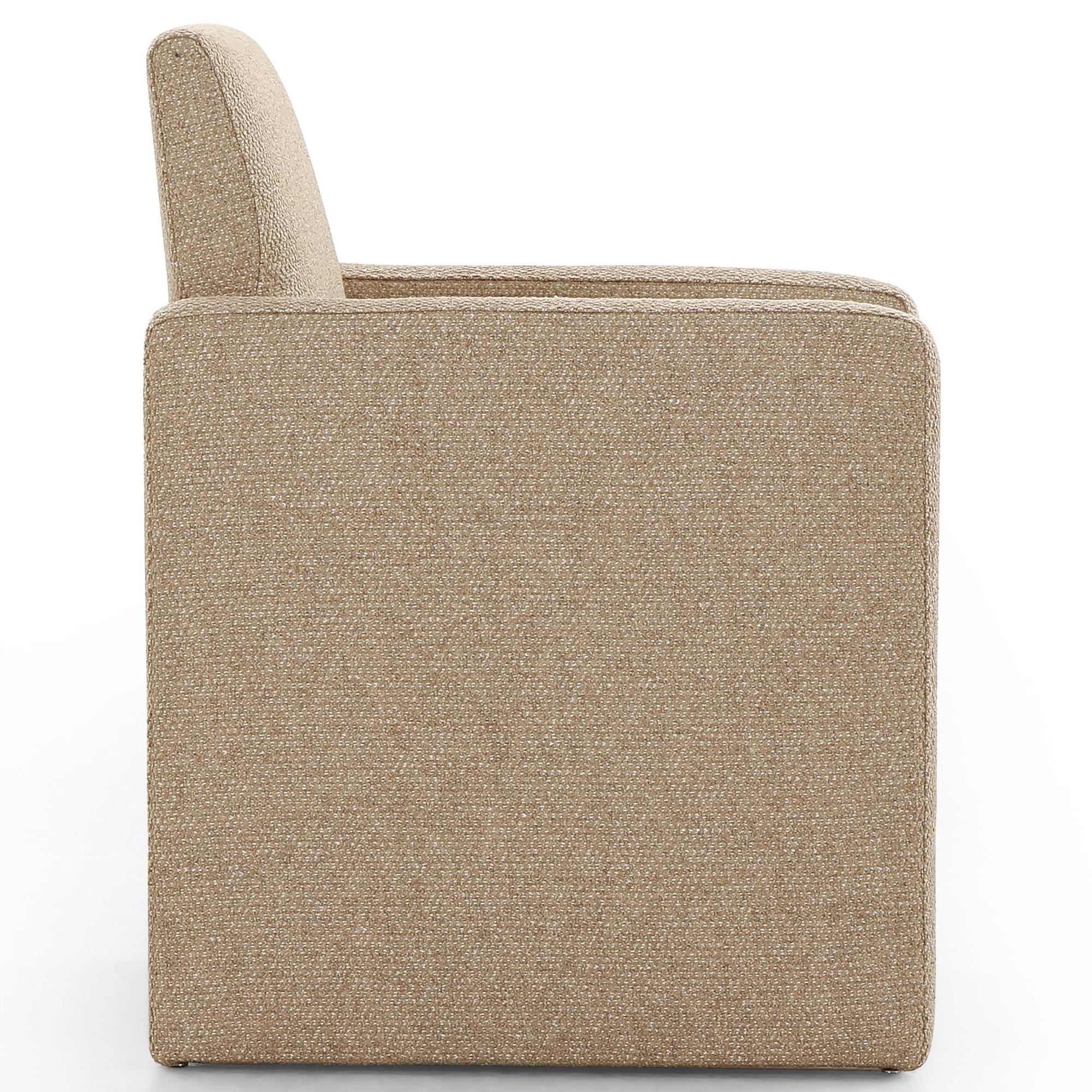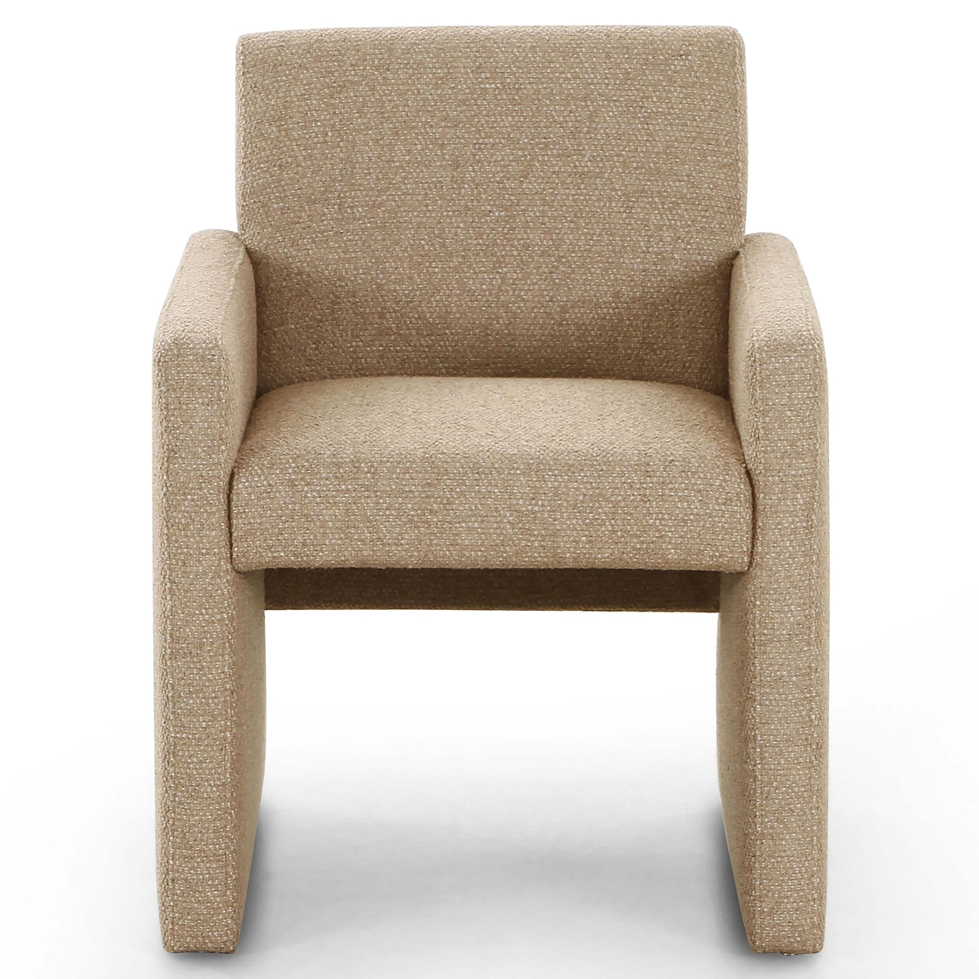 High style meets everyday sensibility. Upholstered in sand-colored fabric, soft, voluminous shaping and grand scale dole a dramatic look to this sophisticated seating style.