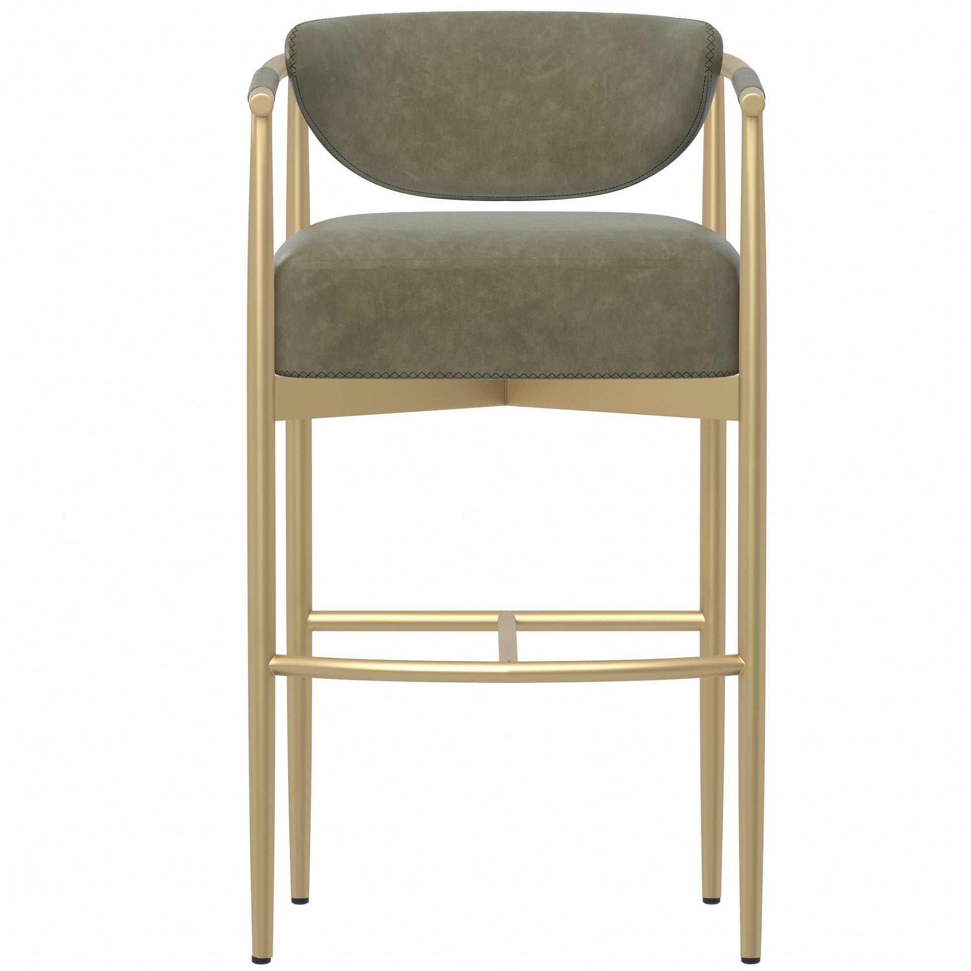The Heloise Barstool makes a sophisticated statement at kitchen counters and bar-height tables. The contoured seat and back are upholstered for a tailored look, highlighted by decorative rope detailing and visible stitching that accentuates the smooth silhouette. A supportive seat profile and well-balanced proportions make this barstool as comfortable as it is visually striking, offering a polished seating option that complements both modern and transitional dining spaces.