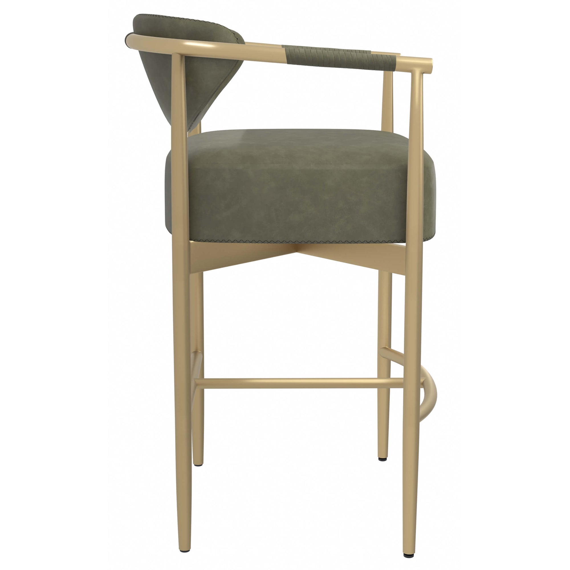 Every detail of the handsome Heloise Counter Stool is crafted with purpose and sophistication. Upholstered in rich Ivanhoe pine faux leather, its smooth seat and backrest feature visible stitching that highlights the stool’s refined curves. Rope detailing adds a touch of artisanal texture, while the powder-coated gold stainless steel frame provides both strength and a hint of glamour. Combining comfort with elevated design, the Heloise Counter Stool brings effortless elegance and modern allure to any dining or entertaining space.