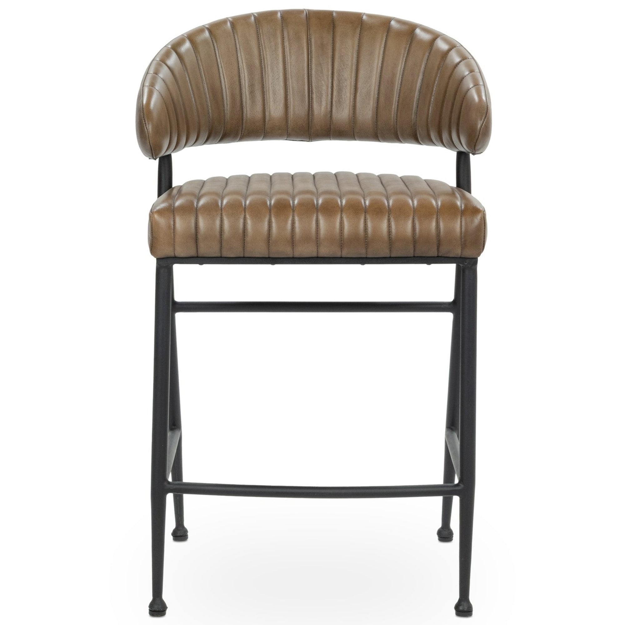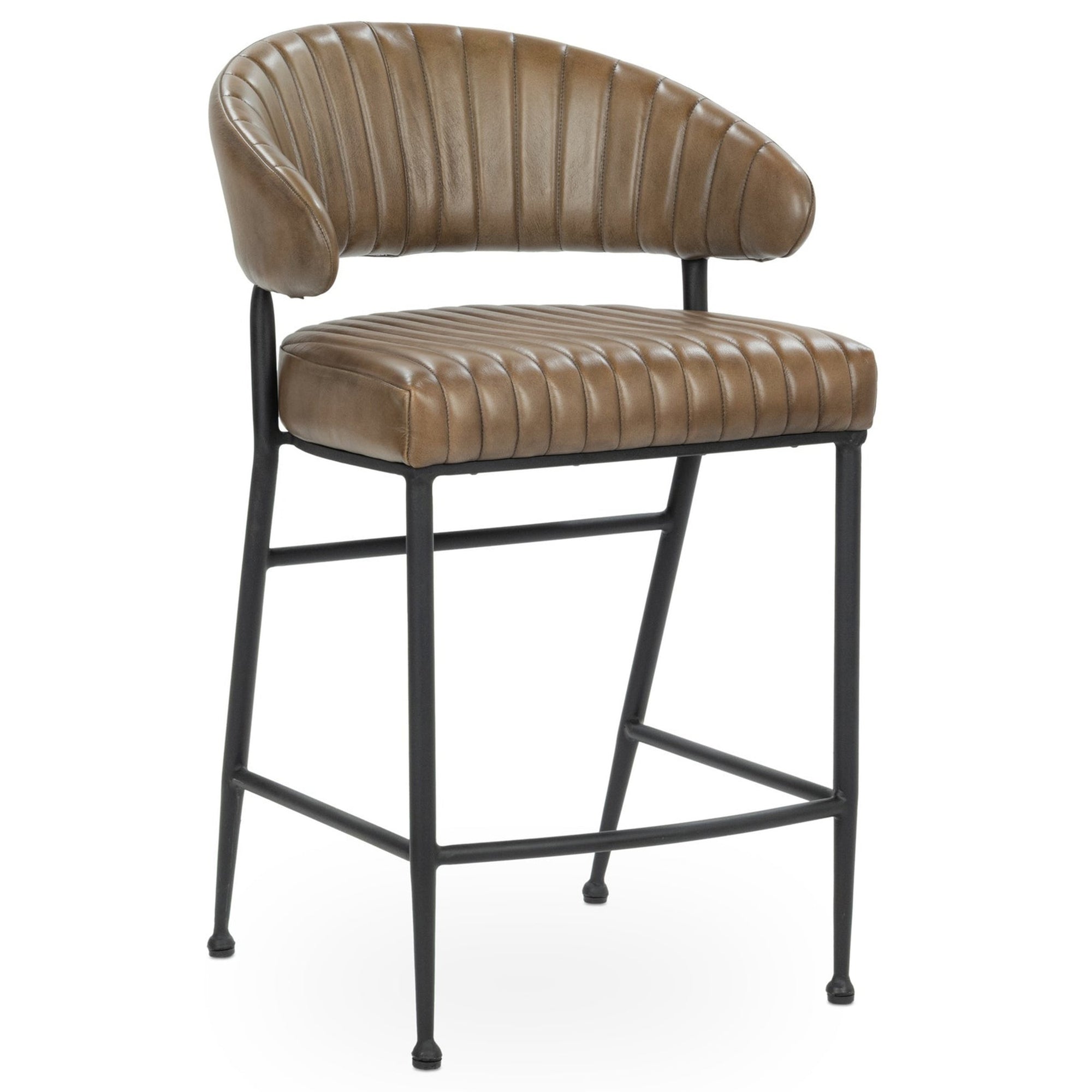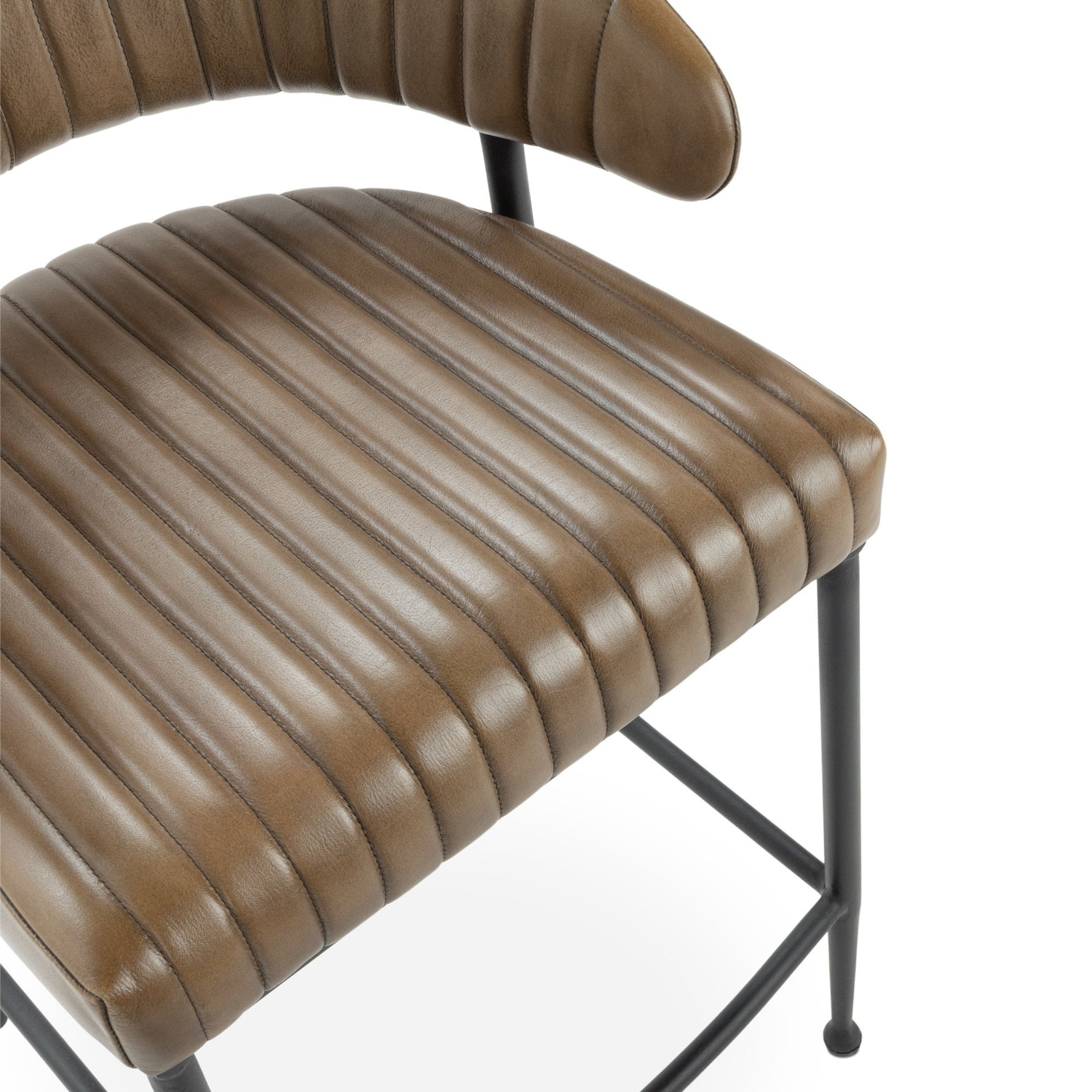 The Umbria Leather Bar & Counter Stool combines industrial strength with refined comfort. Upholstered in premium top grain leather with vertical channel tufting and a curved back, this counter stool offers stylish support and a sleek silhouette. The slender iron frame enhances durability while maintaining elegance, making it ideal for modern kitchens, bars, or loft-inspired interiors.