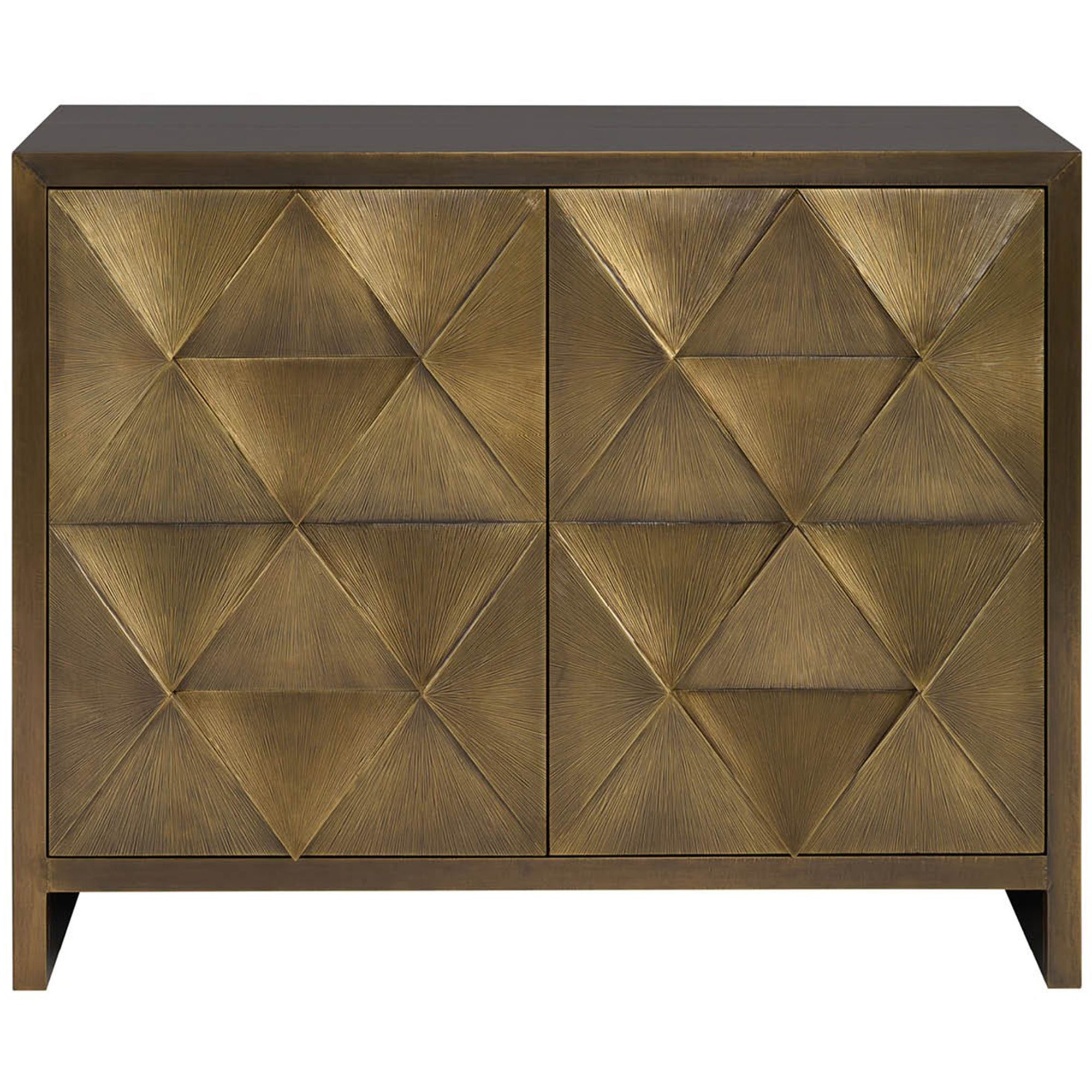 The Origami Chest adds a touch of architectural intrigue to any space. The Origami Chest features geometric, origami-inspired doors that create a visually captivating focal point. The ample interior provides practical storage for your hallway or entryway needs.