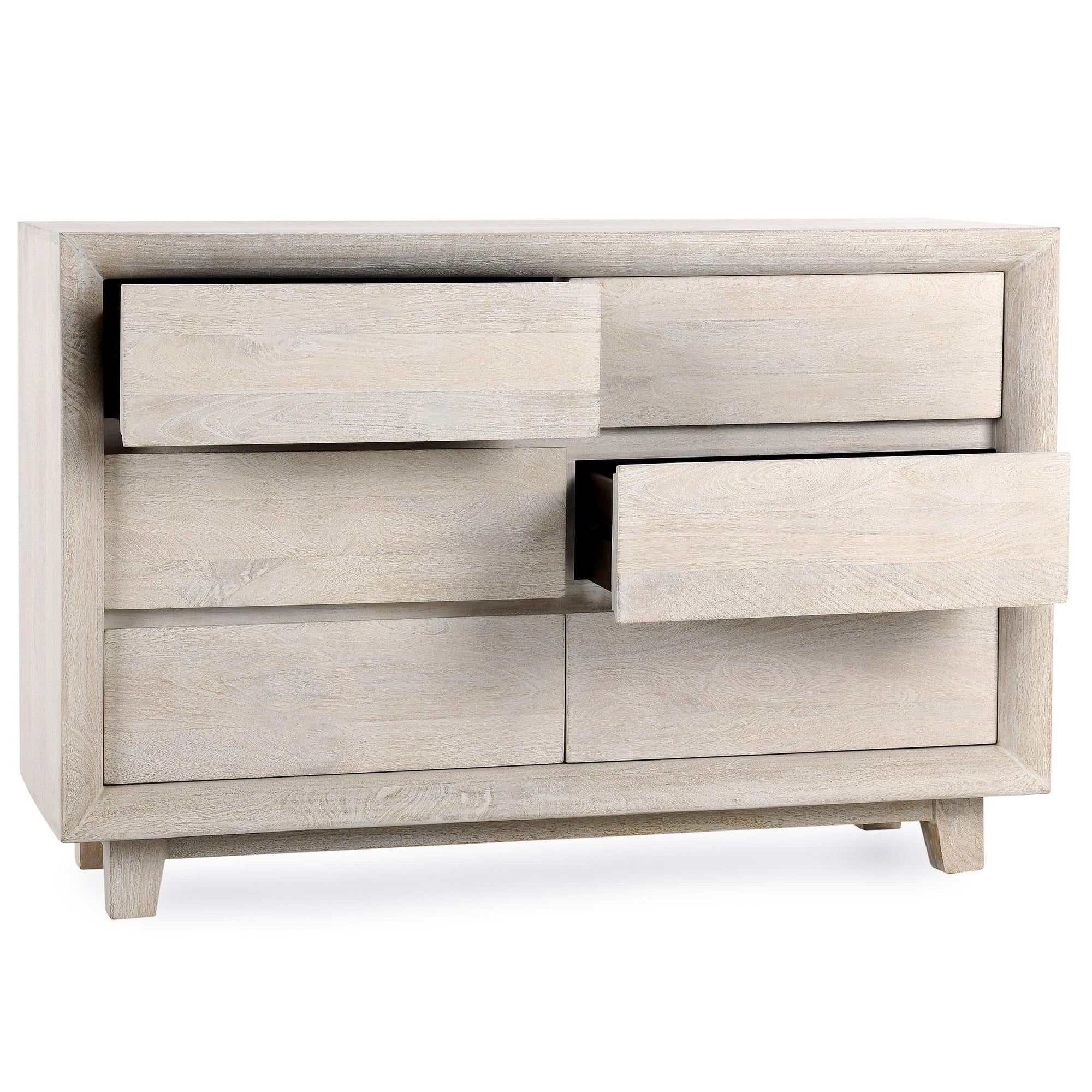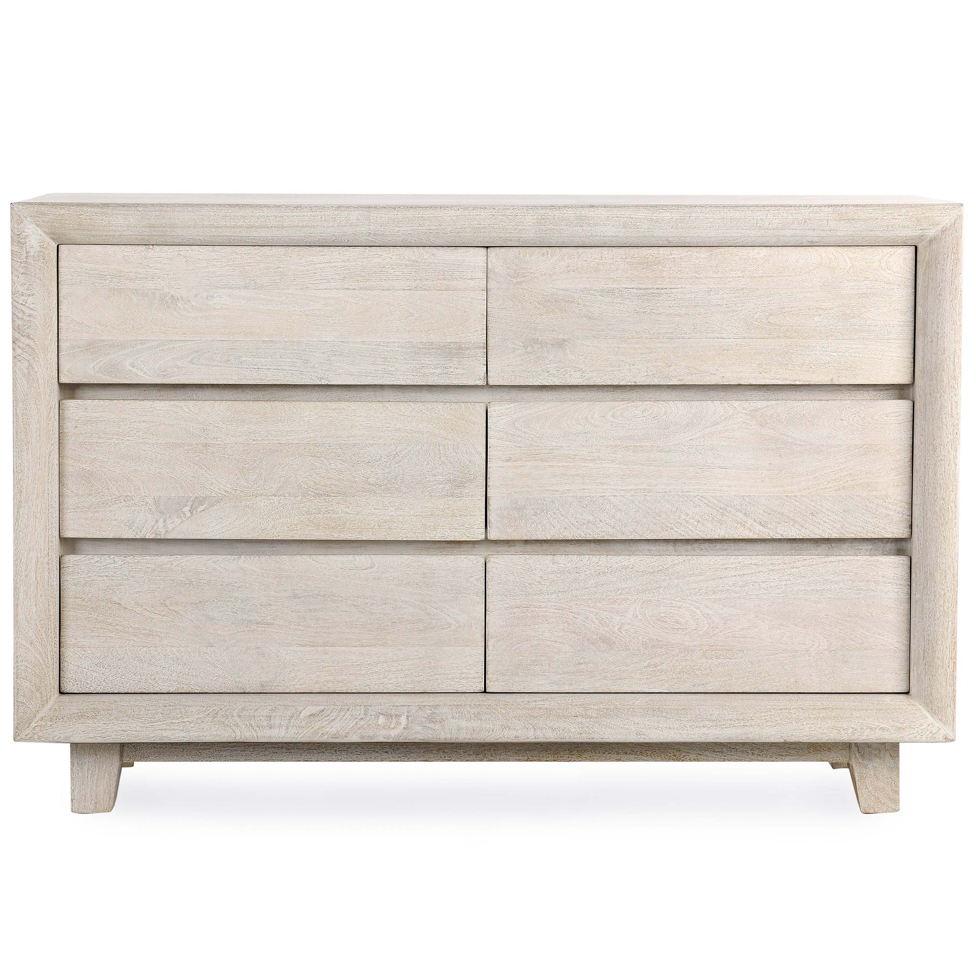 The Reece 6 Drawer Dresser combines minimalist design with practical storage. Crafted from mango wood, it offers clean lines and a versatile silhouette that suits a variety of bedroom styles. With six spacious drawers, it keeps essentials neatly organized while its Seashell White finish adds a light, airy touch to your space.