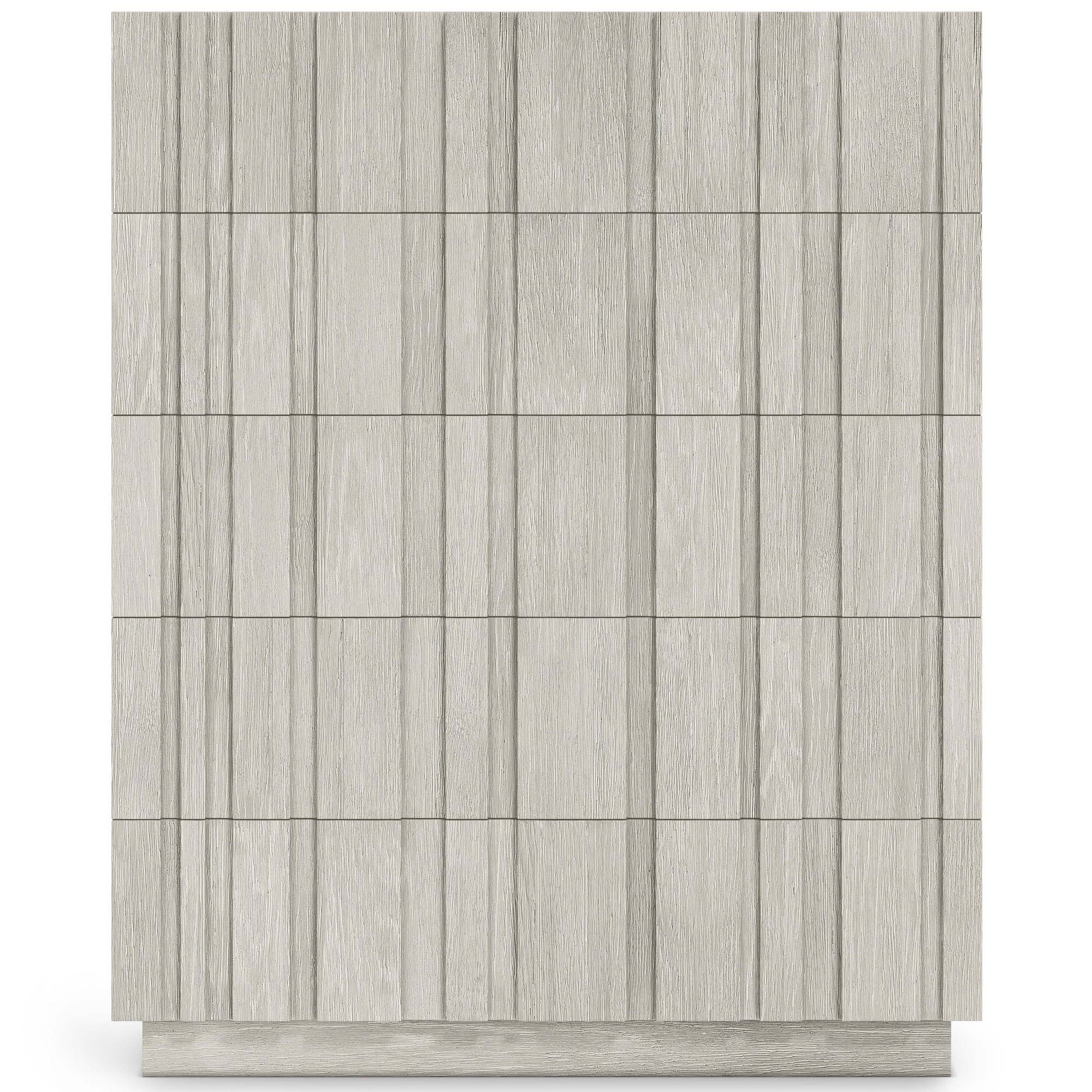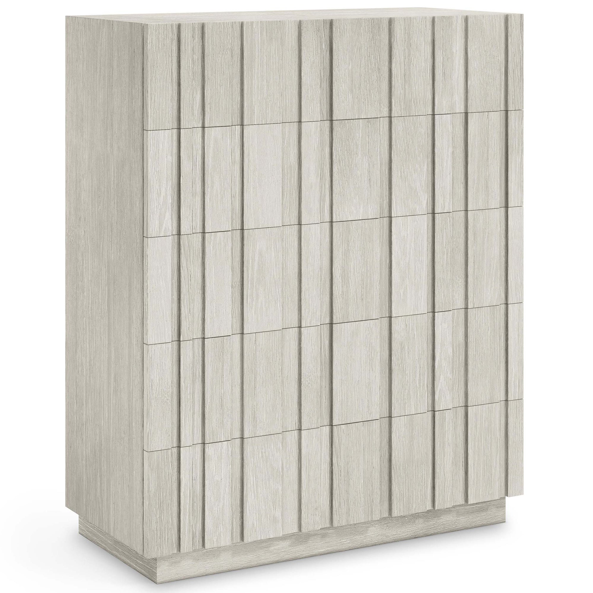The Tempo 5 Drawer Chest makes a modern architectural statement with its rhythmic vertical paneling and clean lines. Crafted from wirebrushed oak in a rich finish, it offers both texture and depth. Five push-to-open drawers are seamlessly integrated into the design, resting atop a subtle plinth base that grounds the piece in relaxed sophistication.