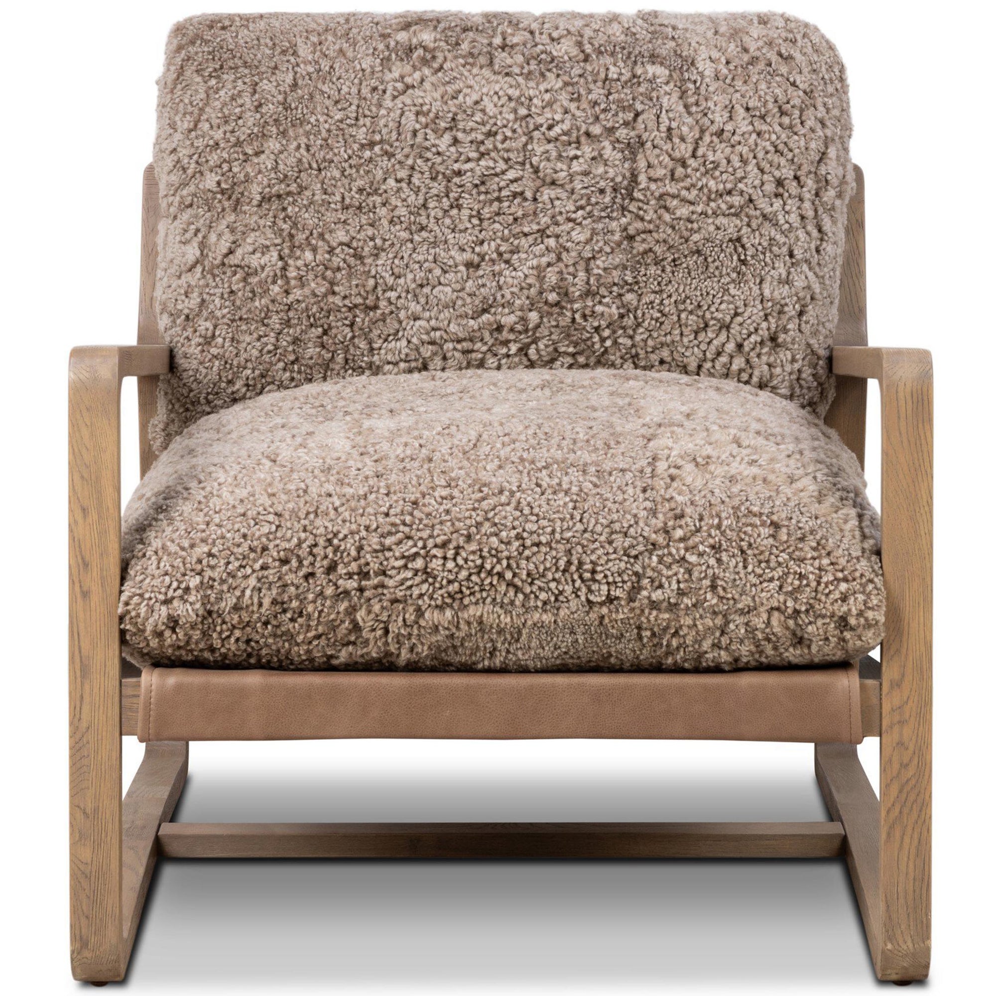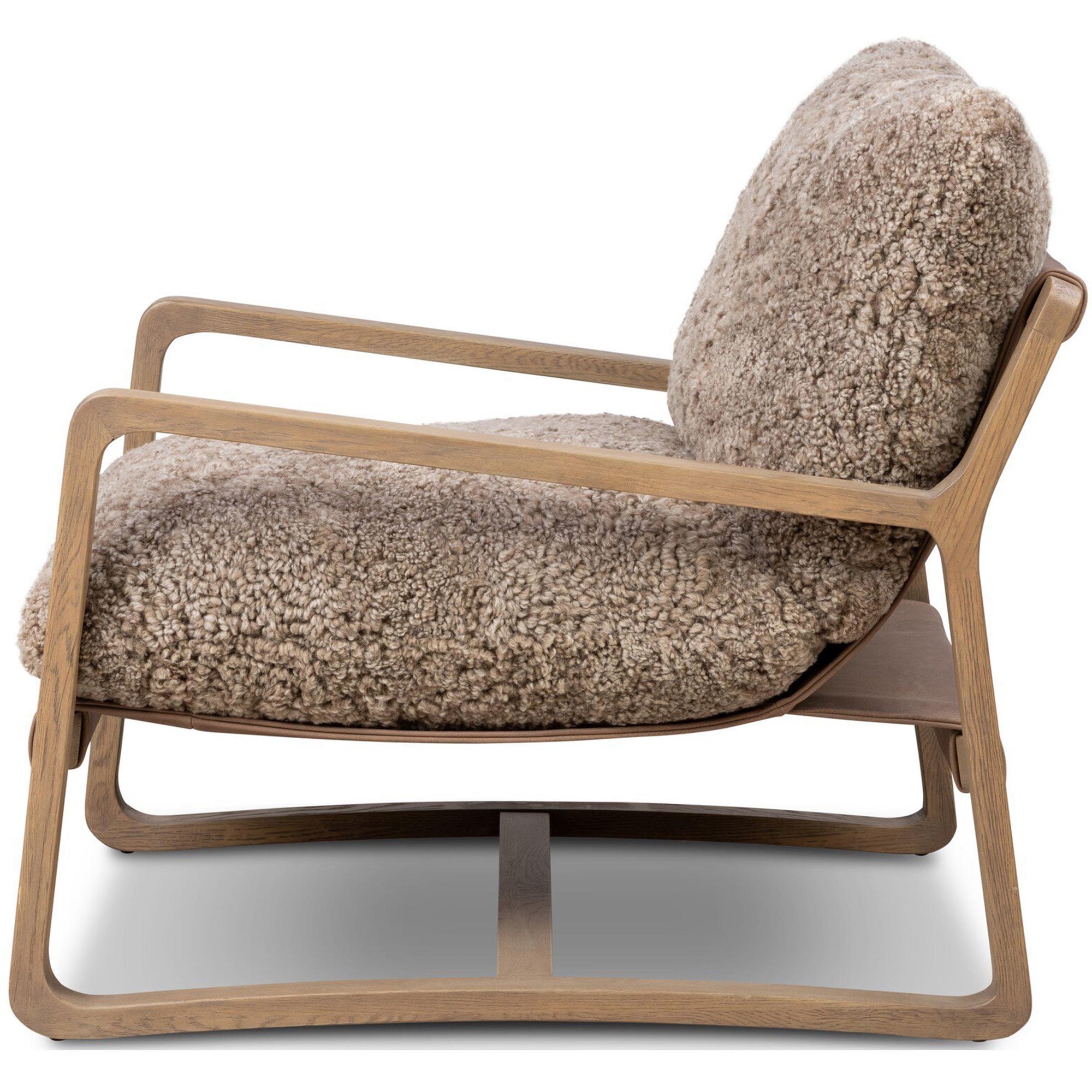 The Ace Chair is the perfect place to curl up with a good book. A hand-shaped parawood frame supports low, deep seating upholstered in soft shearling for a cozy and elevated look. The solid oak frame pairs beautifully with plush cushions filled with feather and fiber, creating a refined yet relaxed feel. Ideal for a reading nook or living room lounge, this piece brings natural warmth and timeless comfort to any space.