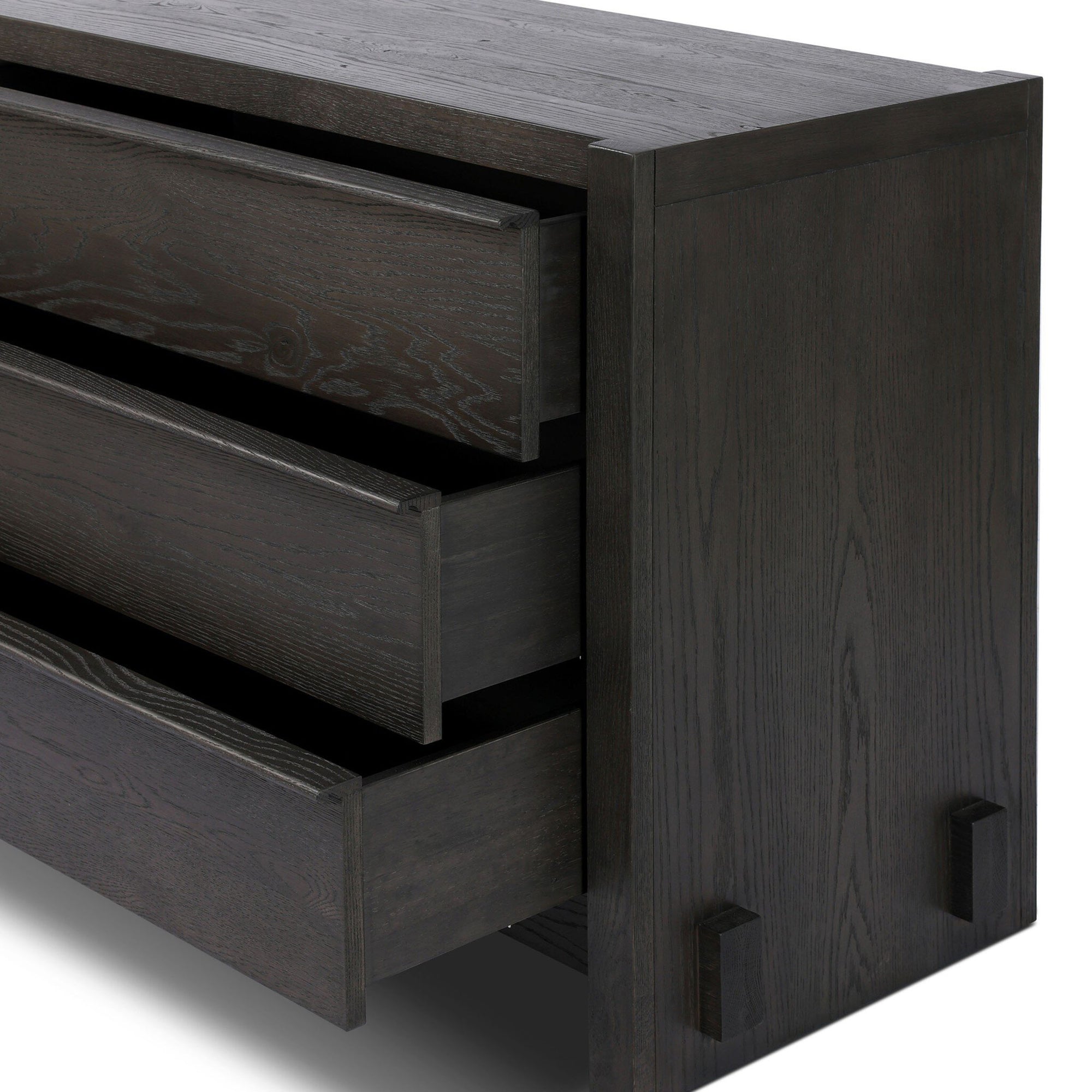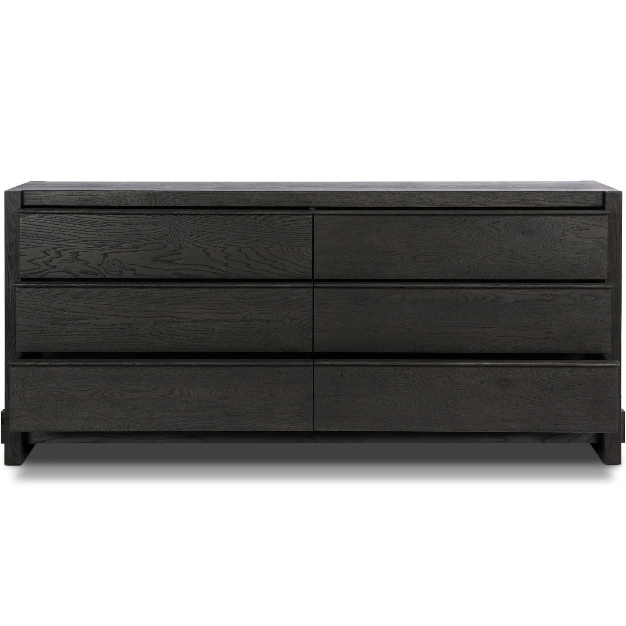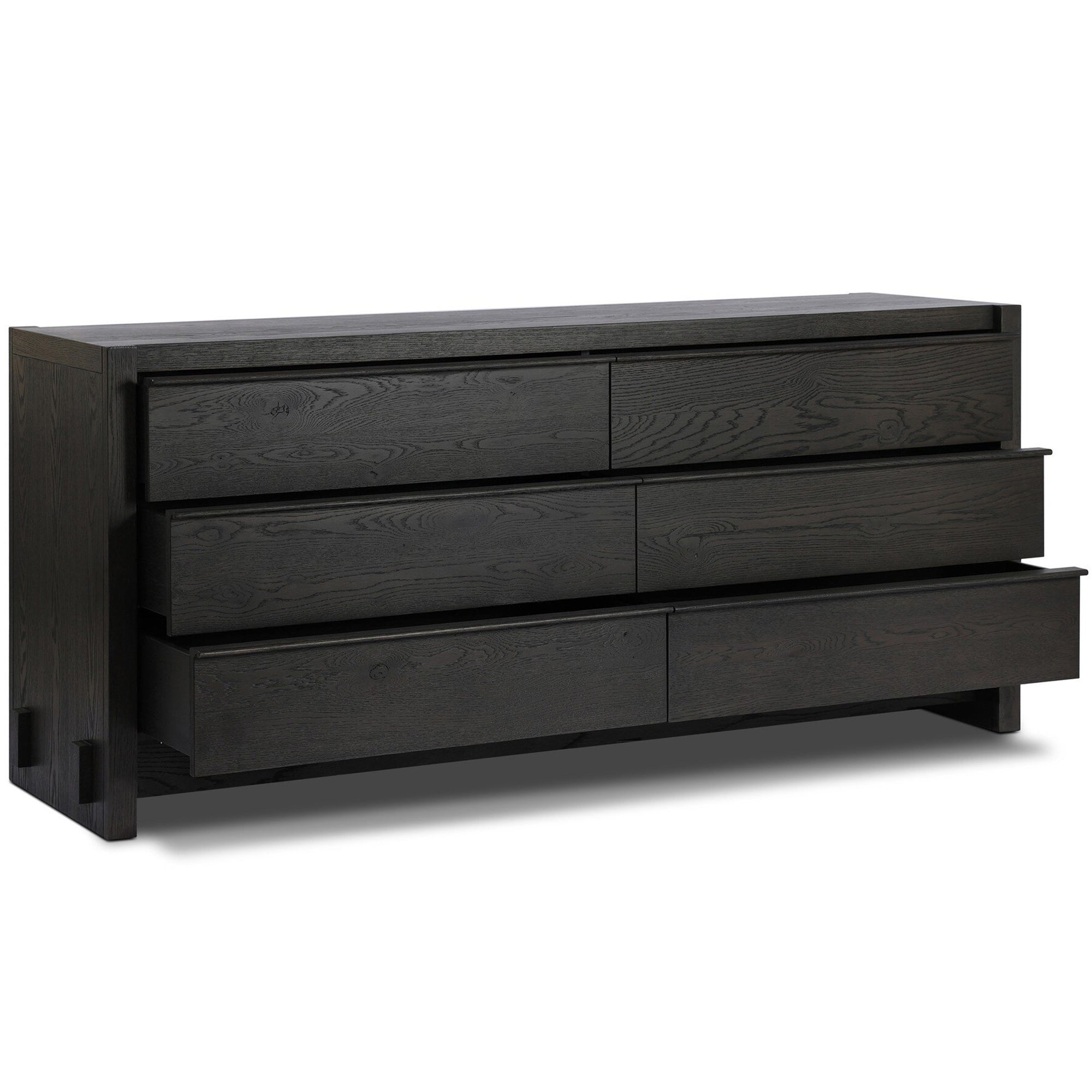 The Aramis 6 Drawer Dresser offers wide, functional storage with six soft-close drawers. Constructed from resawn oak veneer with precise joinery, the dresser combines durability with a sleek, modern silhouette. Undermount metal drawer glides and a sturdy frame ensure smooth operation and long-lasting performance.