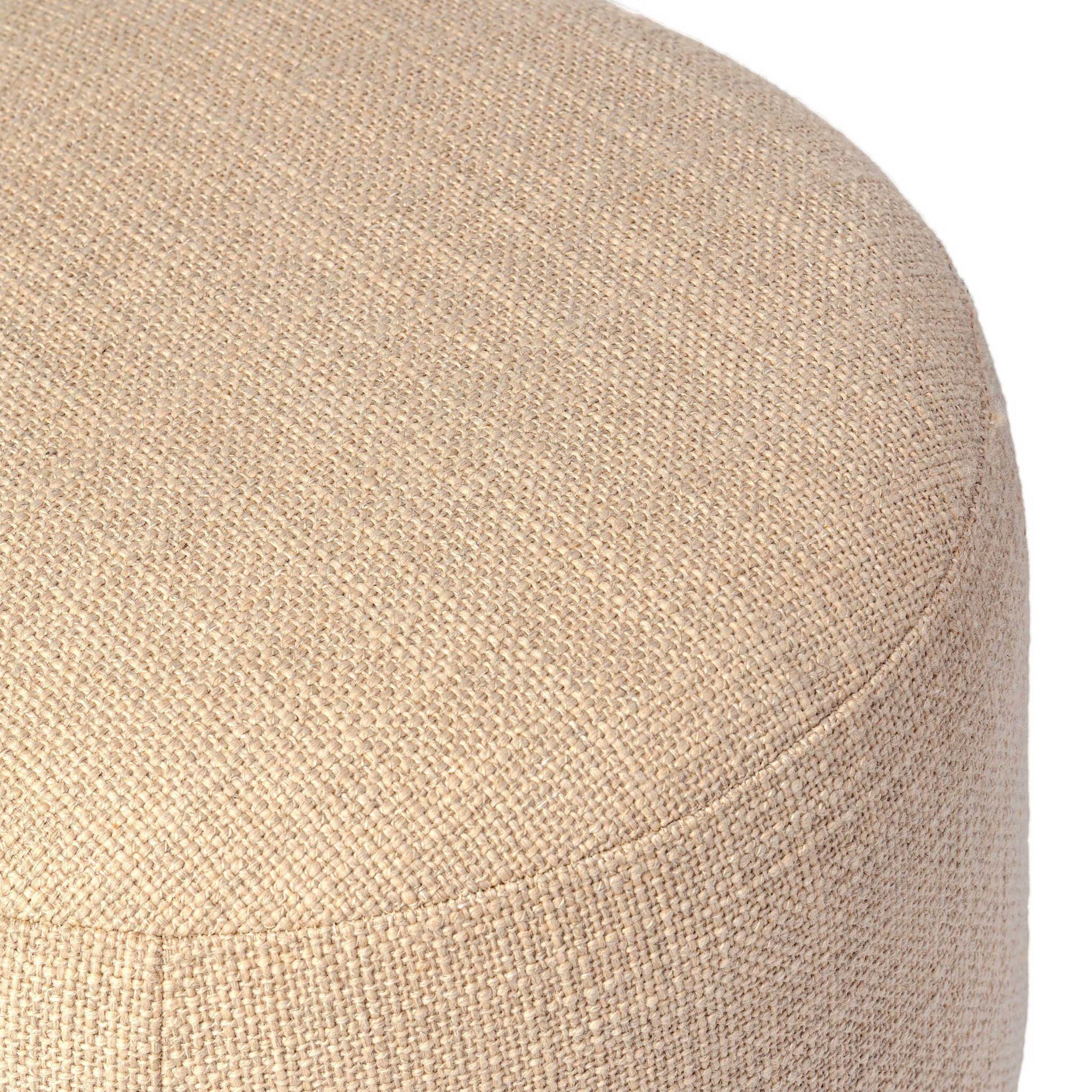The Bilbury Ottoman this welcoming ottoman serves as a perfect extra seat or footrest. It features a subtly tapered, round shape resting on bun feet. Crafted with soft foam cushioning and upholstered in a premium fabric blend, this piece provides both tailored comfort and a refined aesthetic to any living space.