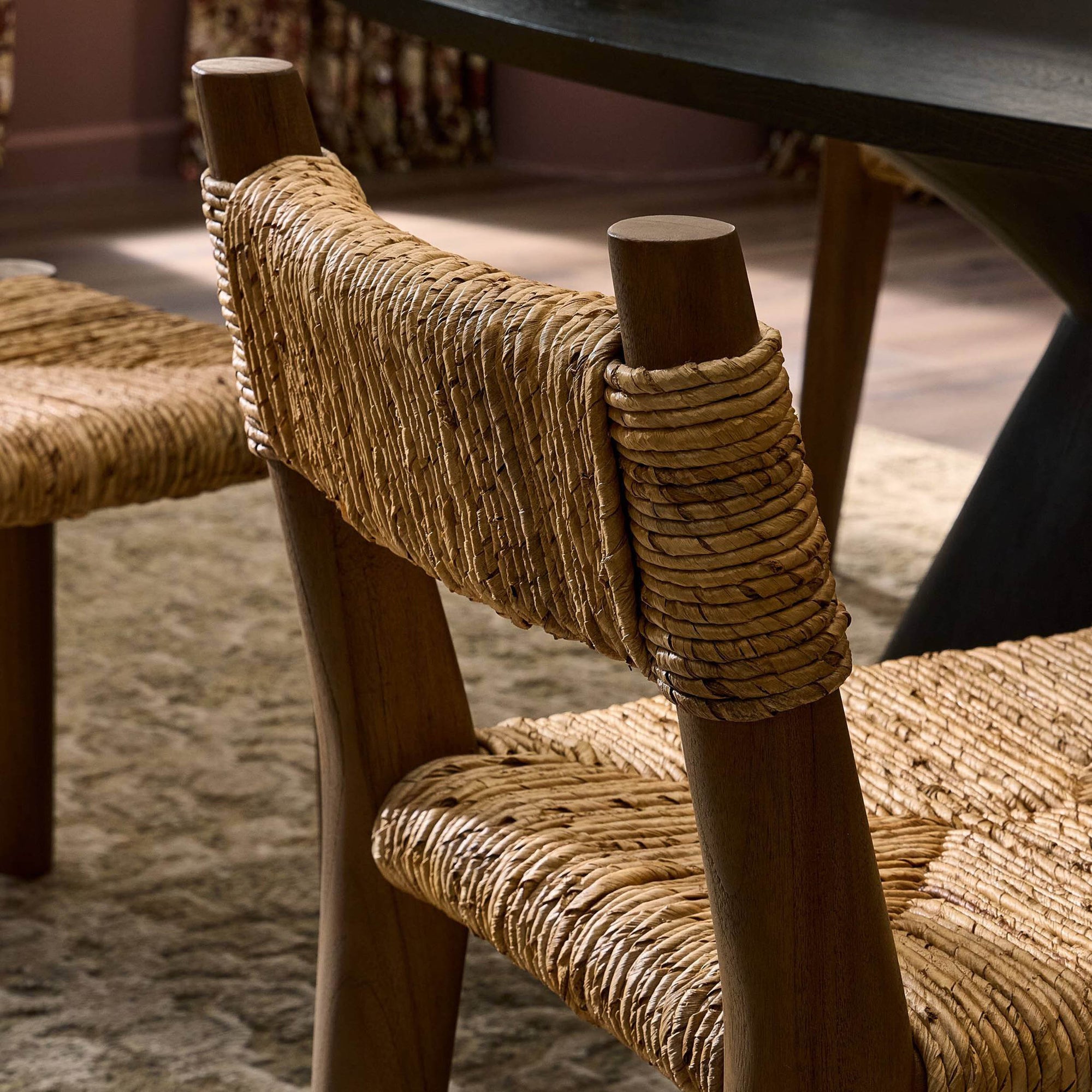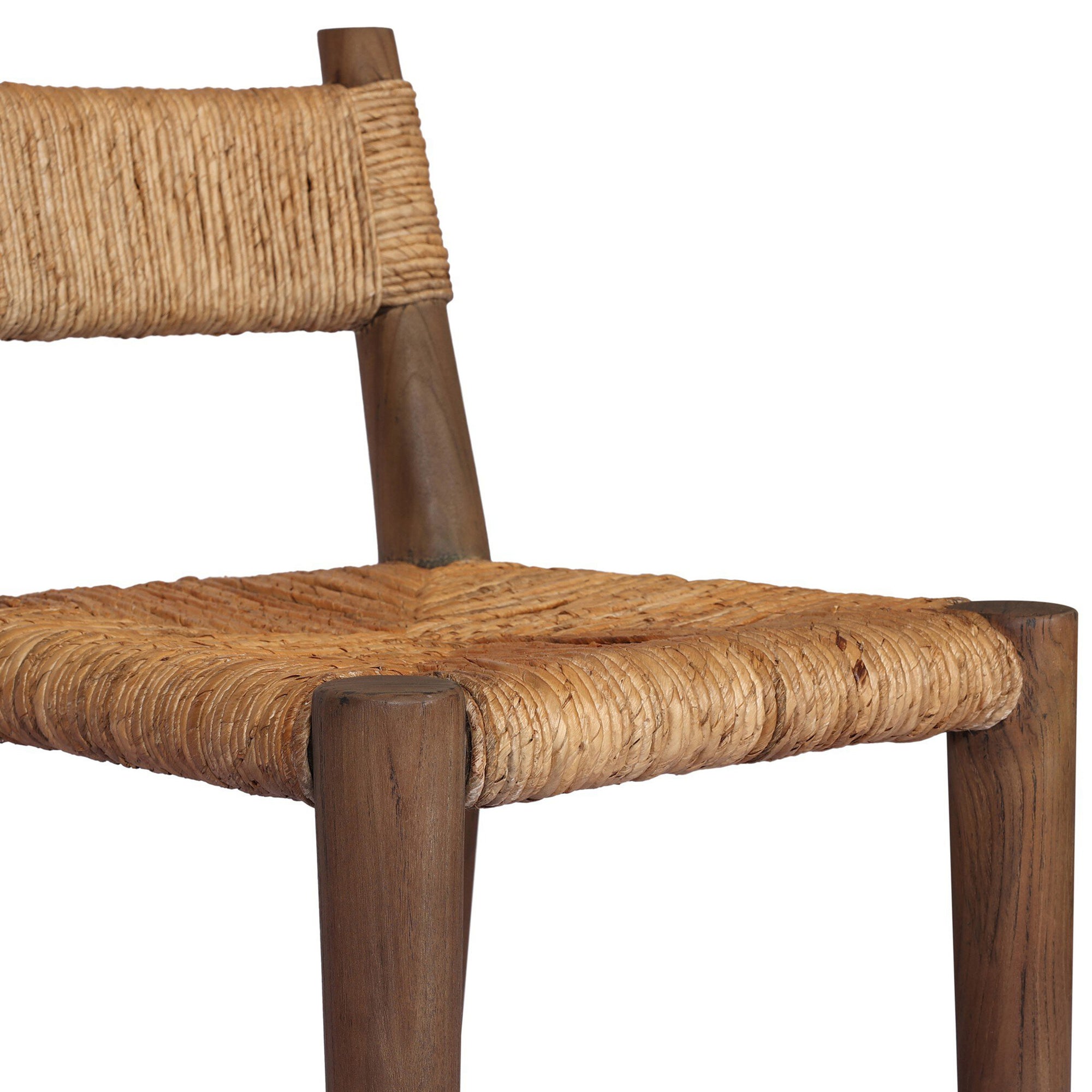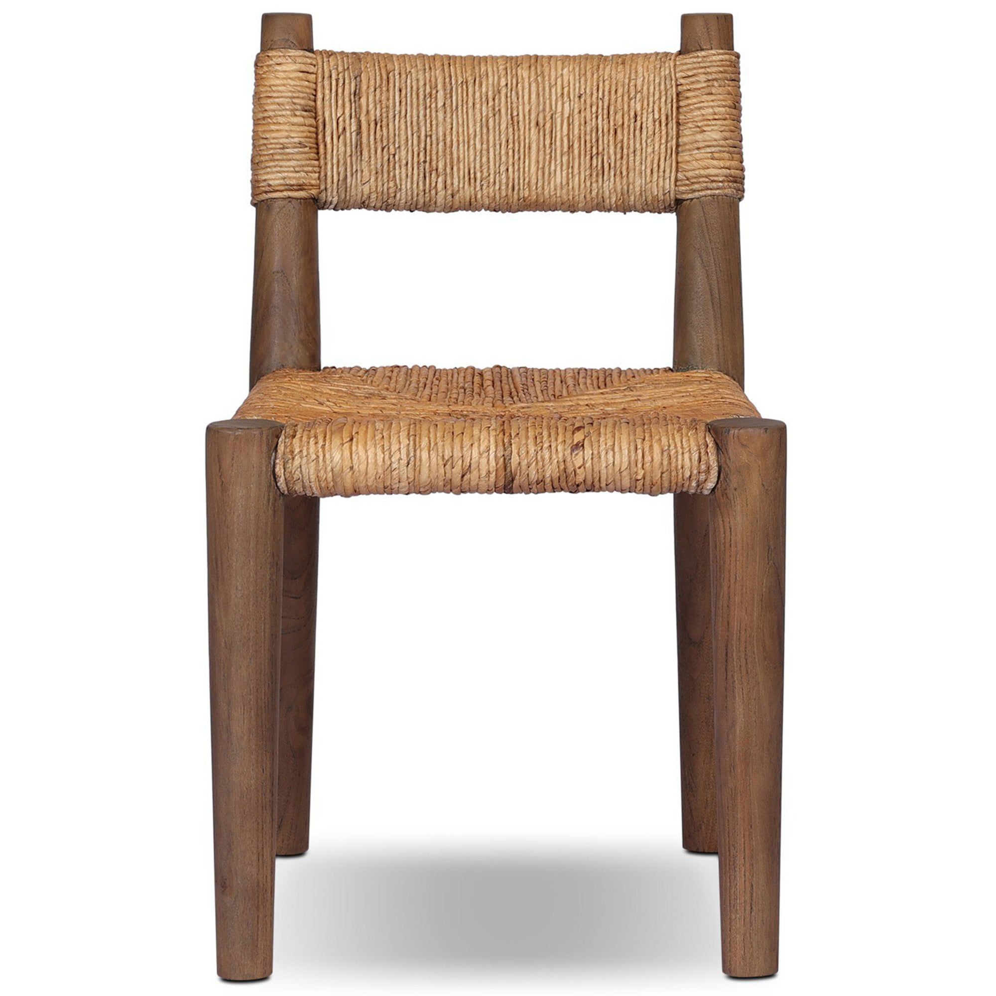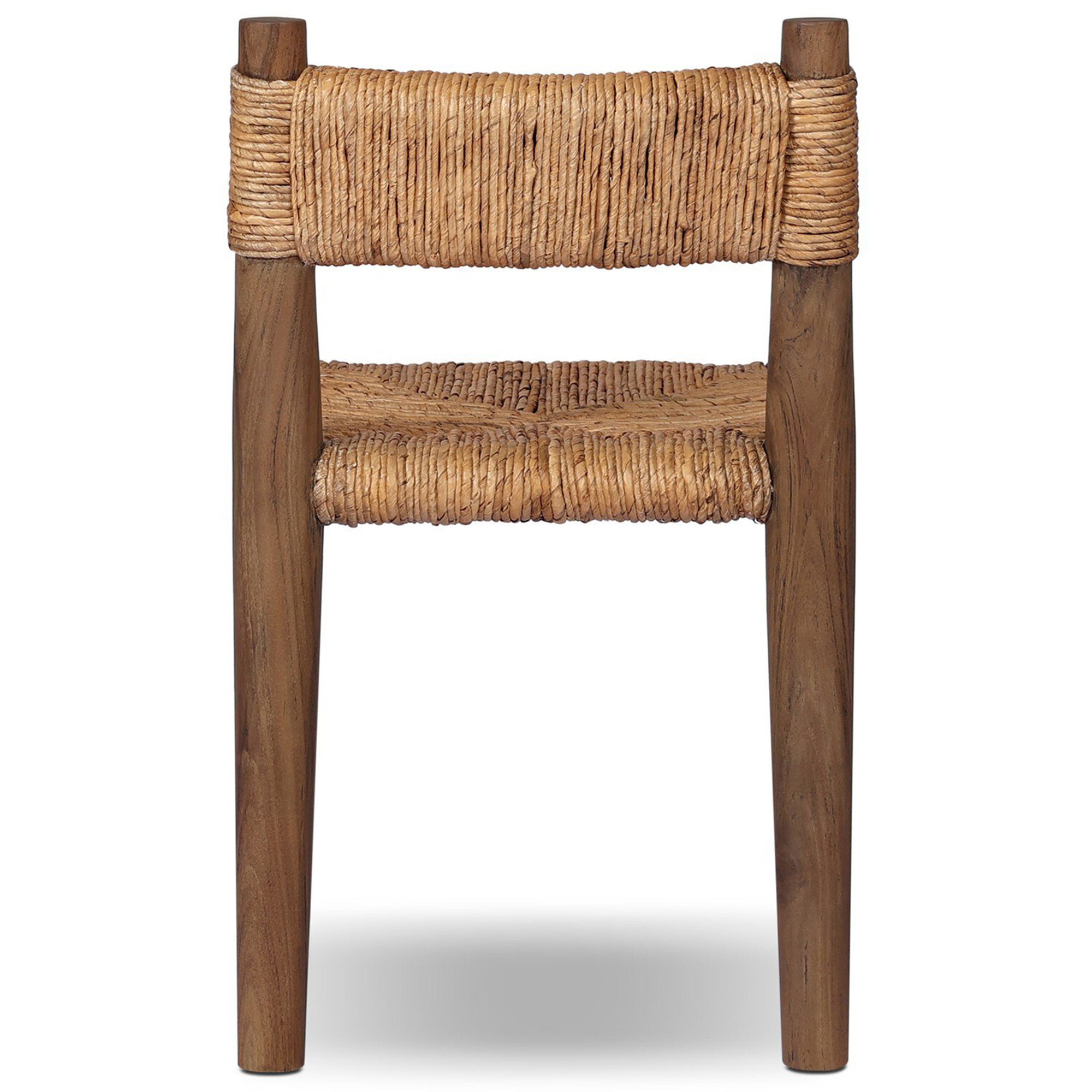 The Bovard Dining Chair brings a rich sense of texture and timeless appeal to any dining space. Crafted from solid teak and intricately wrapped in durable natural abaca, this chair showcases artisanal craftsmanship with a sculptural silhouette. Its thick weave and organic feel create an elevated, grounded look that complements a variety of dining settings.