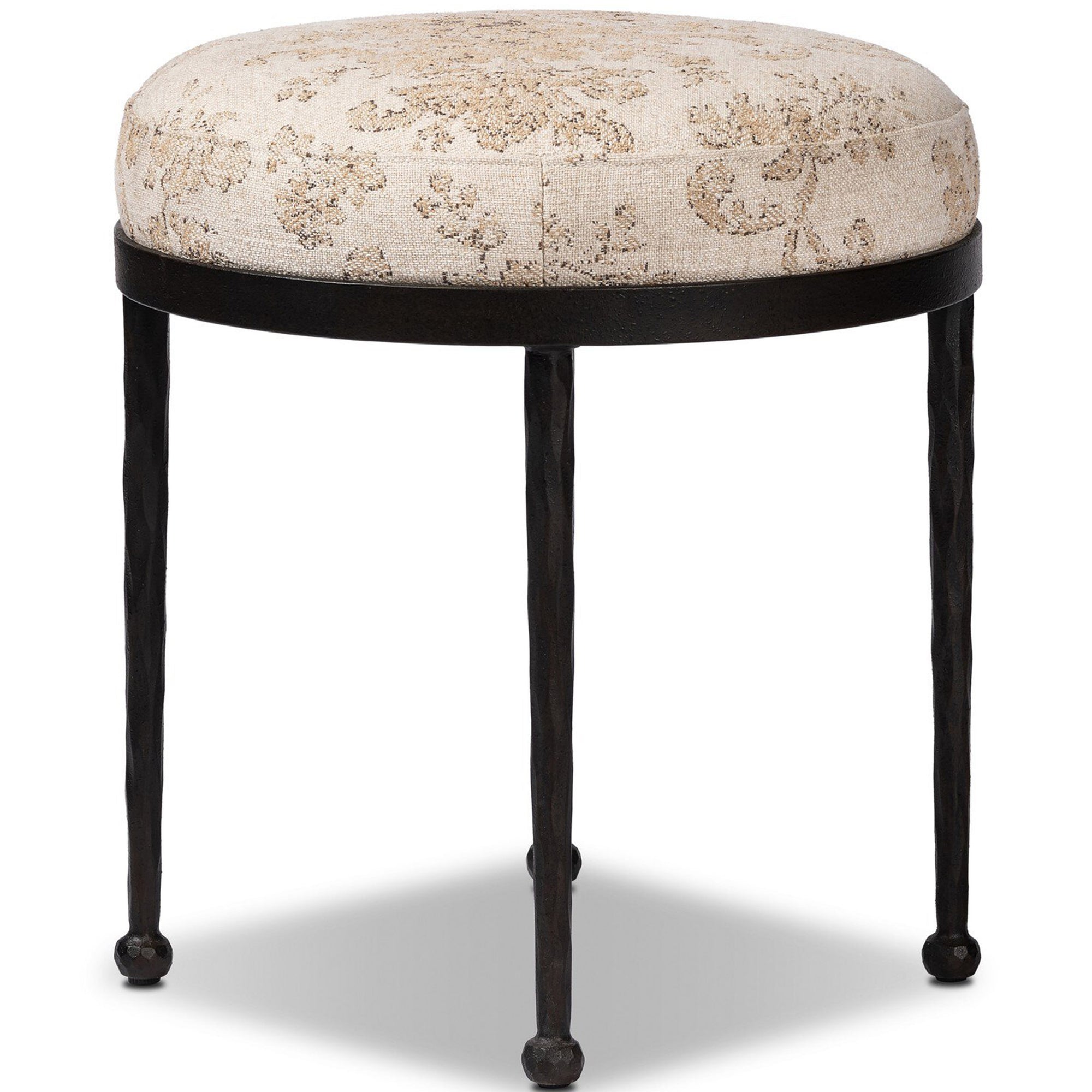 The Corinne Accent Stool is a versatile and stylish piece, perfect for extra seating or as a unique side table. Its Round cushion, upholstered in Fallingbrook Natural fabric, contrasts beautifully with the industrial appeal of its sturdy Iron base. Built with a solid Wooden Platform and a Hammered/Textured Bronze finish, this stool blends comfort with a refined, mixed-material aesthetic.