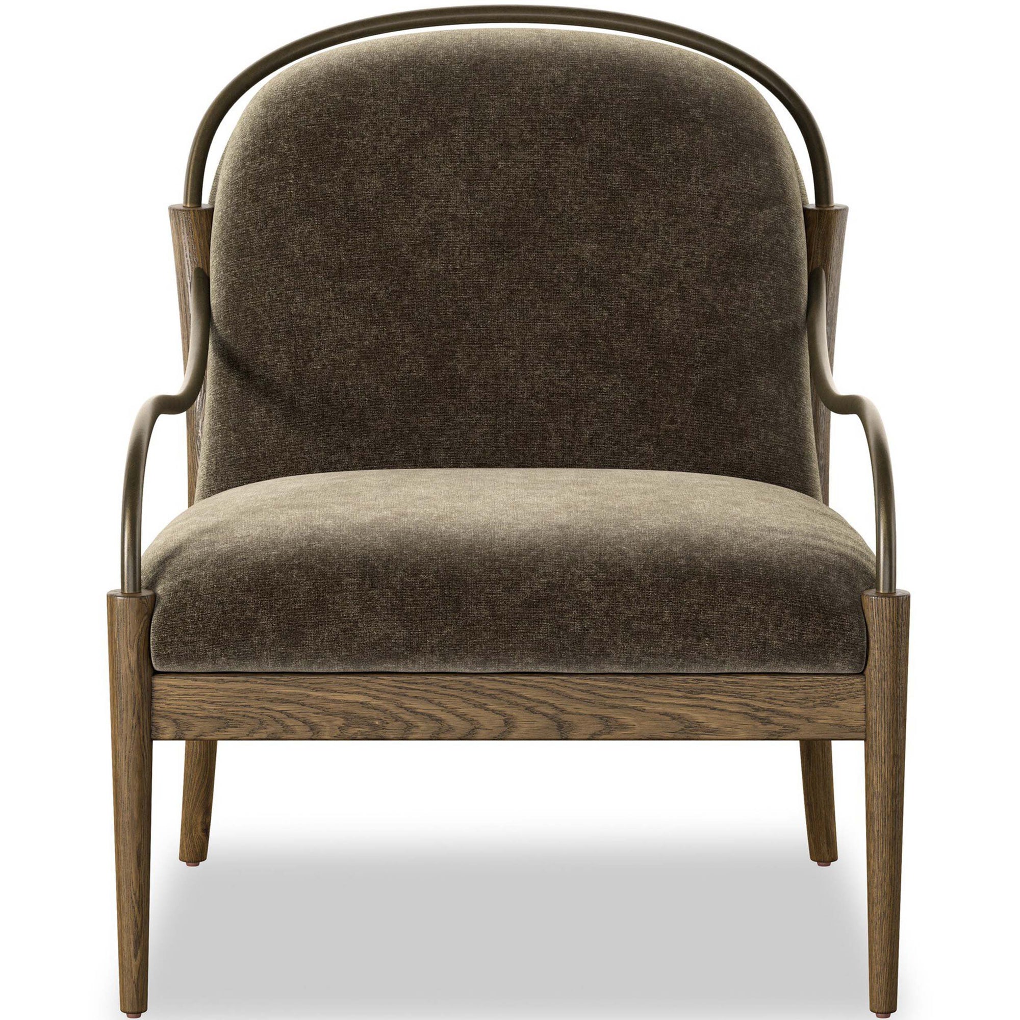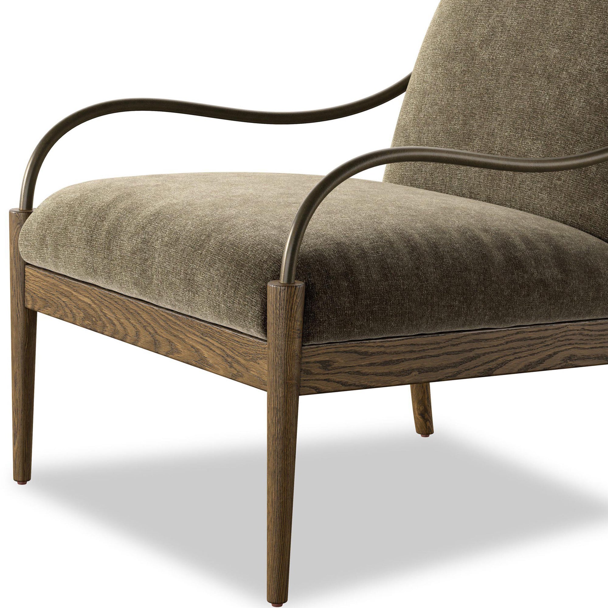 The Demi Chair fluidly combines ash wood and burnished brass to frame a comfortable S-spring seat. Finished in a heavy boucle-like upholstery with a subtle linear pattern for added depth, creating a luxe, inviting feel. A design collaboration by Amber Lewis and Four Hands.