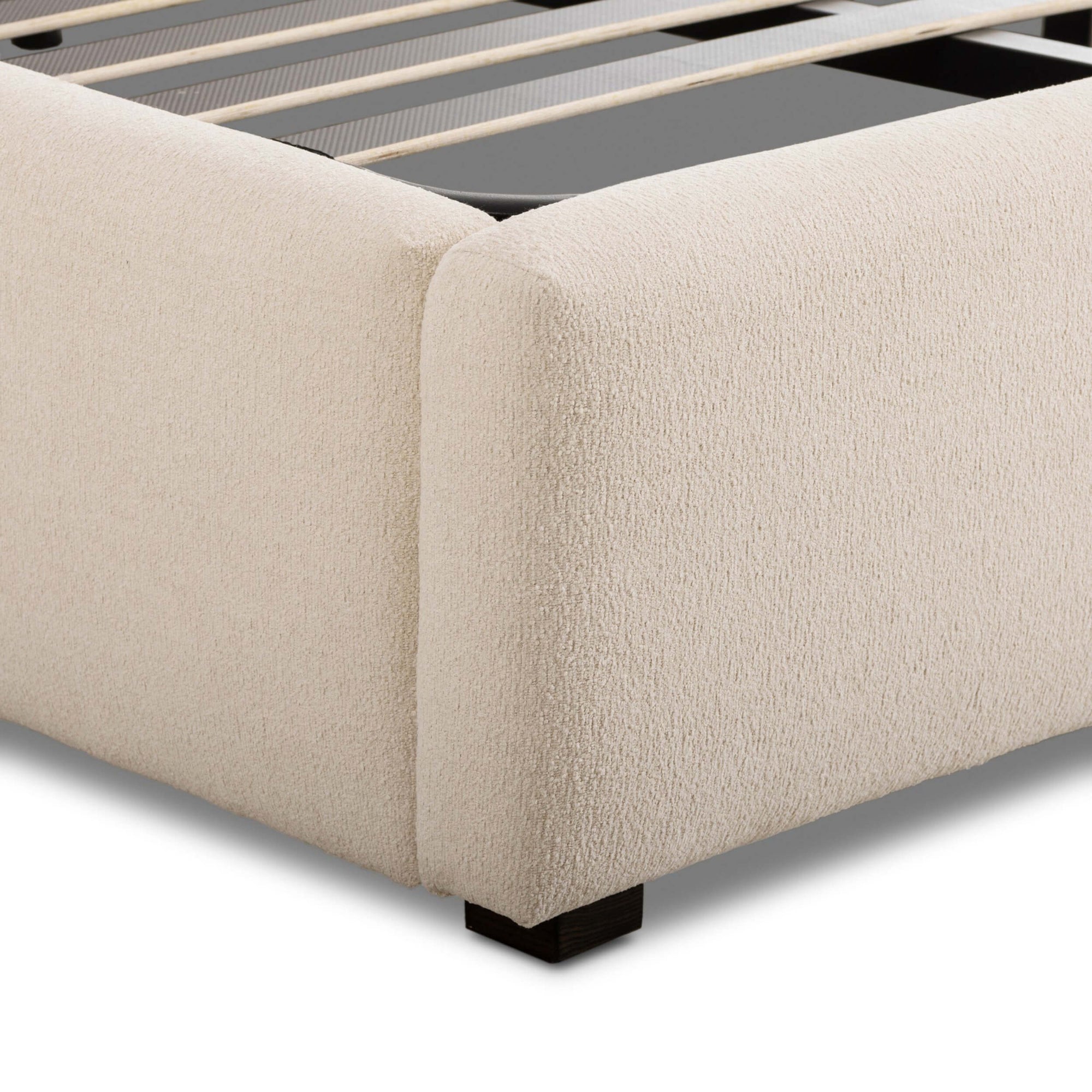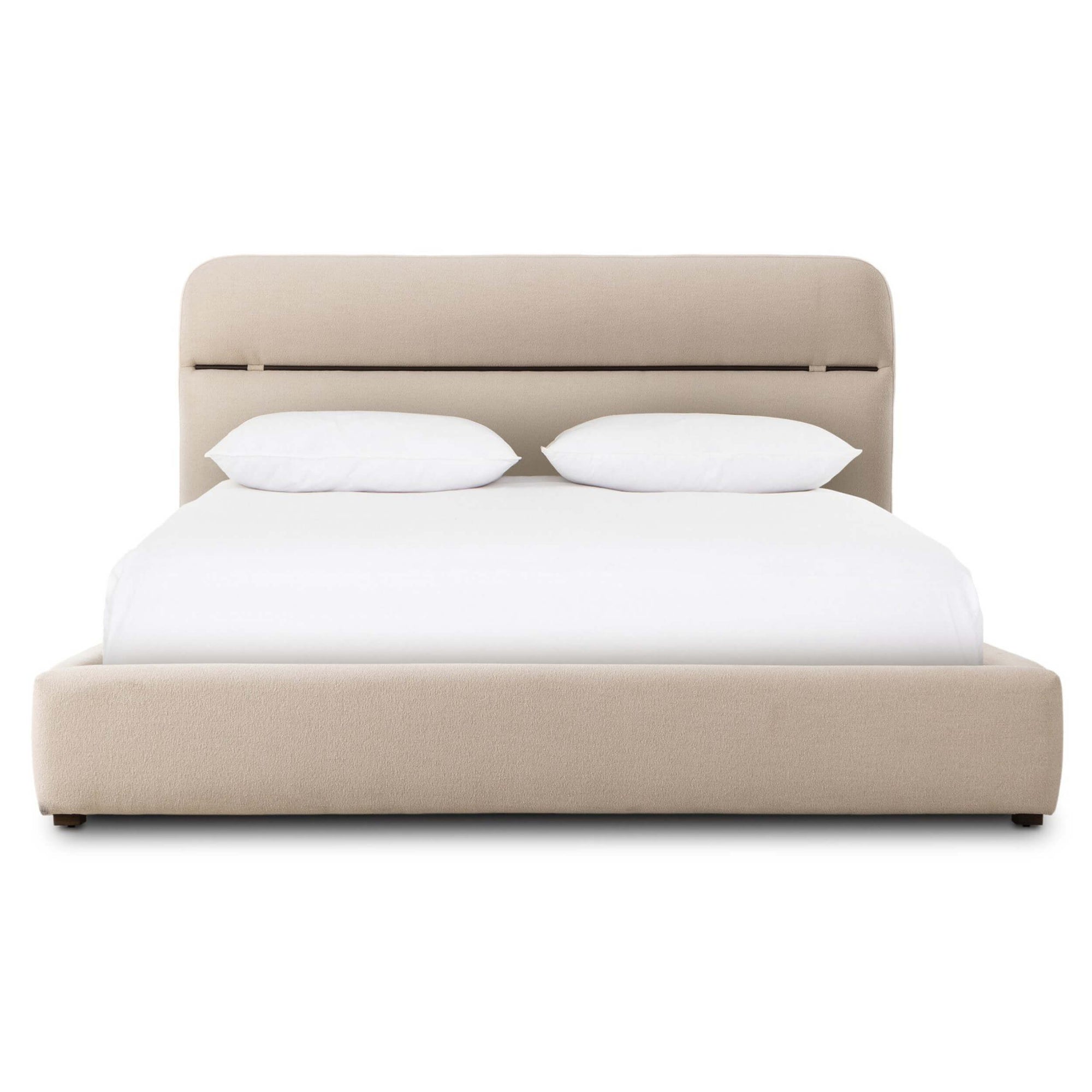 The Elodie Bed offers a cozy retreat with its pillowy headboard and generously rounded profile. Upholstered in textural Crypton® performance fabric, it combines comfort with practicality, featuring protection against stains, moisture, and odor. Softly curved edges enhance its inviting silhouette, making it an ideal centerpiece for a restful bedroom sanctuary.