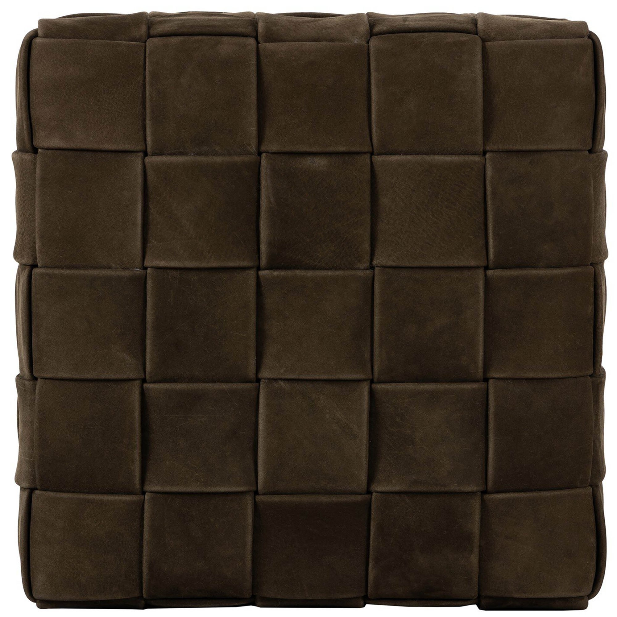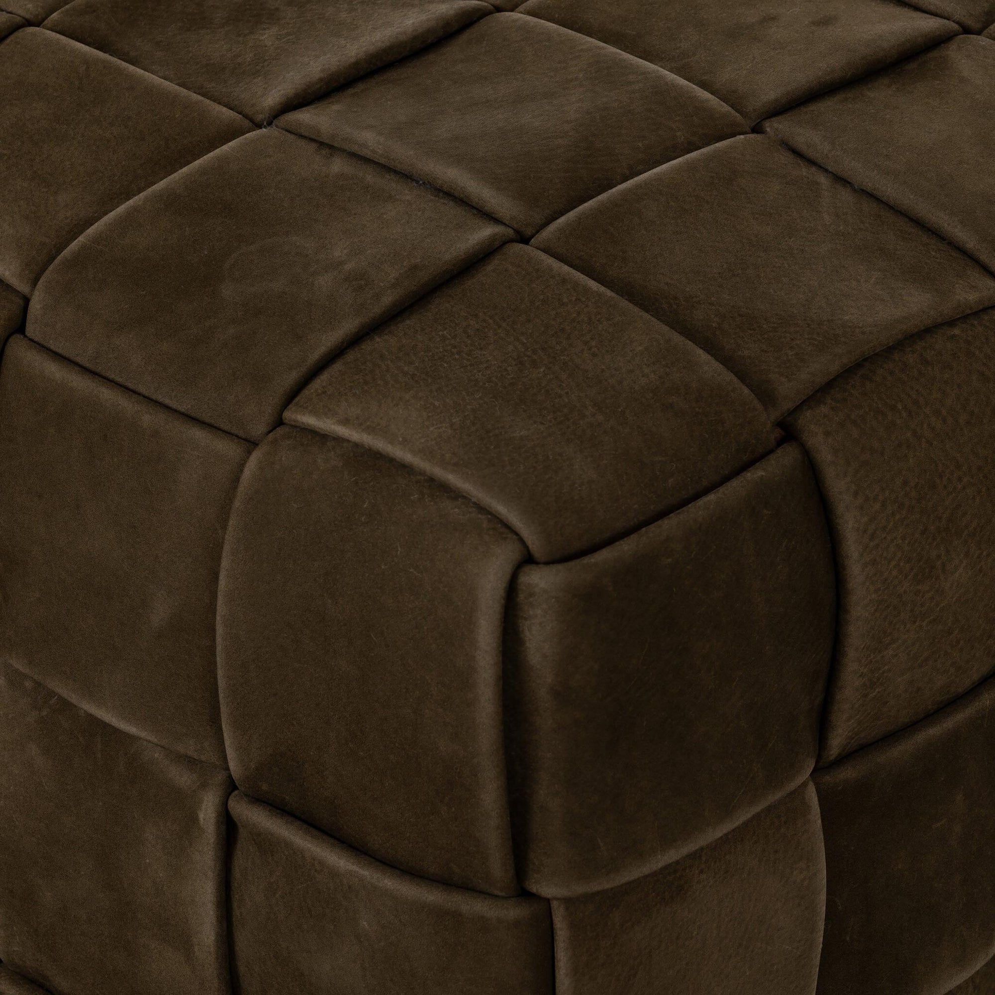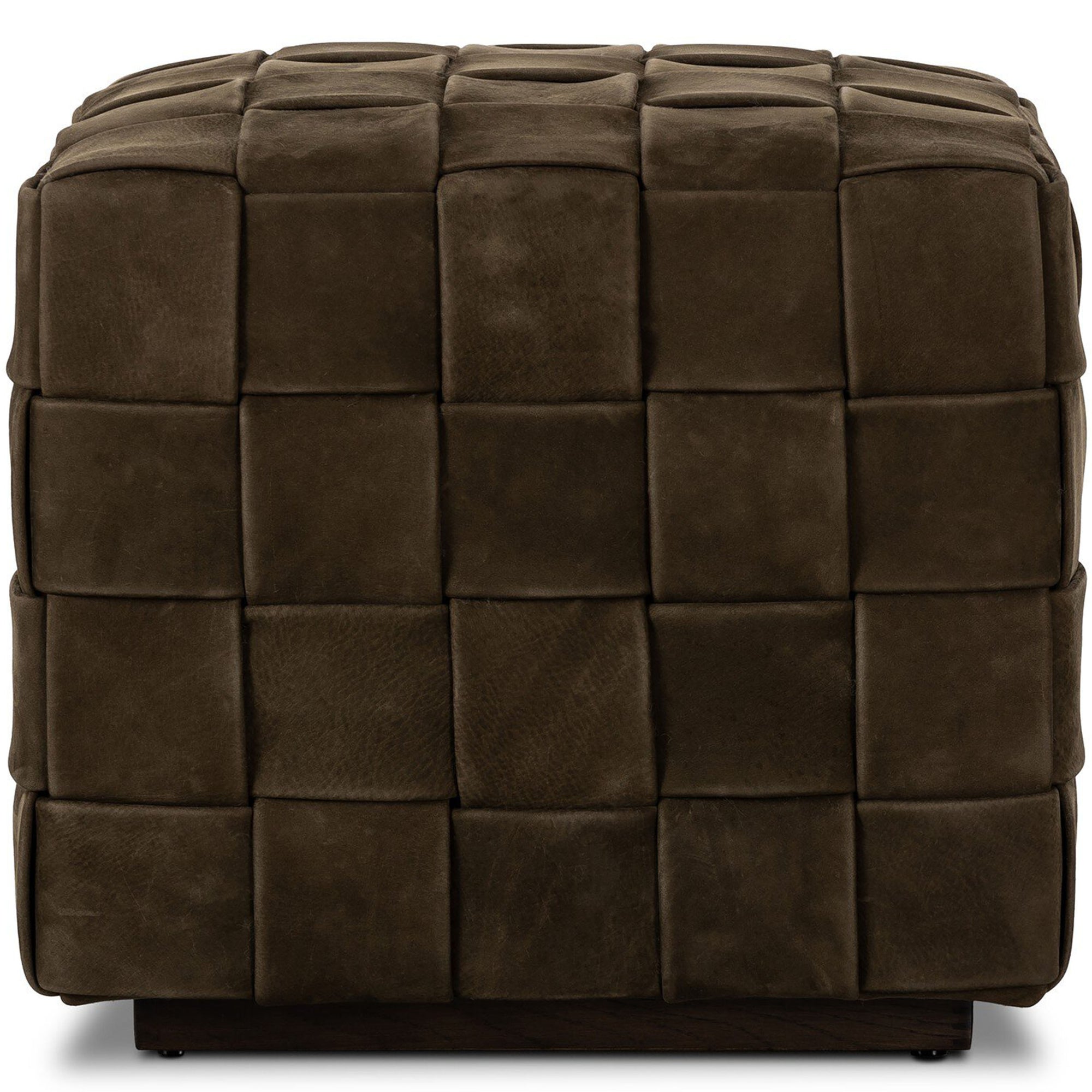 Flores Leather Ottoman, Nubuck Olive by Four Hands