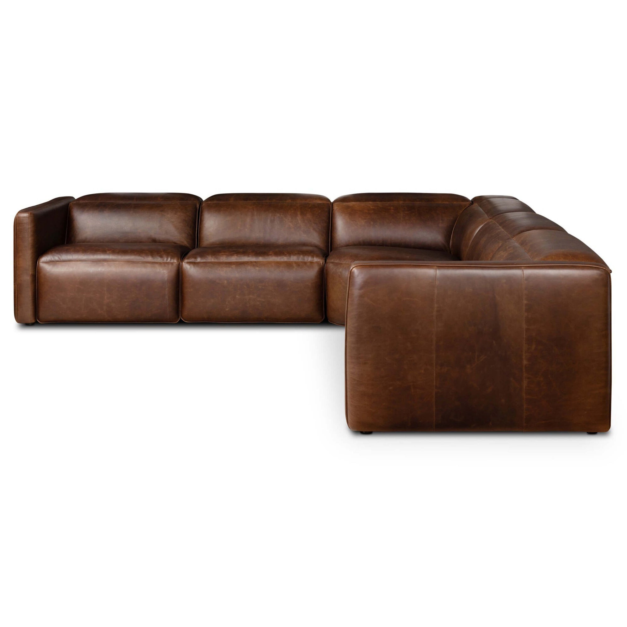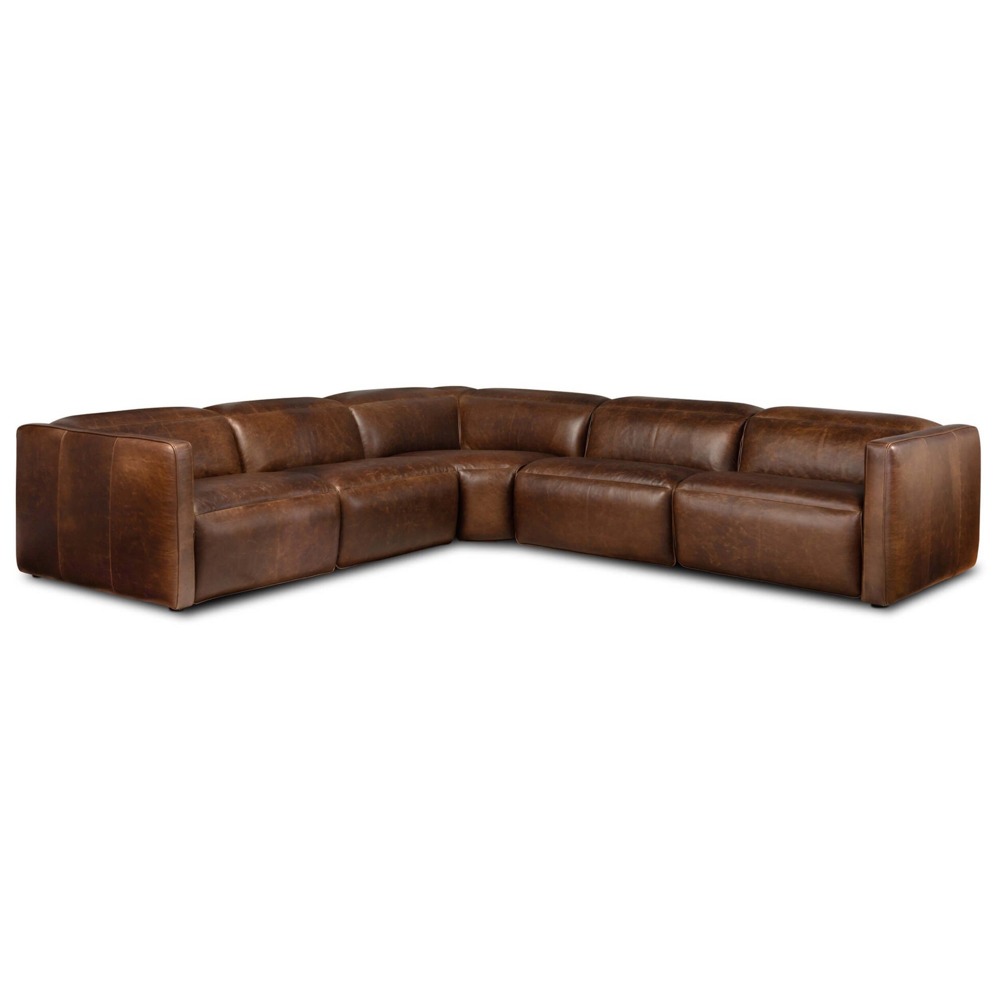 Kenlee Leather Power Recliner 5 Piece Sectional, Raleigh Cigar by Four hands