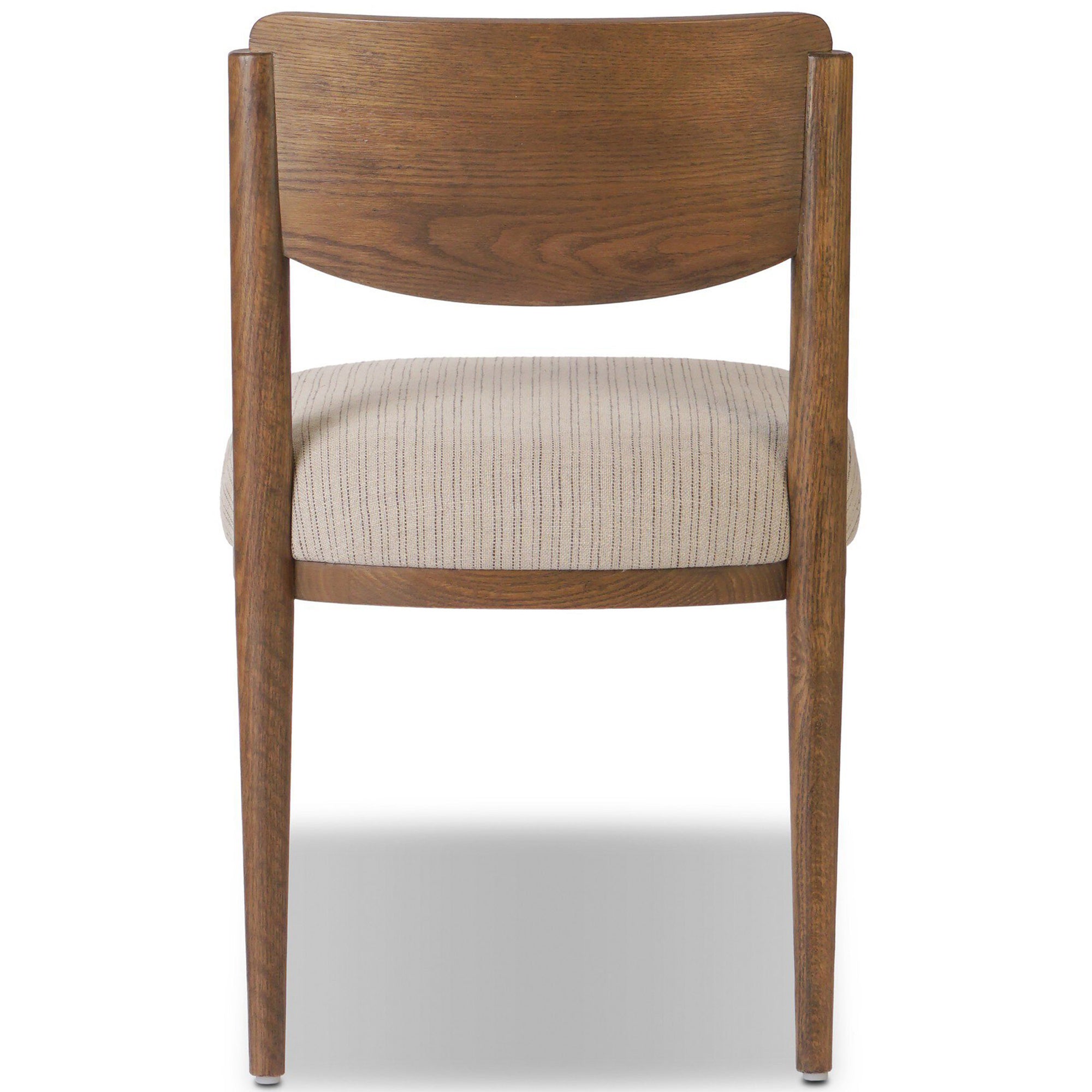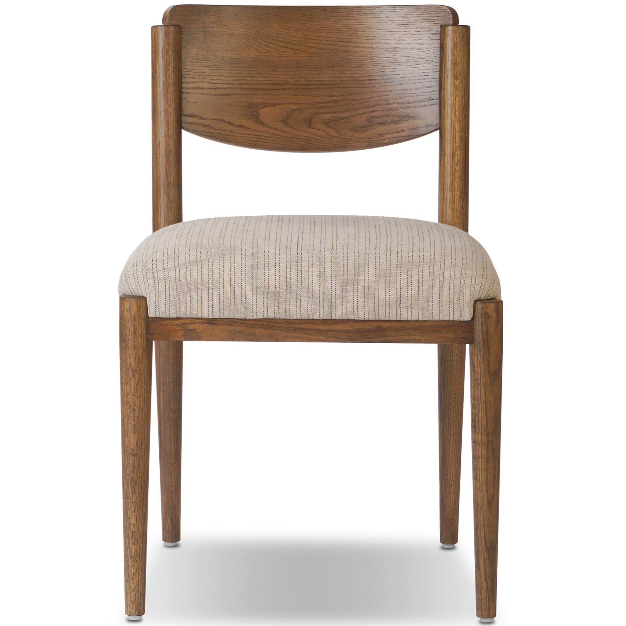 The Piran Dining Chair bringing streamlined style and comfort to your dining space. Featuring an armless side chair design, this piece is built with a sturdy Solid Oak frame and upholstered in a Linen/Cotton blend fabric. The supportive S-spring seat construction ensures lasting comfort for daily dining.