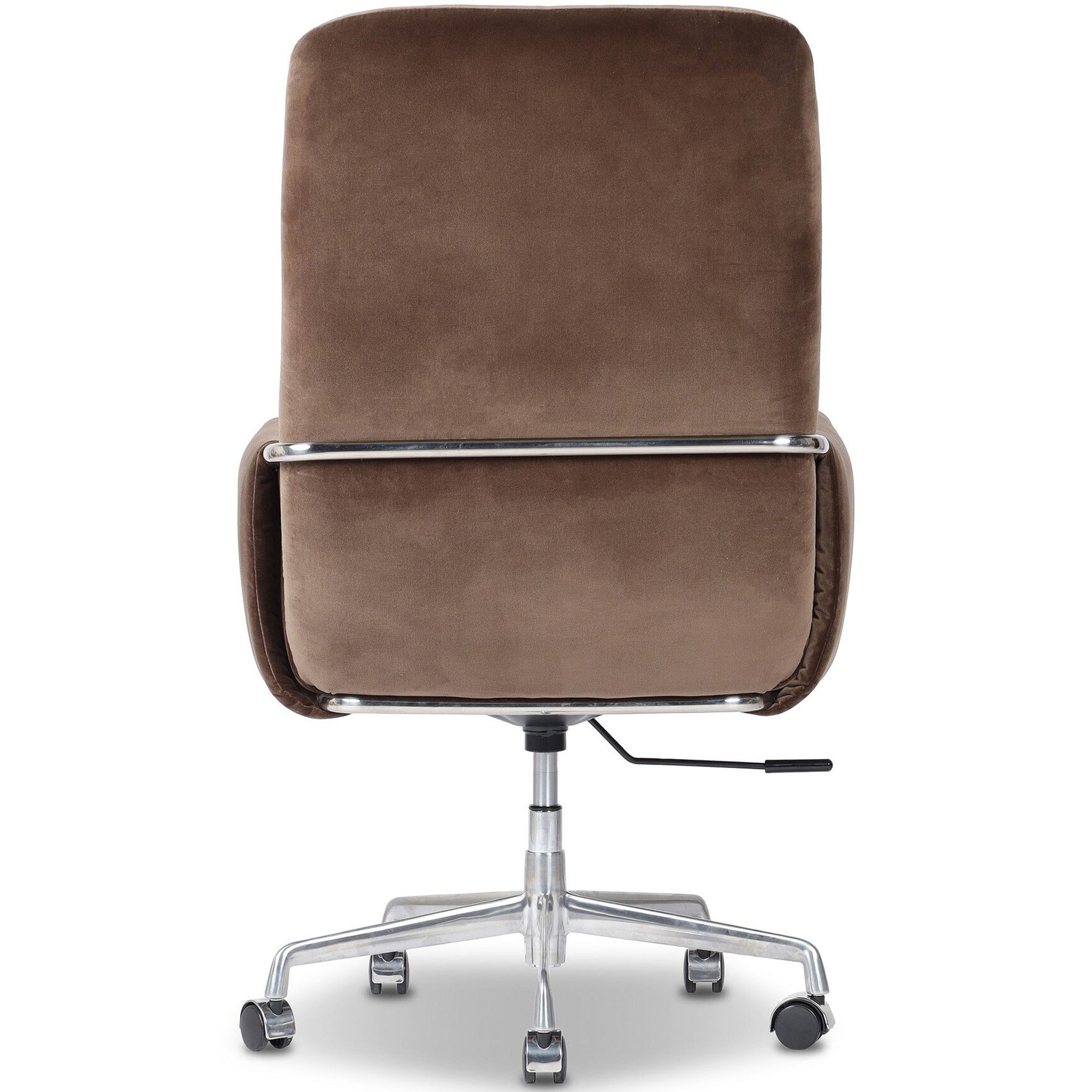 The Sherman Desk Chair blends refined comfort with sleek functionality. Featuring plush performance fabric, polished aluminum accents, and a supportive high back, this modern office chair offers swivel, adjustable height, and caster mobility for effortless movement. Perfect for both home and professional workspaces.