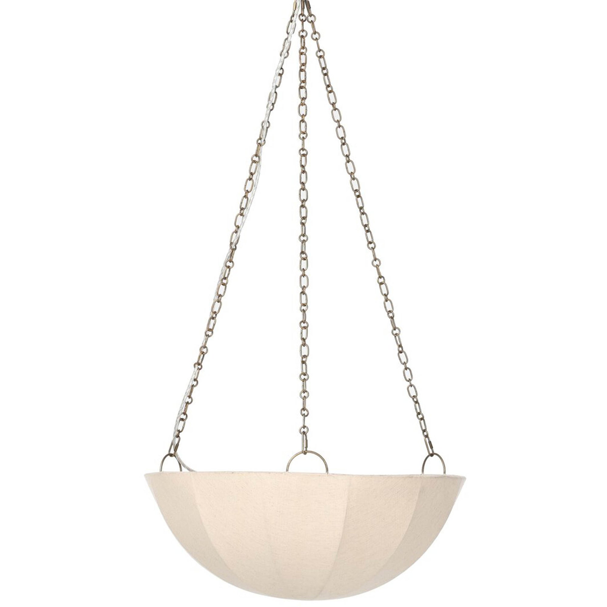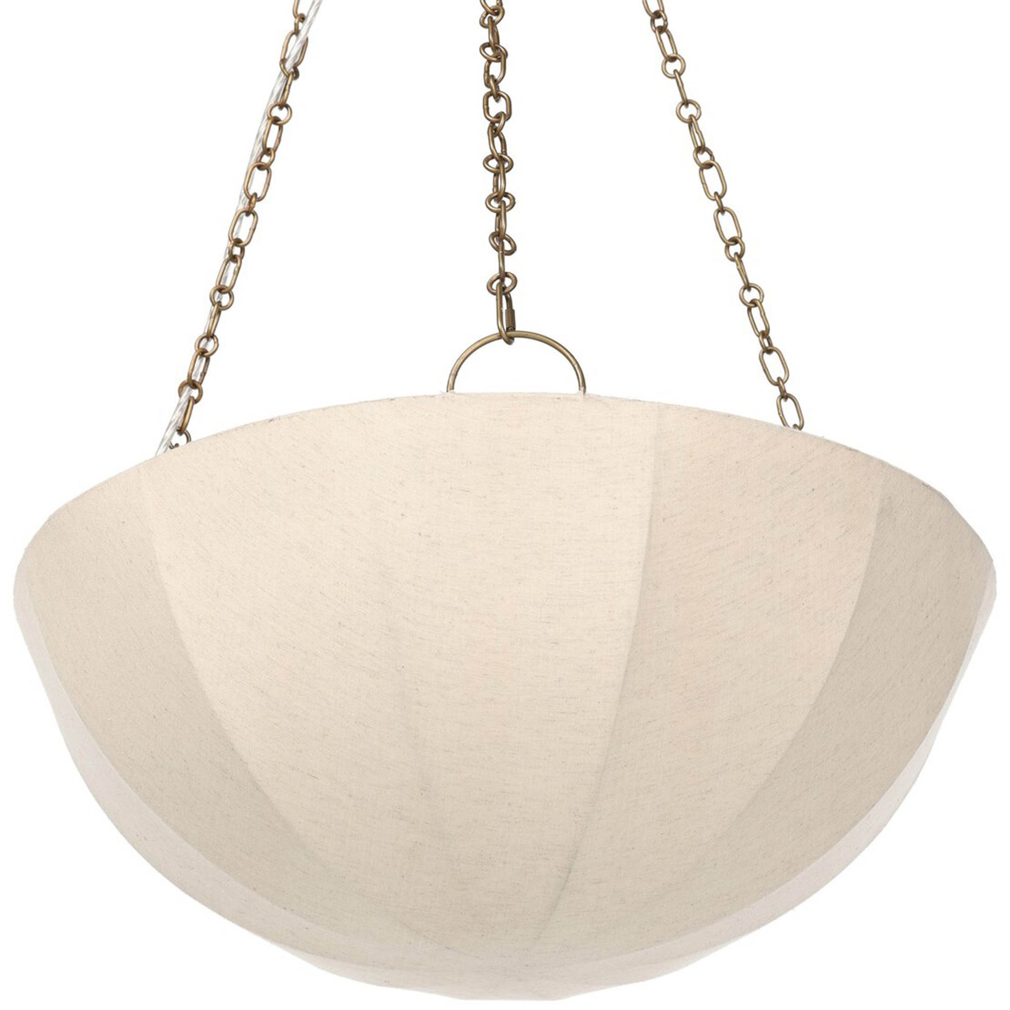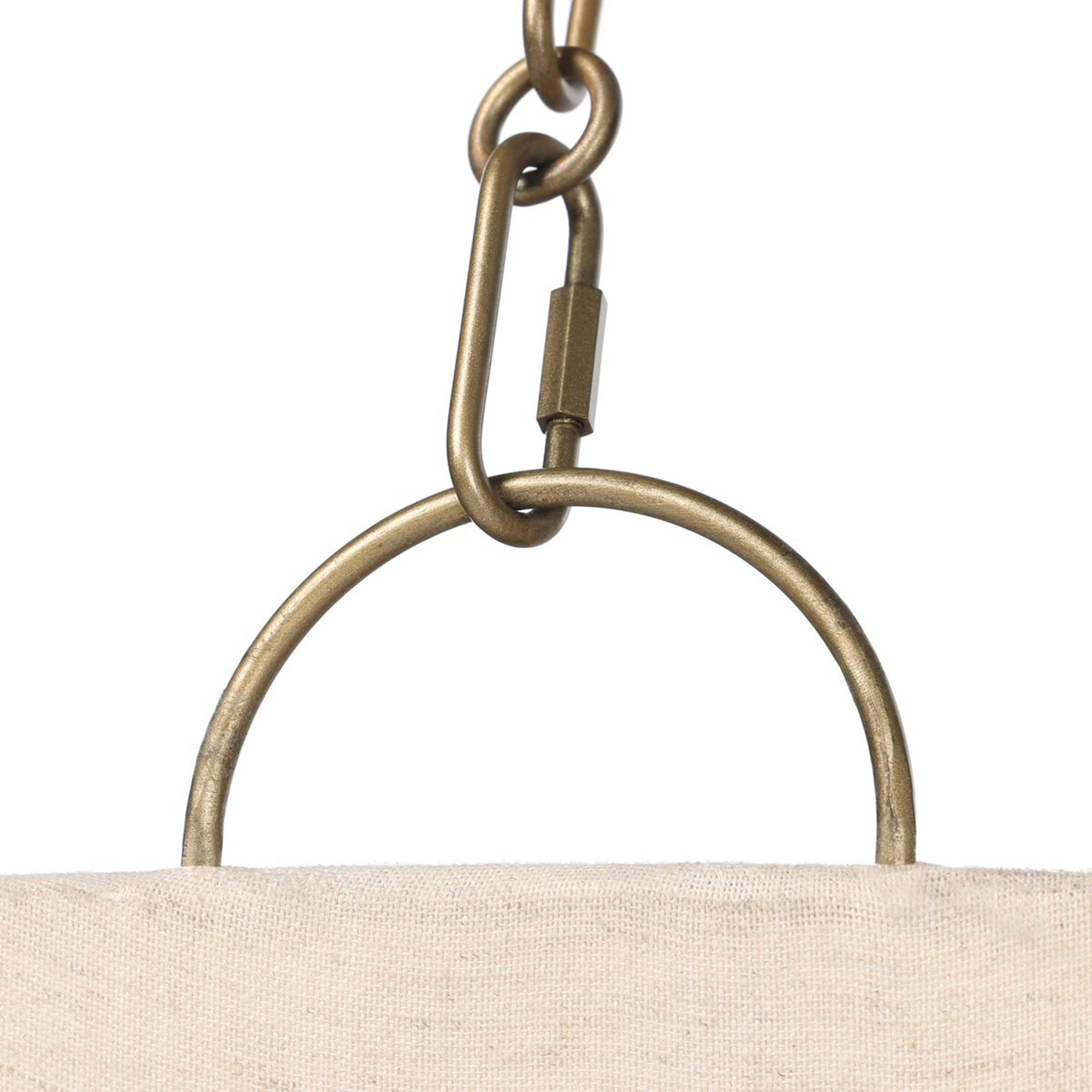The Teague Pendant brings Baroque influence to modern spaces with its oval-linked brass chain and dome-shaped flax linen shade. A rounded silhouette and antique brass finish set a warm, inviting tone.