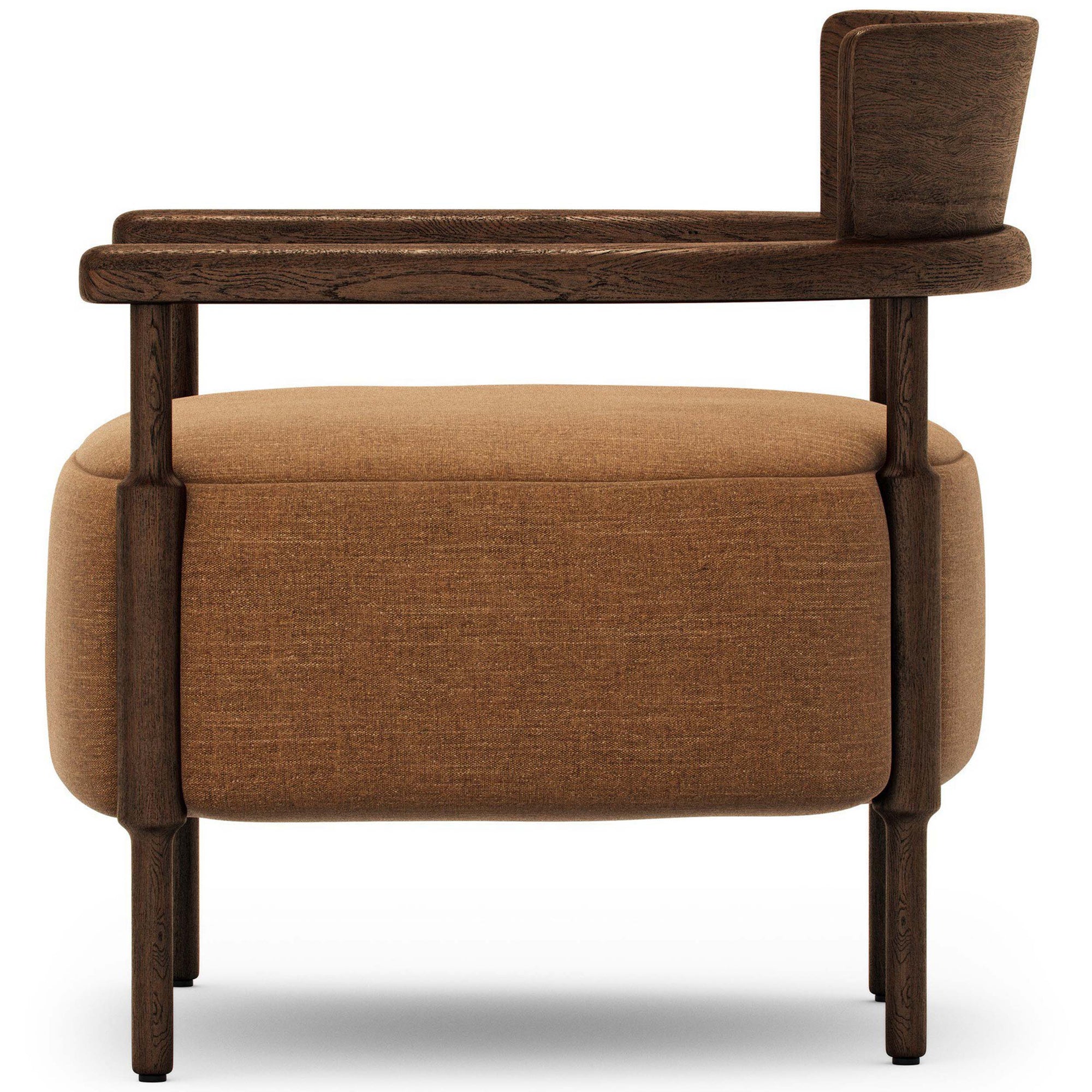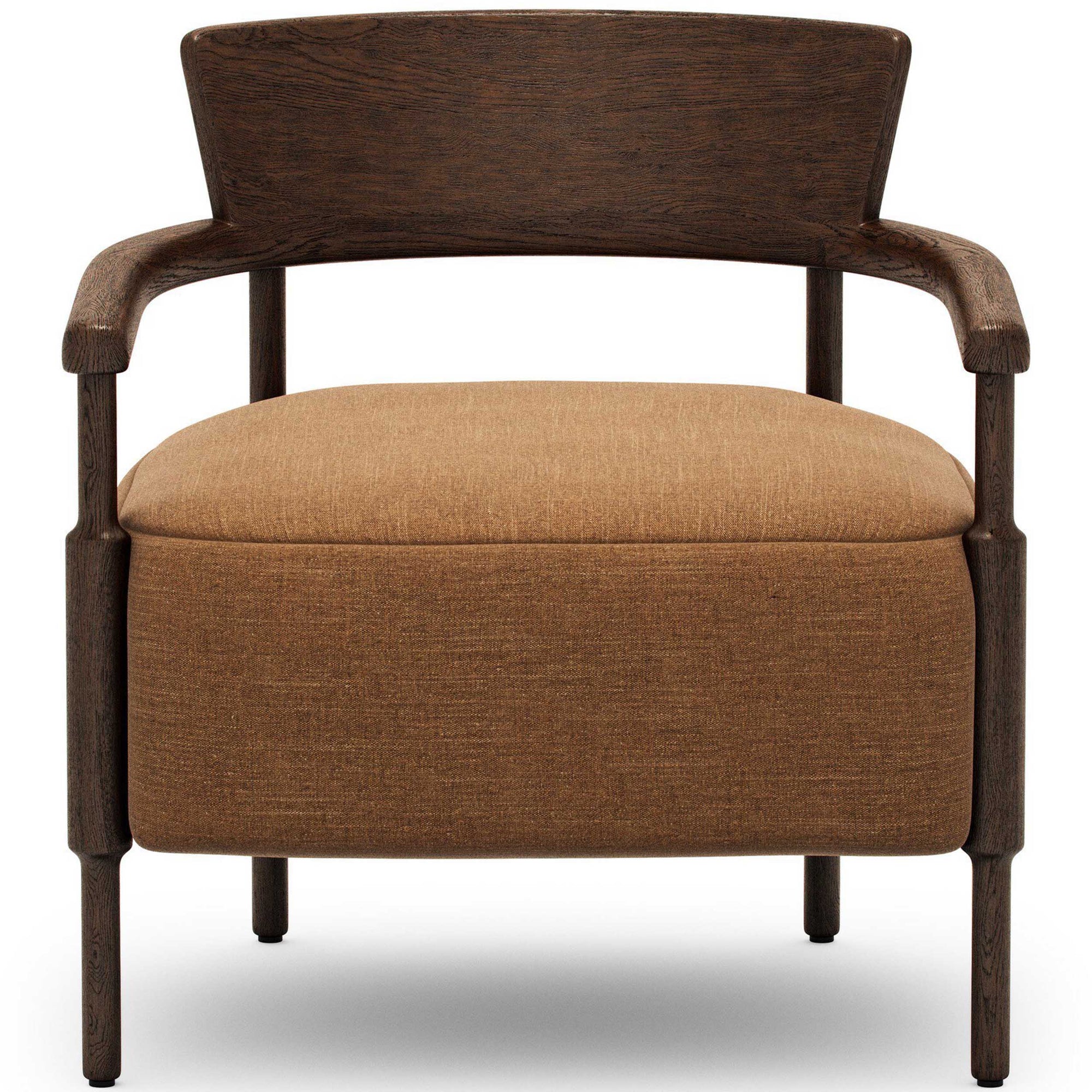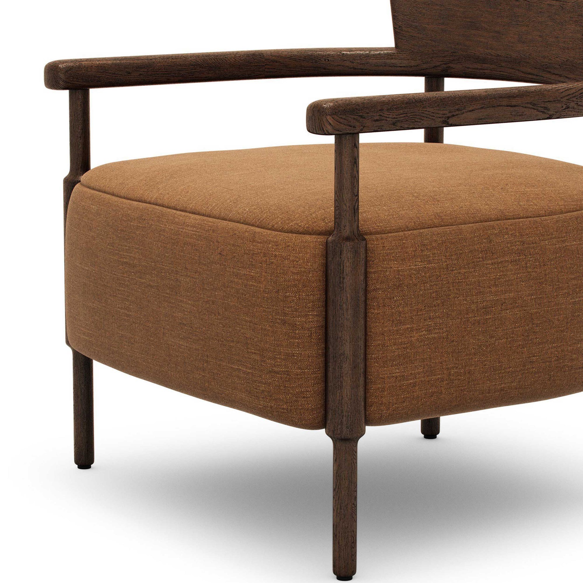 The Bennett Chair brings together craftsmanship and comfort through its mortise and tenon frame construction, pocket joint detailing, and webbing seat support. With a soft linen blend upholstery and warm oak tones, this accent chair makes an elegant statement in any living space.