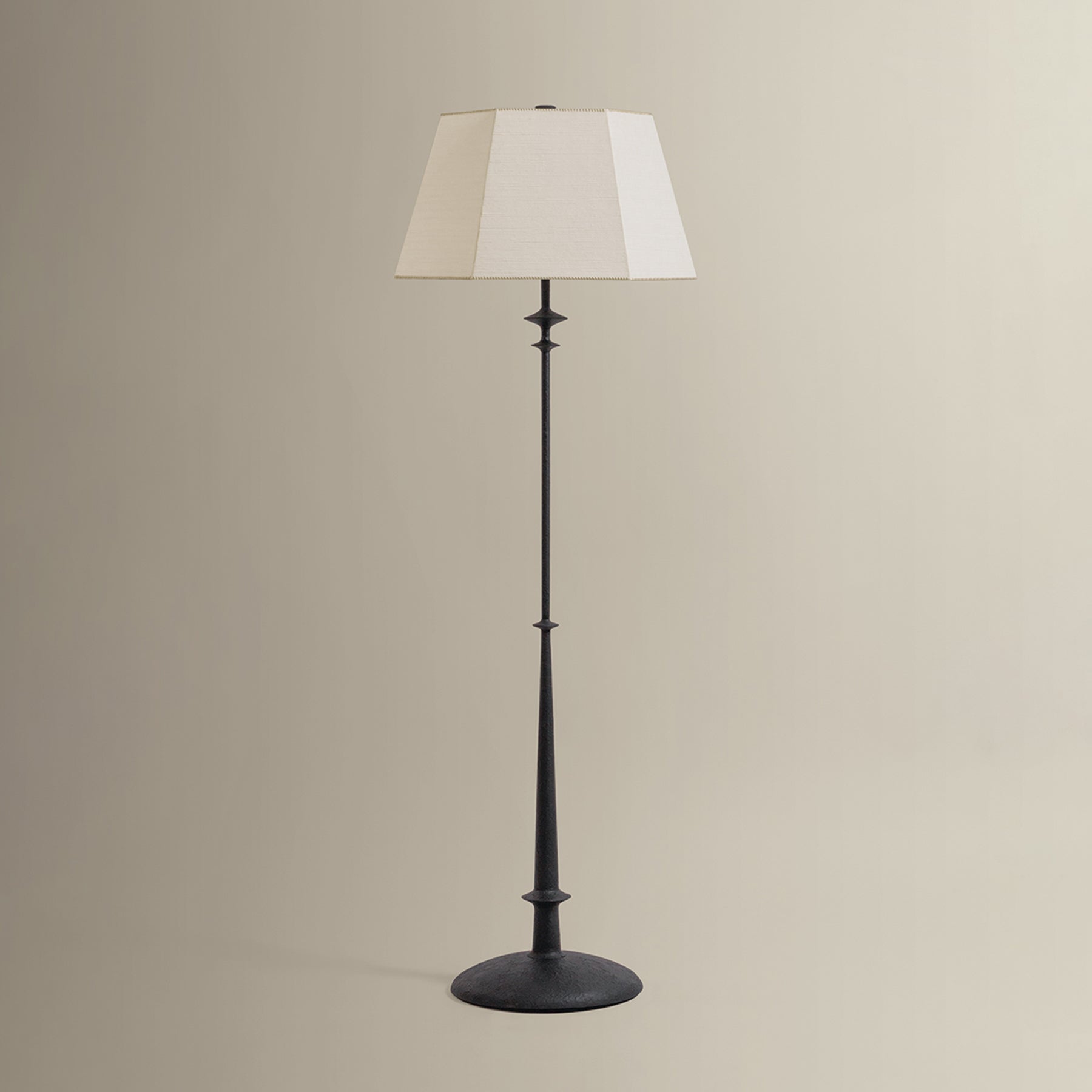 The Celmins Floor Lamp translates the warmth and texture of handmade materials into a quiet, architectural form. Crafted from a distinctive handmade paper shade, the angular silhouette is trimmed in whipstitching—a thoughtful detail that speaks to the artistry of its construction. This fixture brings a soft sculptural quality to interiors, making it a refined addition to living rooms or reading corners.