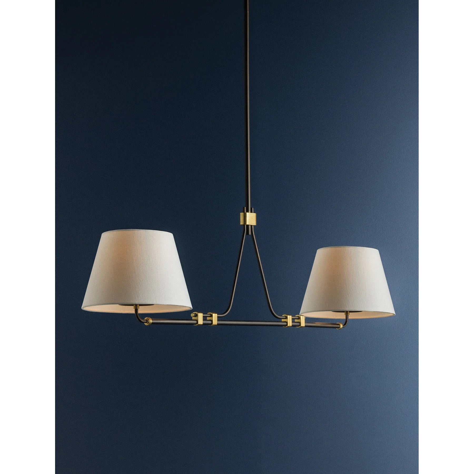 The Crown Heights Linear Chandelier is inspired by modern mechanics, featuring exposed connection points and eye-catching details. The slender metal frame is accented with lighter racetrack detailing that speaks to the design’s industrial signature. This fixture’s sleek, linear silhouette is designed to layer throughout the home, making an elegant statement above a kitchen island or breakfast bar.