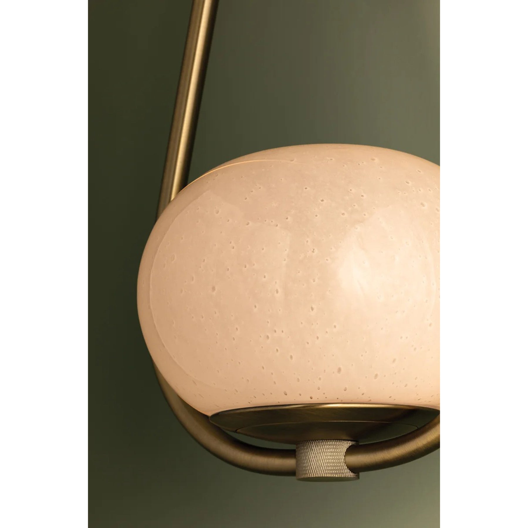The Decker Wall Sconce is jewelry-inspired, cradling a glass shade like a pearl in an earring. Looped over the arm, a large racetrack link creates the illusion of delicate balance. The slightly compressed form of the shade adds an artistic, organic note, while the metallic finish leaves a softly vintage impression. This striking sconce is perfect for adding a subtle ornamental touch to hallways or bedrooms.