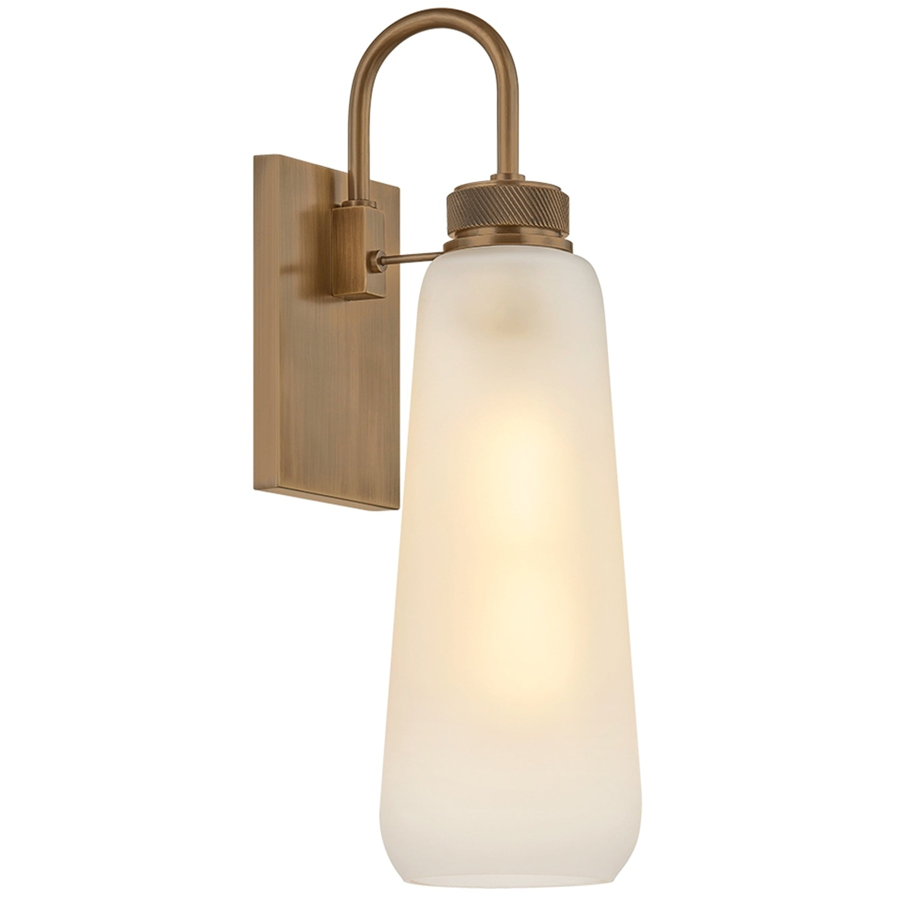 The Gulliver Sconce, inspired by vintage Italian designs, combines functionality with refined shaping. The elongated and gently tapered glass shade straddles the line between familiarity and futurism. Counterbalancing the softness, the socket cup has a mechanically knurled detail that gives this fixture an edge. The exaggerated J-arm mirrors the curvature of the shade, completing the fixture with a sense of continuity.