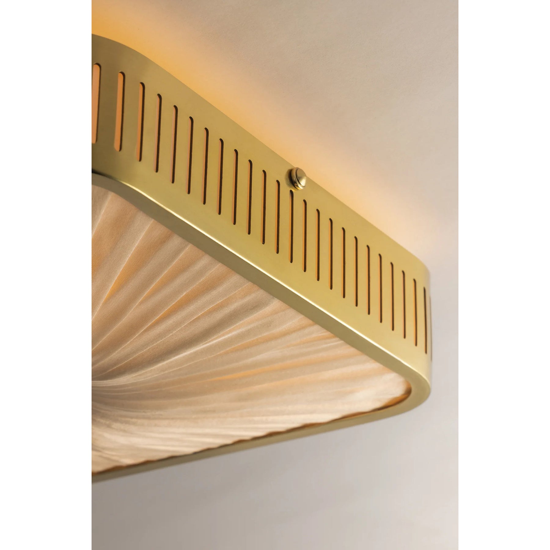 The Henri Flush Mount reimagines the classic ceiling fixture with a sculptural edge and purposeful detailing. A shallow square frame features uniform perforations that offer both visual texture and functional ventilation. The pleated shade lends a refined softness, creating a warm glow that complements the fixture’s clean architectural lines. This piece is an ideal solution for lower ceilings, bringing elevated design to even the most compact spaces.