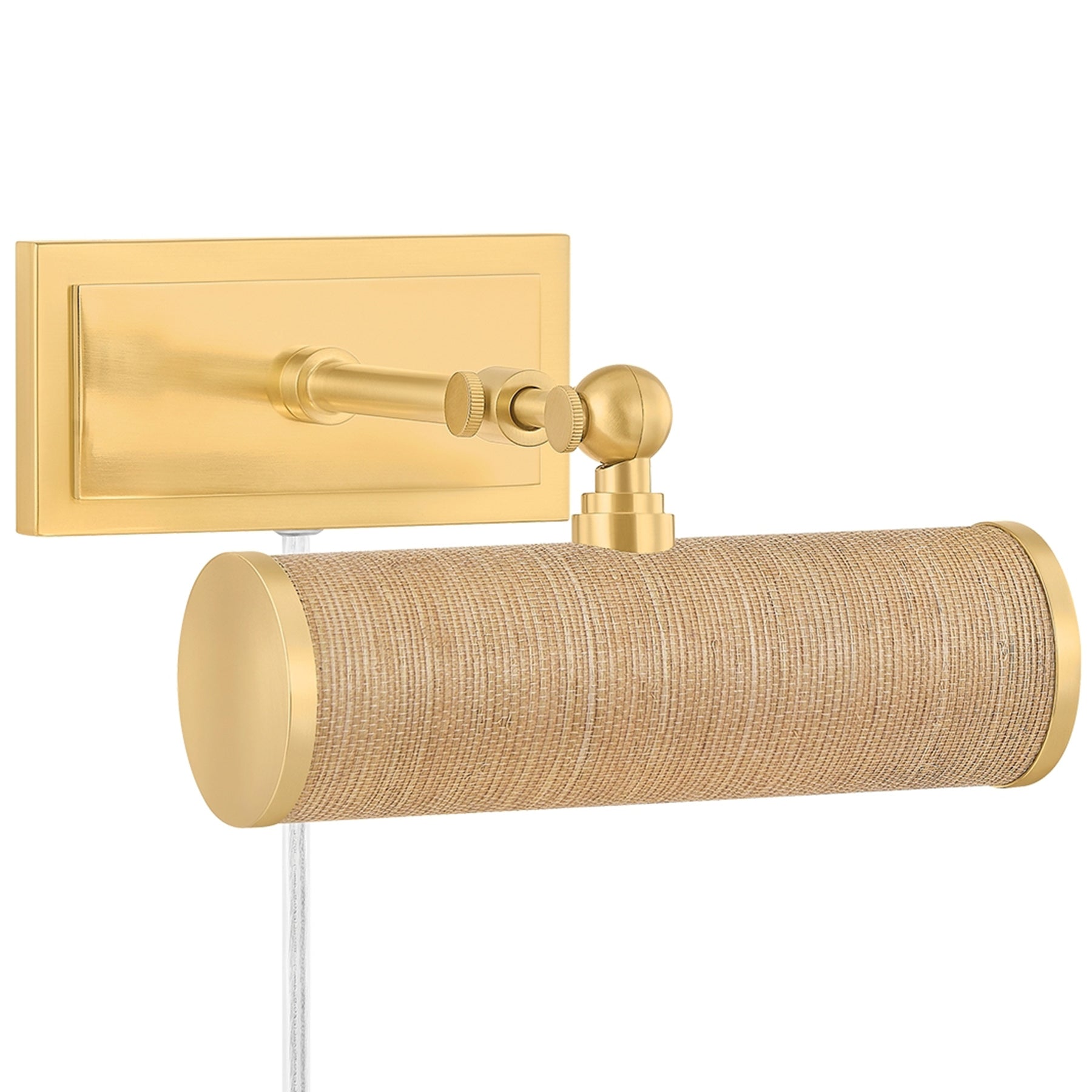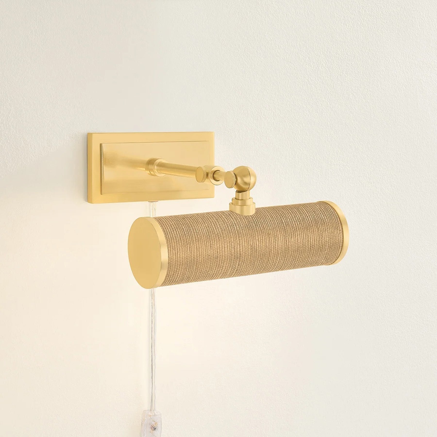 The Holly Picture Light brings focused attention to artwork or wall shelves with its style-forward design. This plug-in fixture features a natural woven shade that adds texture and distinctive character to the piece. Versatile and functional, it is available in three sizes to perfectly suit any space needing directed illumination and comes with a switch on the cord for ease of use.