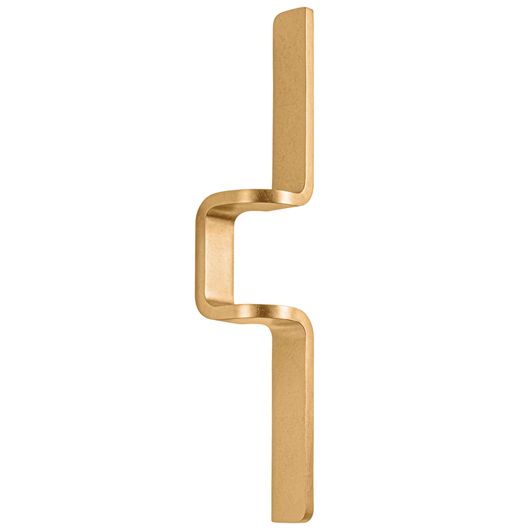 The Lazio Wall Sconce delivers a dramatic wash of light through its otherworldly and expressive serpentine curves. Like a character from an imaginary language, the form makes two fluid, abstract swoops away from the wall. Finished in a rich metallic leaf, this fixture can be mounted left, right, or horizontally depending on preference, creating a unique sculptural statement.
