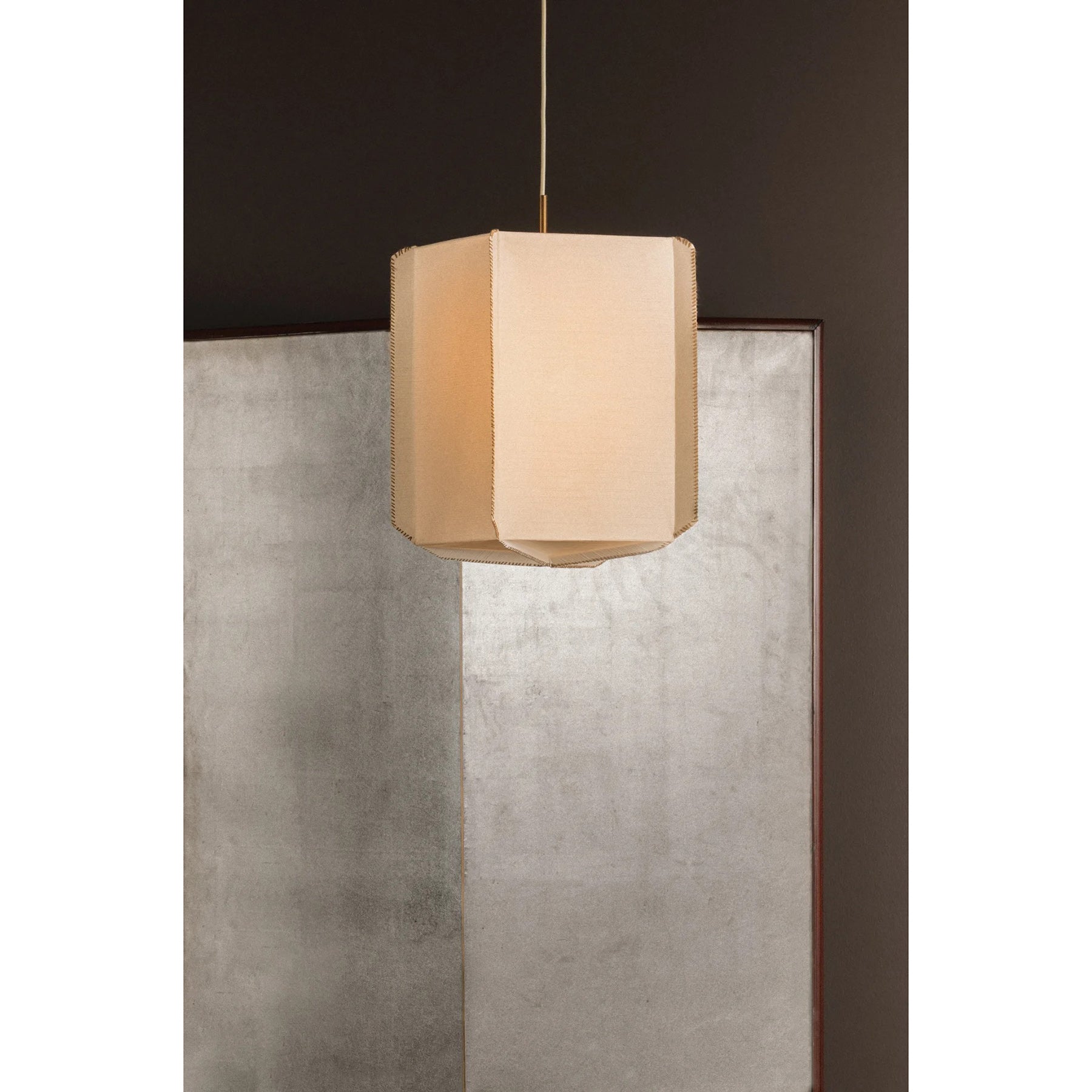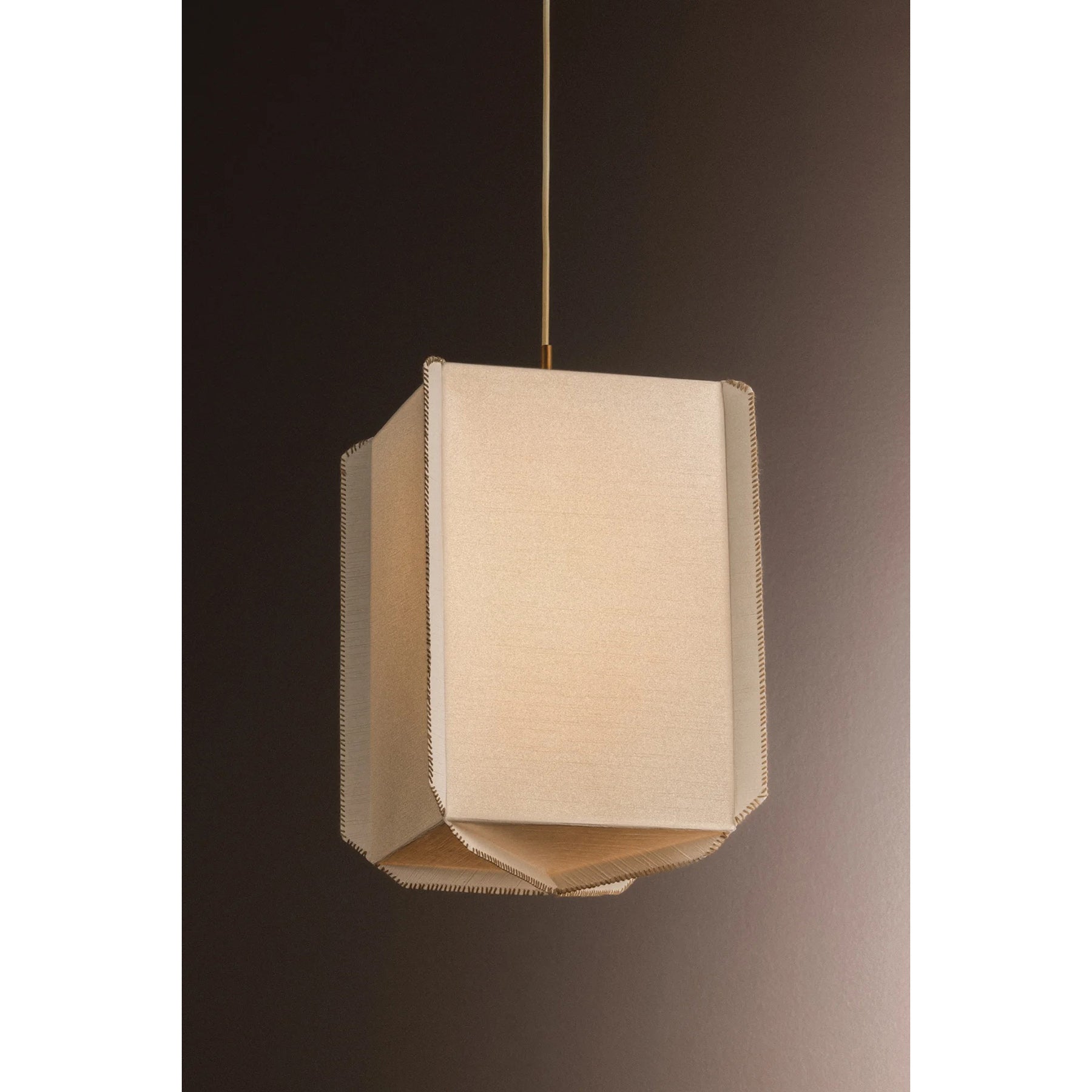 The Louise Pendant celebrates the beauty of handcrafted materials through a soft yet structured silhouette. Made from delicate Japanese rice paper, the shade features mushroom-colored whipstitching along its edges—a quiet detail that highlights the care behind its construction. Gentle folds create subtle texture and geometric interest, giving the piece a warm, sculptural presence. Available in two sizes, this fixture features a Patina Gold Leaf finish that adds a touch of luxury to the design.