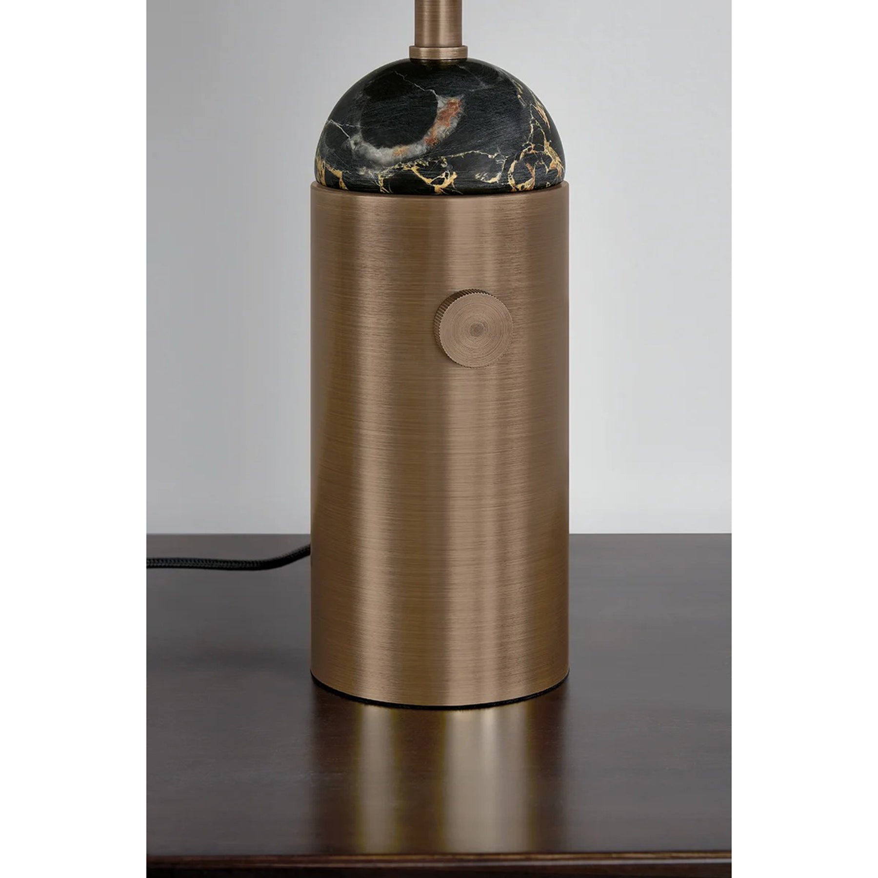 The Permont Rechargeable Table Lamp makes a design-forward statement despite its compact scale. This LED lamp features a sharply tapered metal shade with a luxurious honed Emperador marble base. The natural veining of the stone comes to life when illuminated, giving this piece its one-of-a-kind beauty.