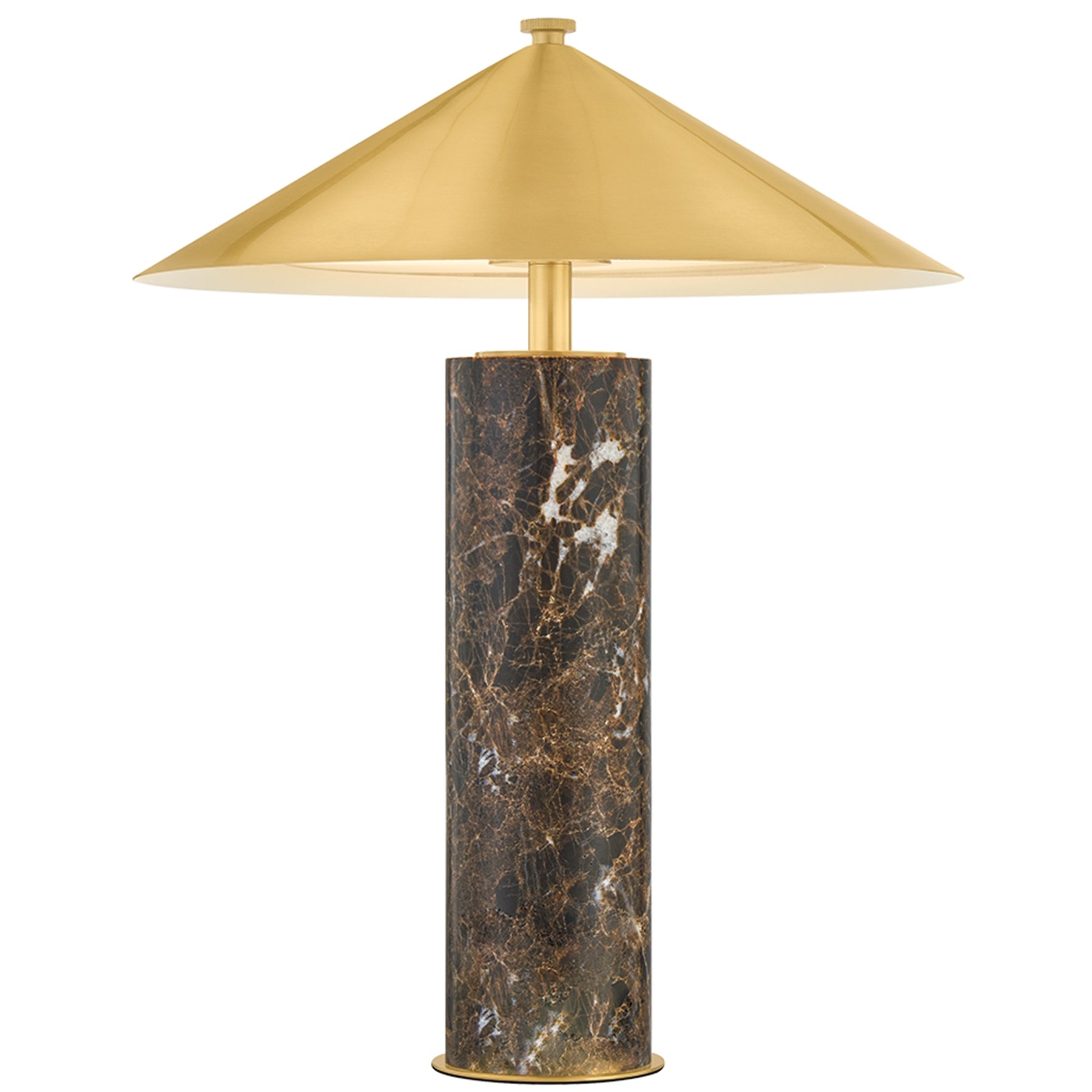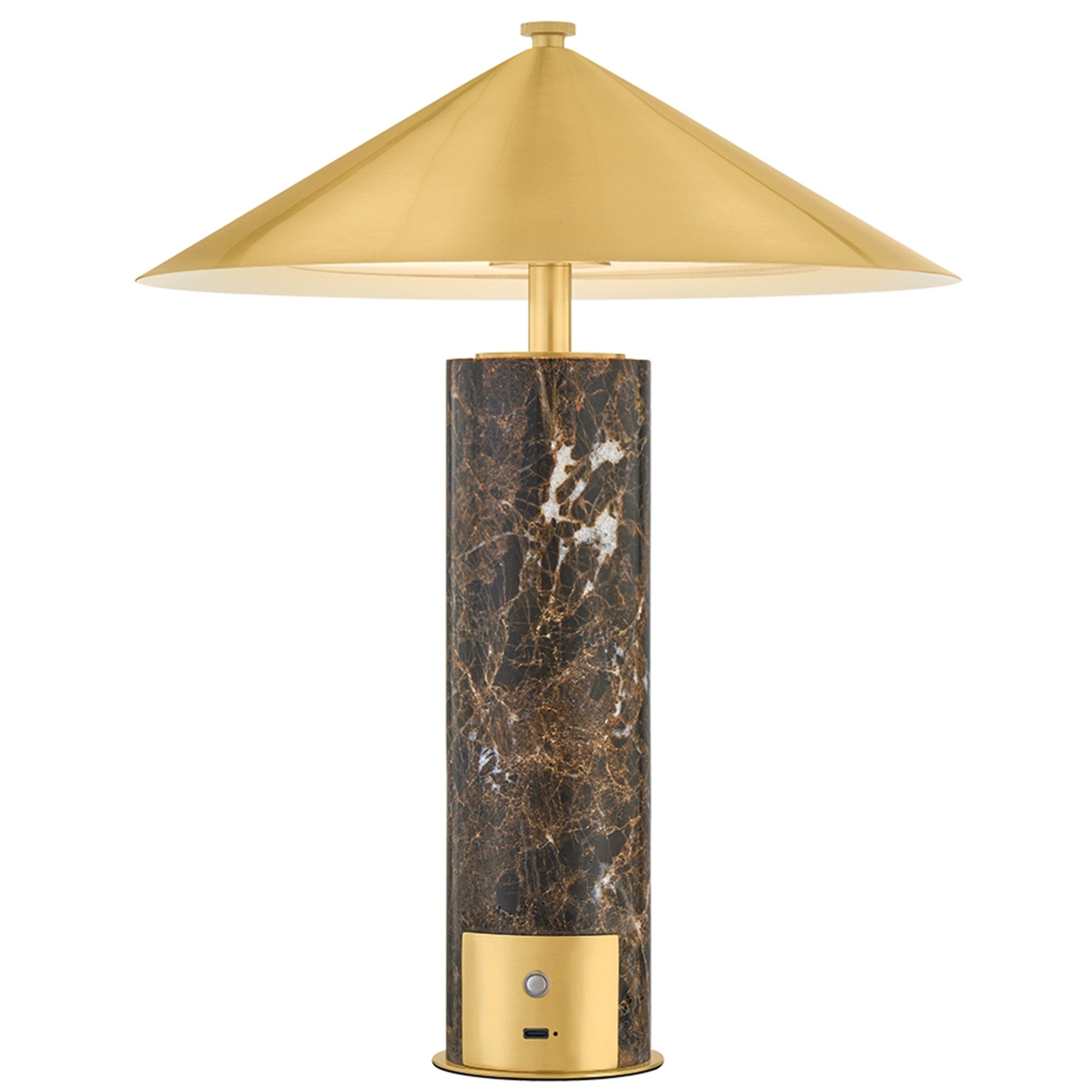 The Permont Rechargeable Table Lamp makes a design-forward statement despite its compact scale. This LED lamp features a sharply tapered metal shade with a luxurious honed Emperador marble base. The natural veining of the stone comes to life when illuminated, giving this piece its one-of-a-kind beauty.