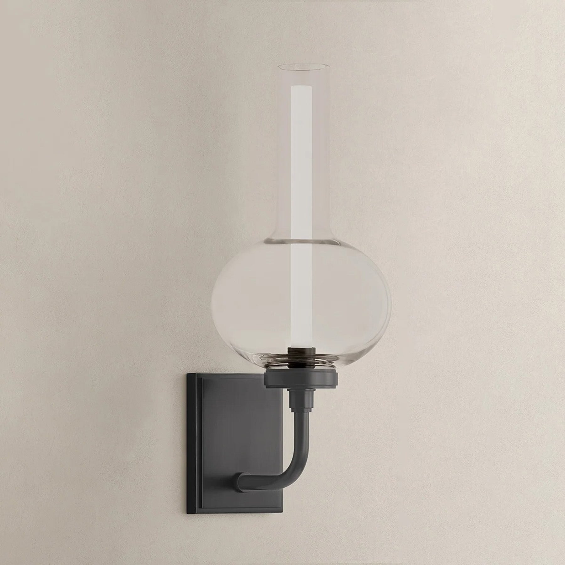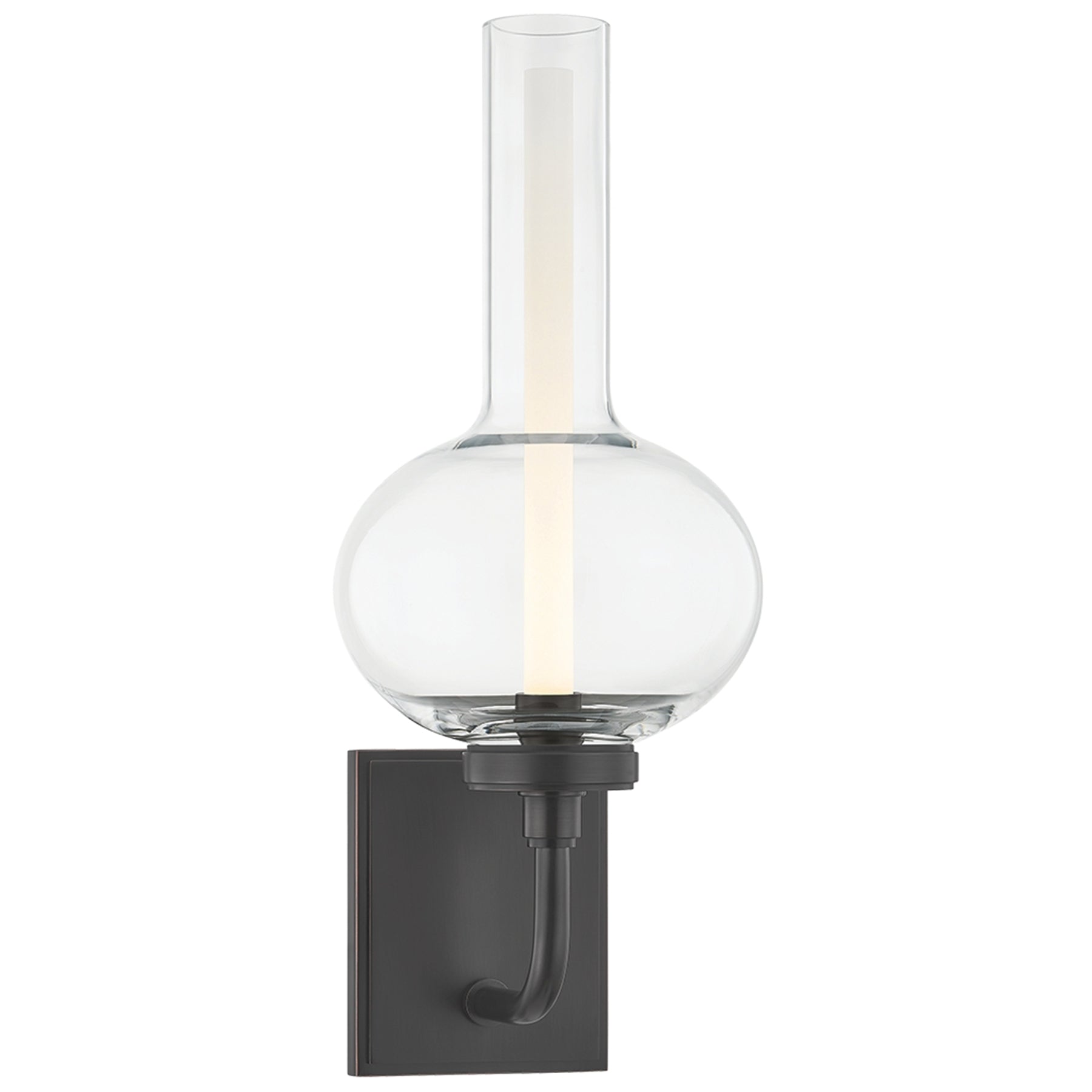 The Rossman Wall Sconce is a modern interpretation of turn-of-the-century gas lamps. Where a flame once would have flickered, an LED light now illuminates this hurricane-style clear glass silhouette from within a solid acrylic cylinder. Finished with an Aged Brass candle holder, Rossman Wall Sconce taps into vintage elegance while providing modern utility.