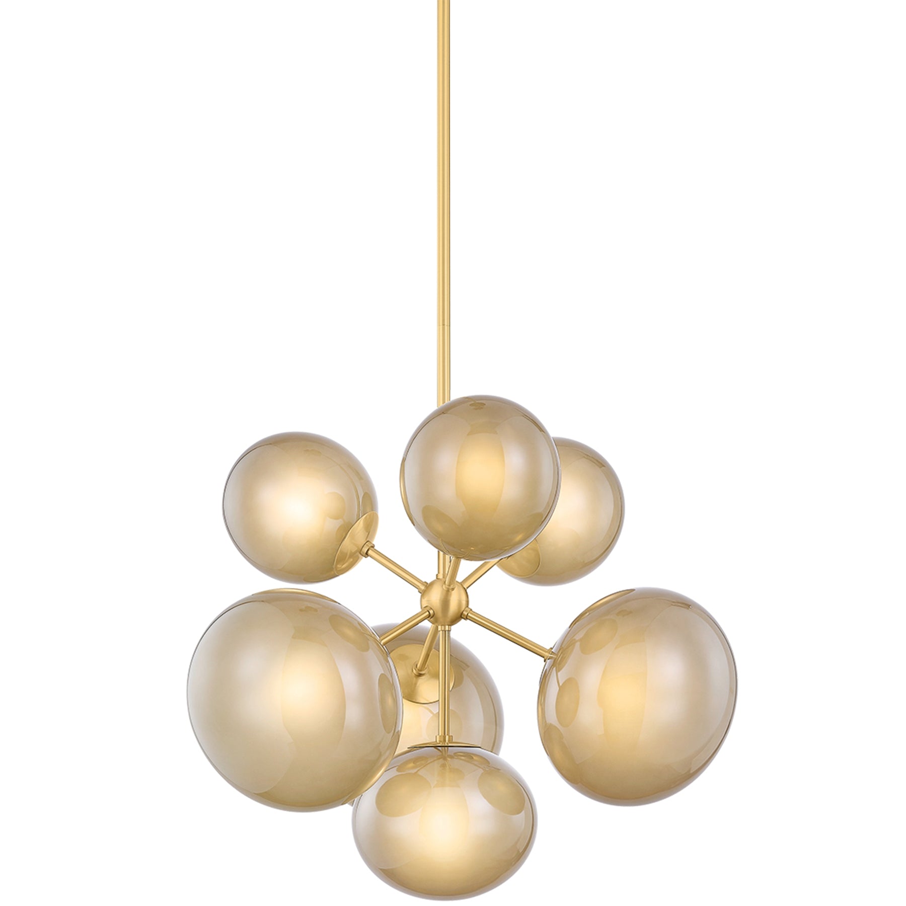 The Zaley Chandelier brings a fresh, mid-century sensibility with its artfully updated Sputnik silhouette. Slightly irregular glass globes extend from a sculptural central sphere, creating a dynamic interplay of shape and light. Designed as a striking focal point, this seven-light fixture adds bold character to dining rooms, living spaces, and entryways with its modern, dimensional form.
