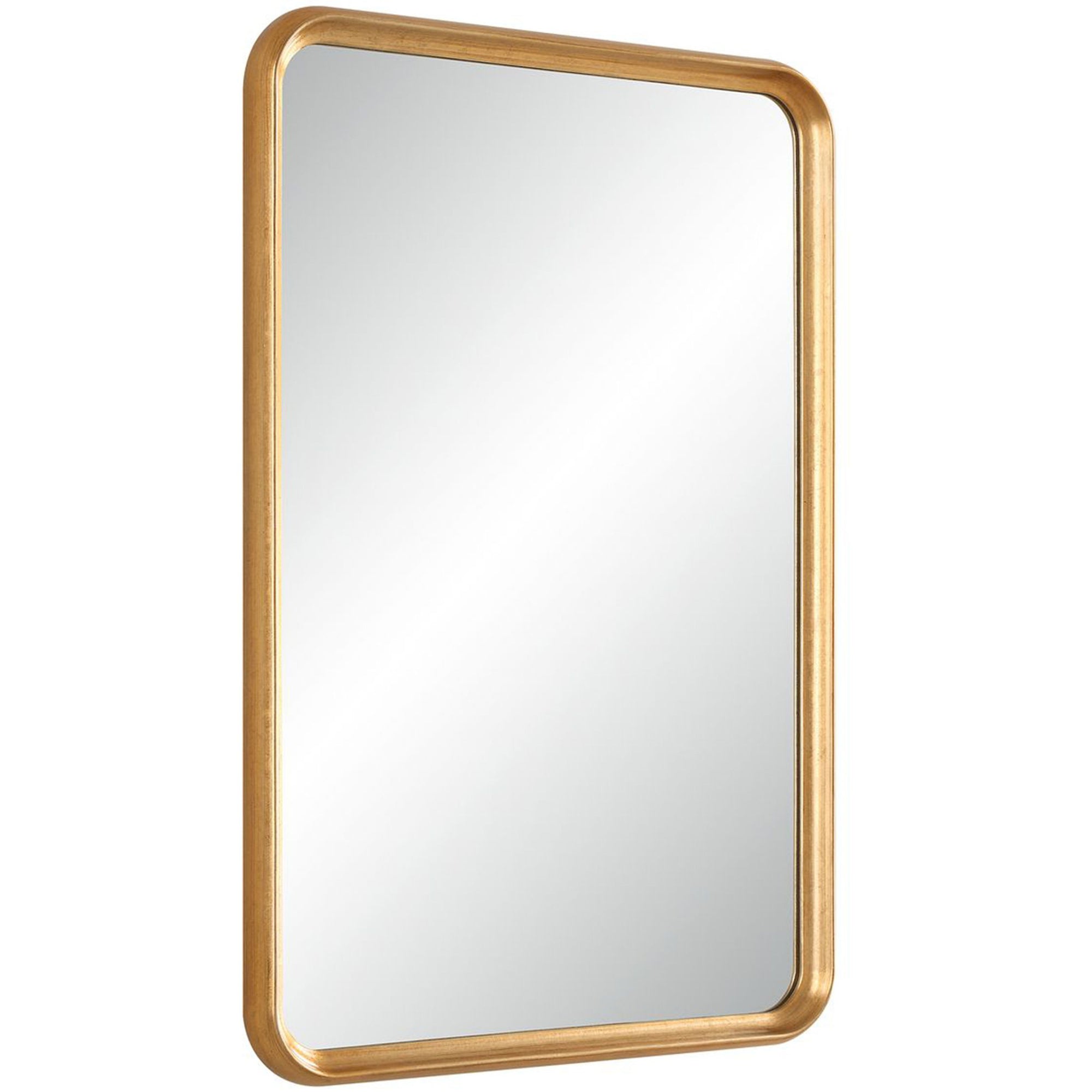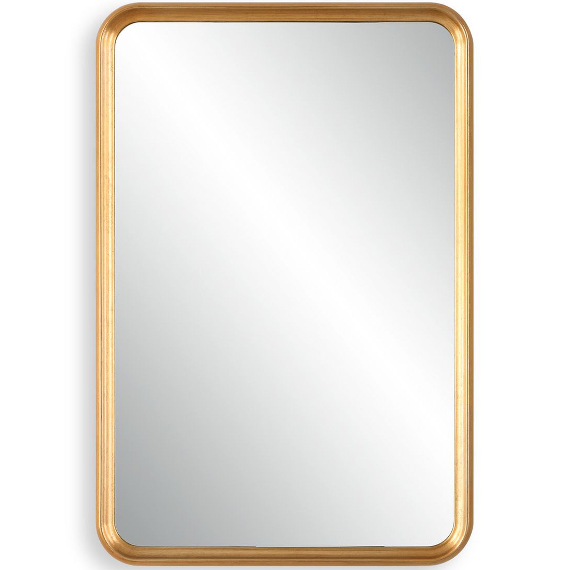 The Branwen Mirror features a rectangular frame with a concave slope and soft radius corners. Finished in champagne gold leaf, this mirror adds warmth and sophistication to any space. May be hung either vertically or horizontally.