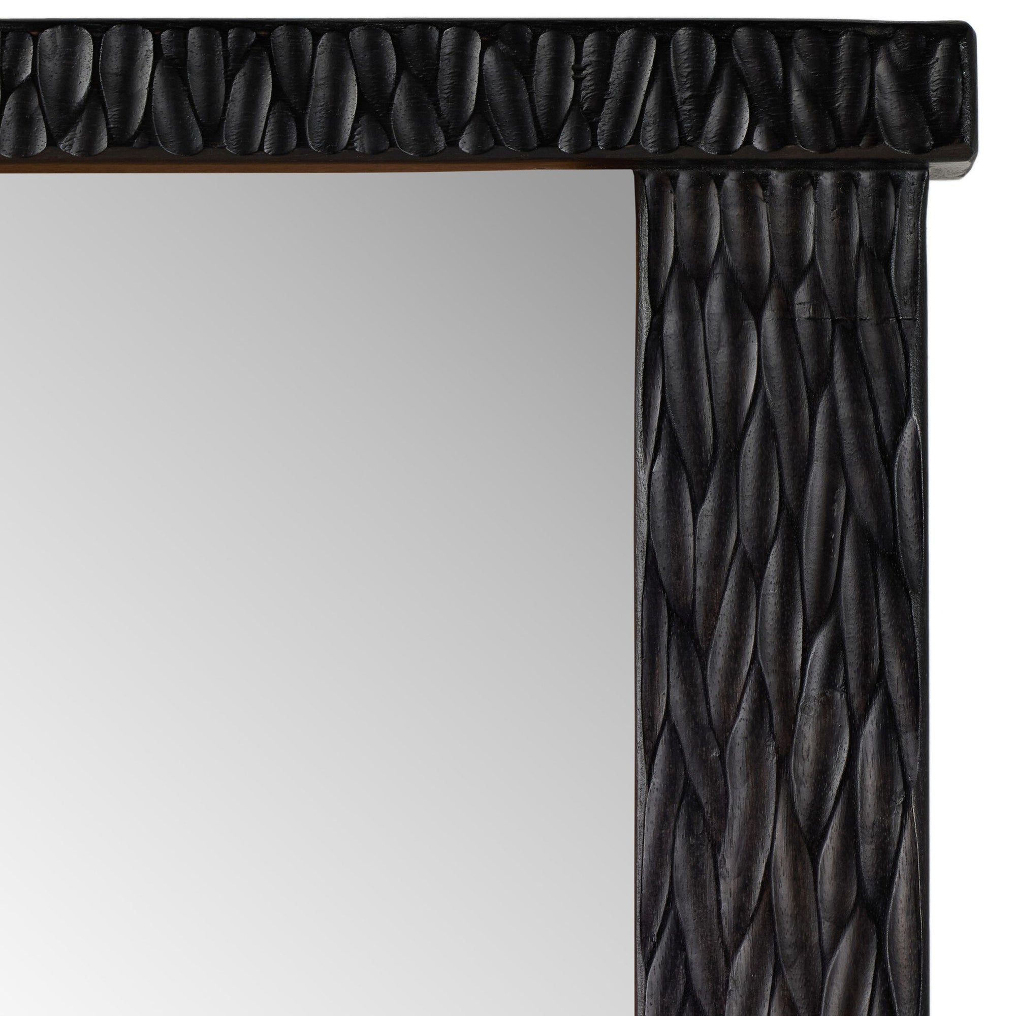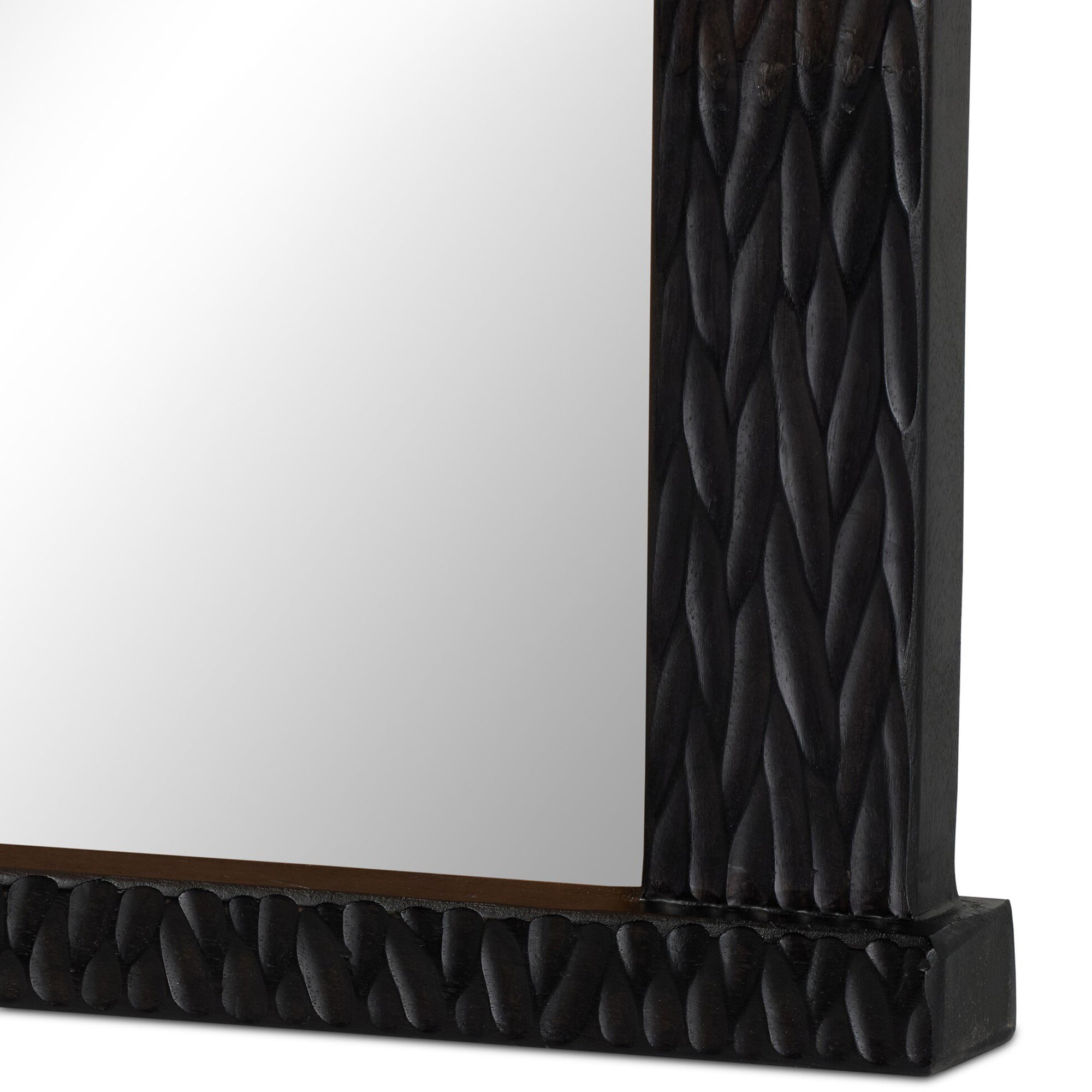 The Cayman Mirror features a striking hand-carved mango wood frame with rich texture and intricate detailing. Perfect for adding a bold focal point to any room, this floor-standing mirror blends artistry and function seamlessly.