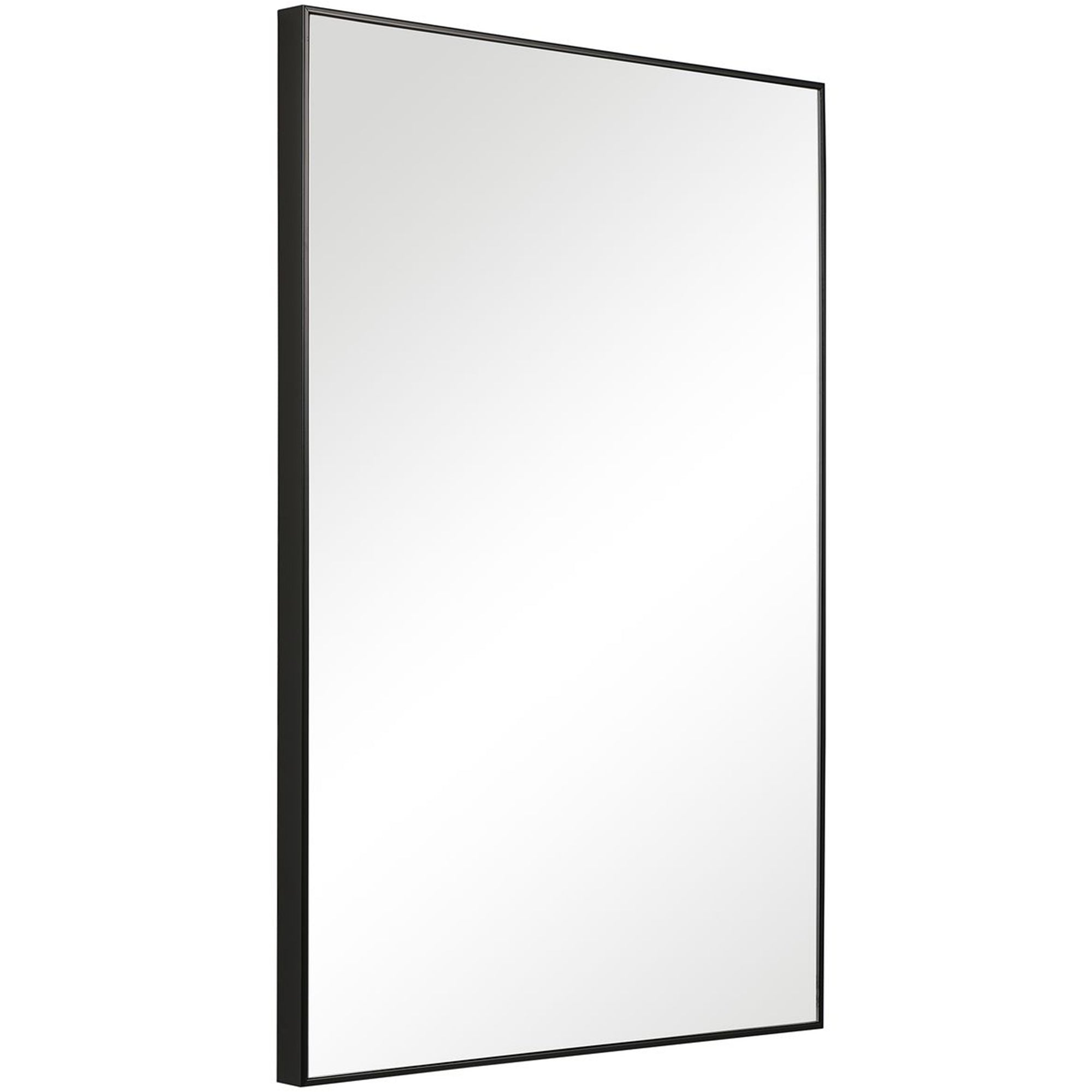 The Cordelia Mirror features a thin black frame with a plain mirror, creating a simple and clean design. May be hung either vertically or horizontally, perfect for bathrooms, foyers, or any space needing a contemporary touch.