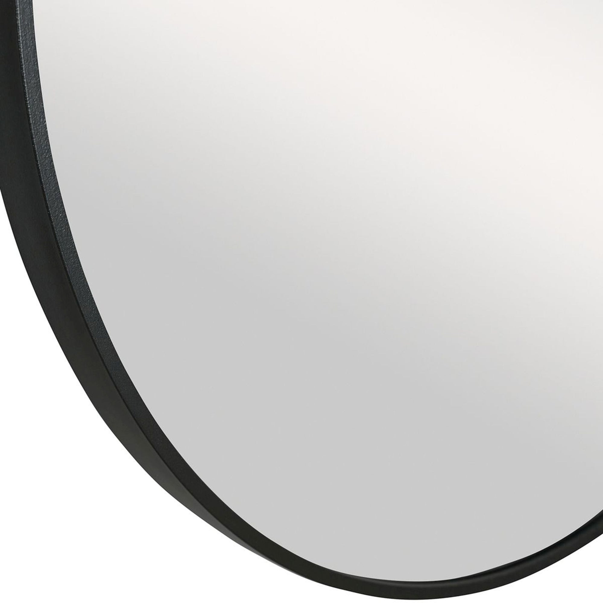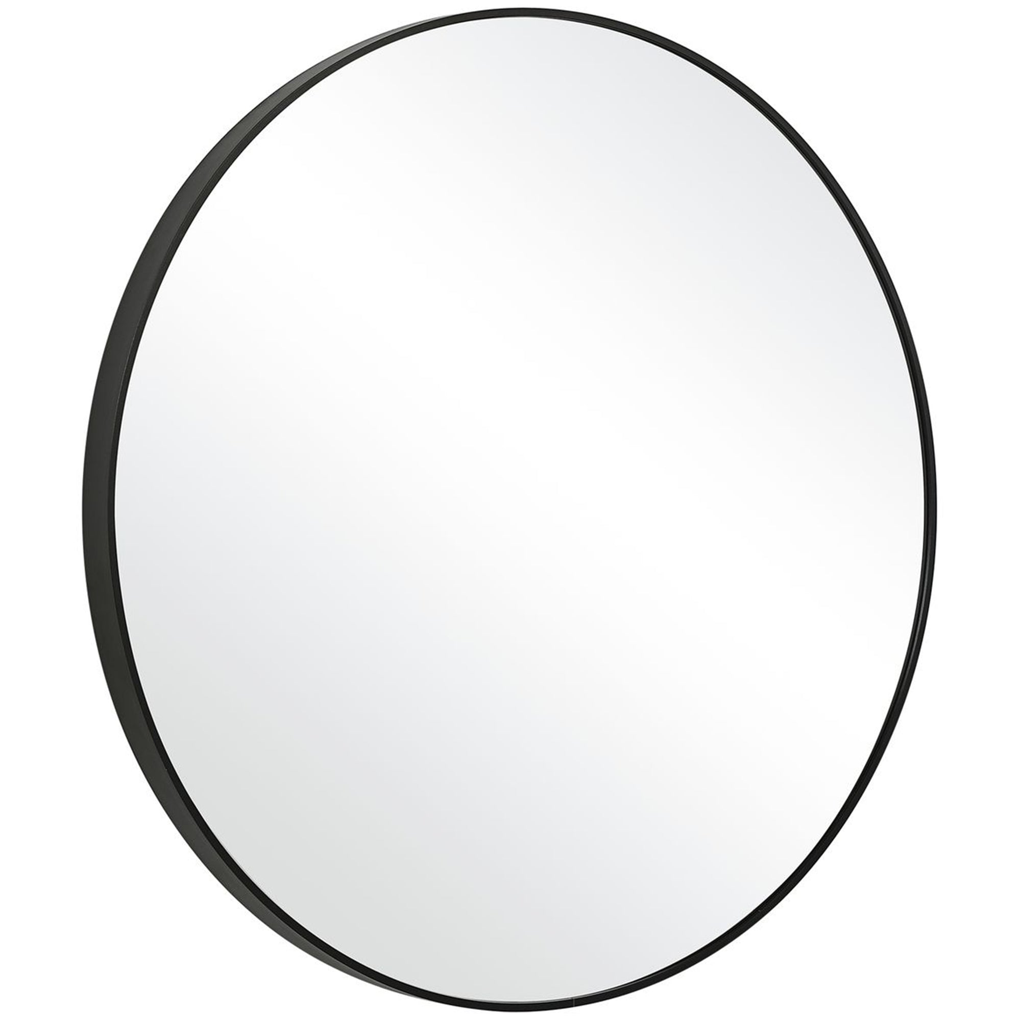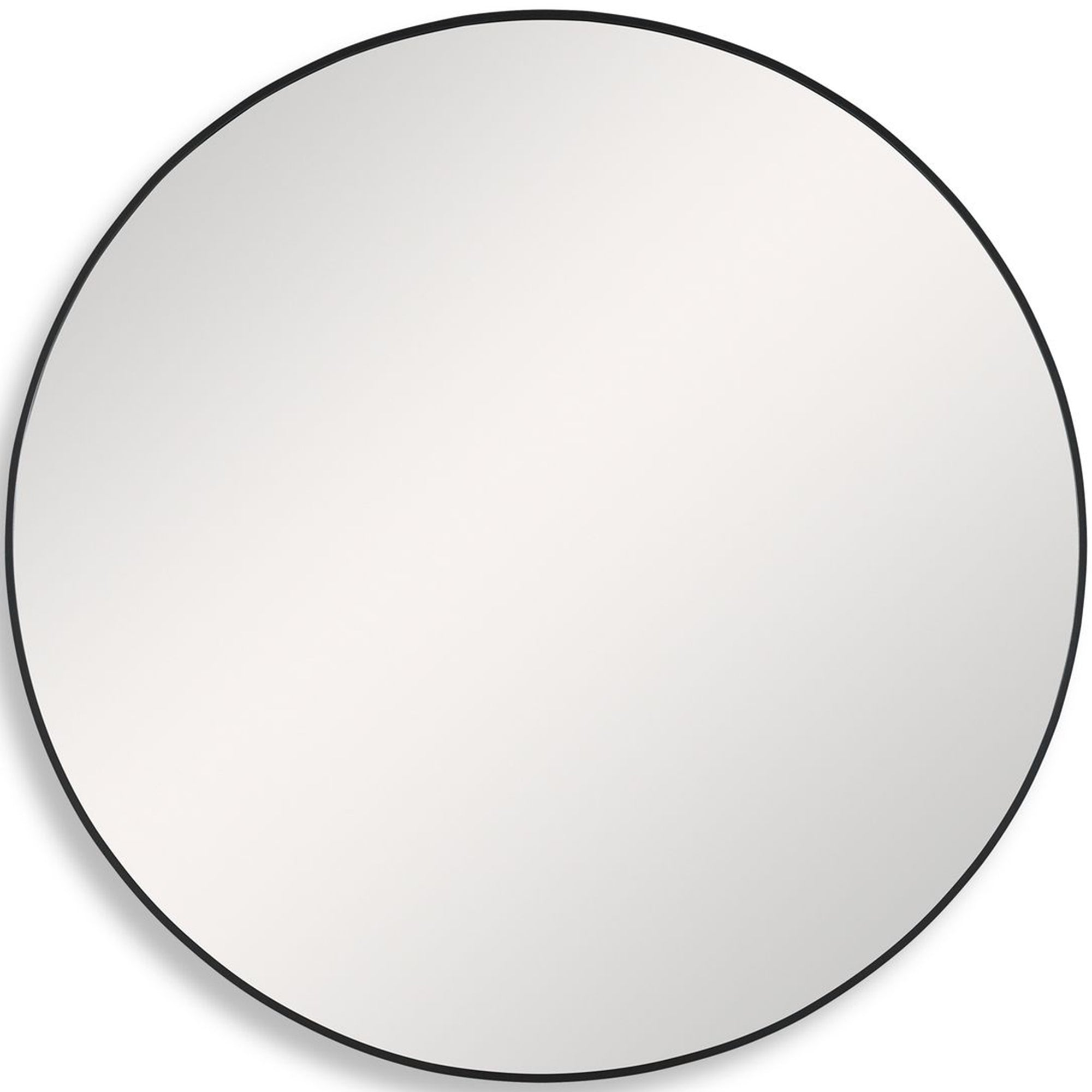 The Edith Mirror is a 34" round mirror featuring a sleek aluminum frame finished in satin black. Its simple and clean design makes it perfect for refreshing a foyer, bathroom, or any living space.