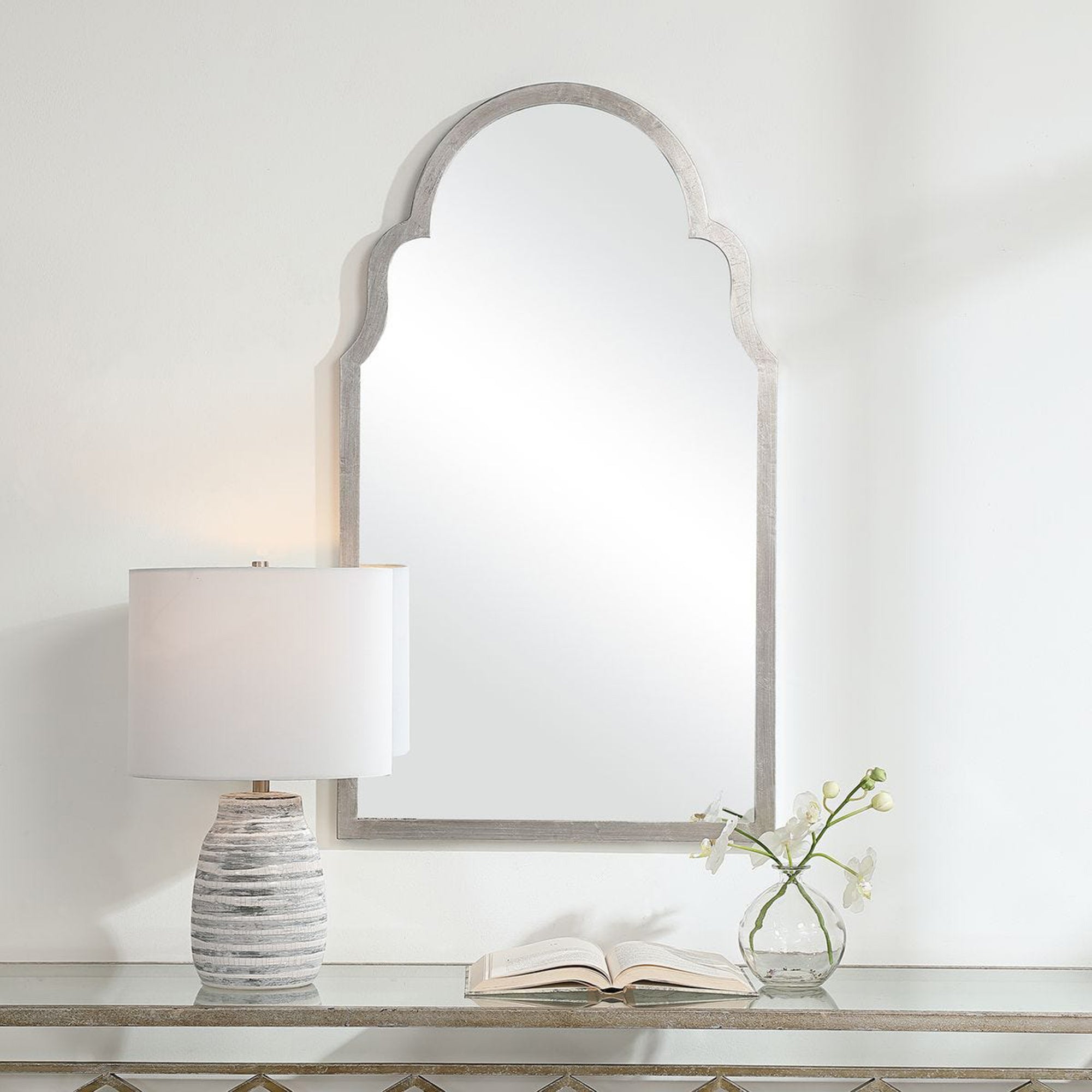 The Hester Mirror features an elegant arch-top silhouette crafted with a durable iron frame. Finished in a refined silver leaf, this beautifully shaped mirror adds a striking decorative element while maintaining a clean, timeless look.