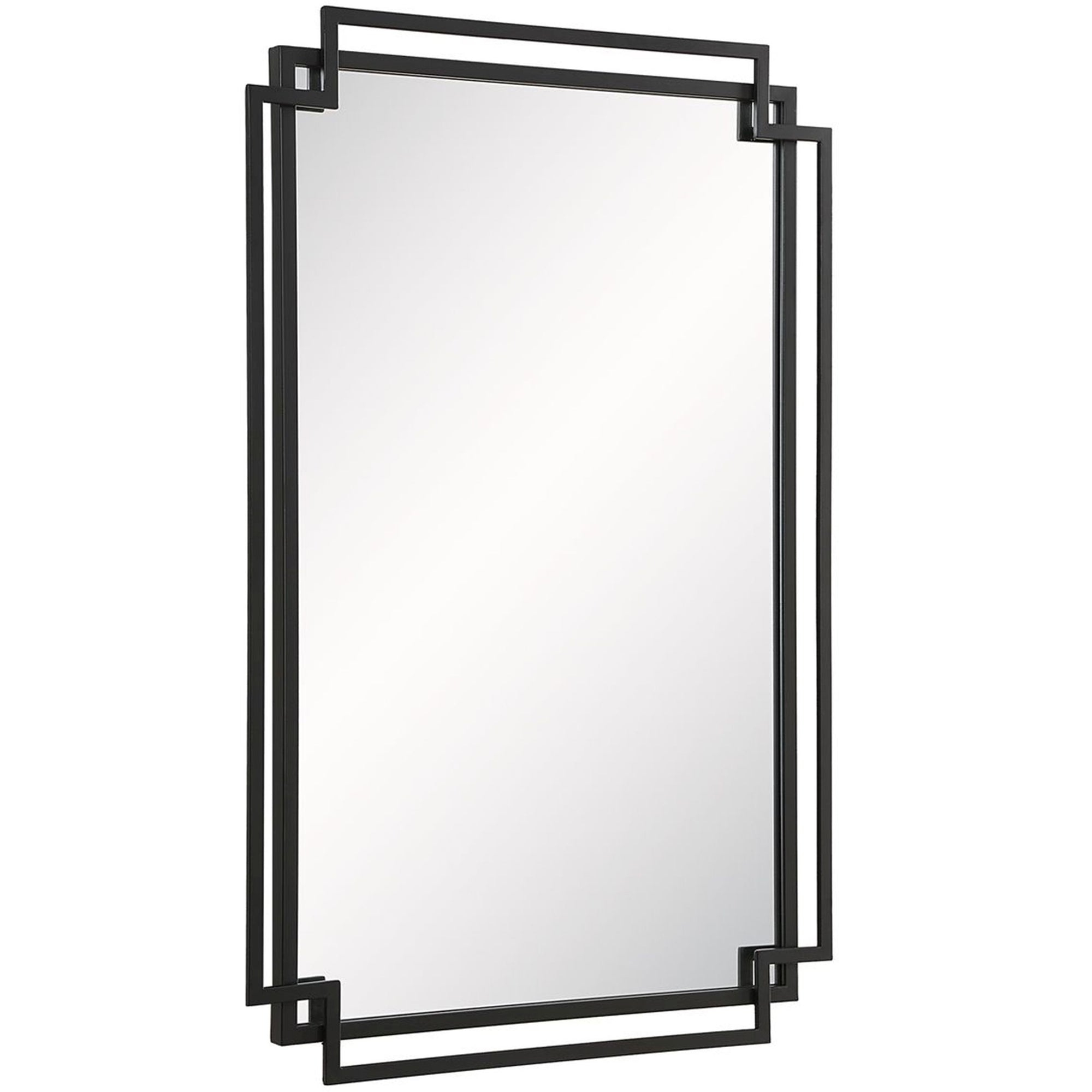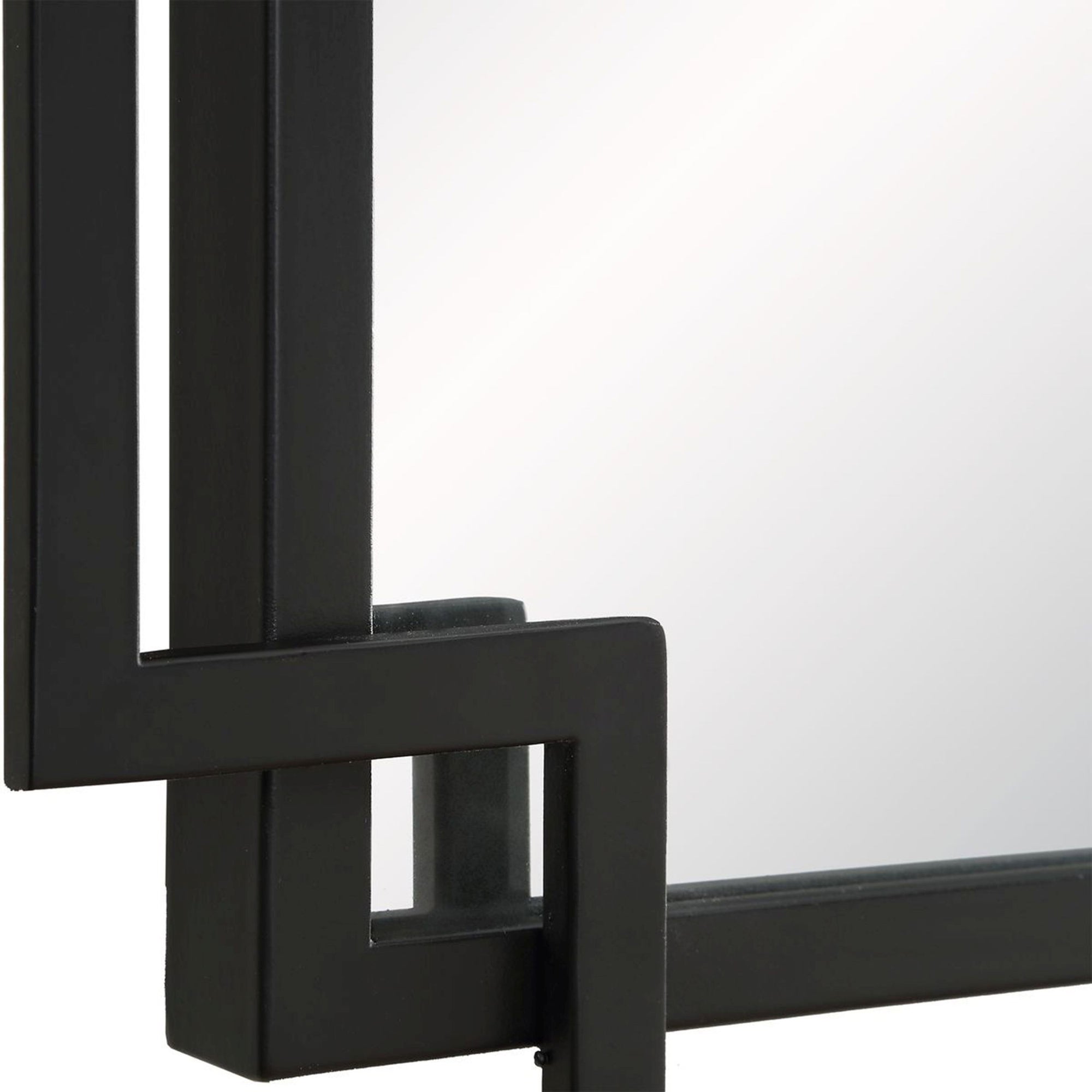 The Holden Mirror features a contemporary layered frame design, created by two overlapping metal outlines for a clean, architectural look. Finished in matte black, this versatile piece can be hung vertically or horizontally to suit any space. Its sleek profile makes it ideal for entryways, bedrooms, or living areas seeking a modern, streamlined touch.