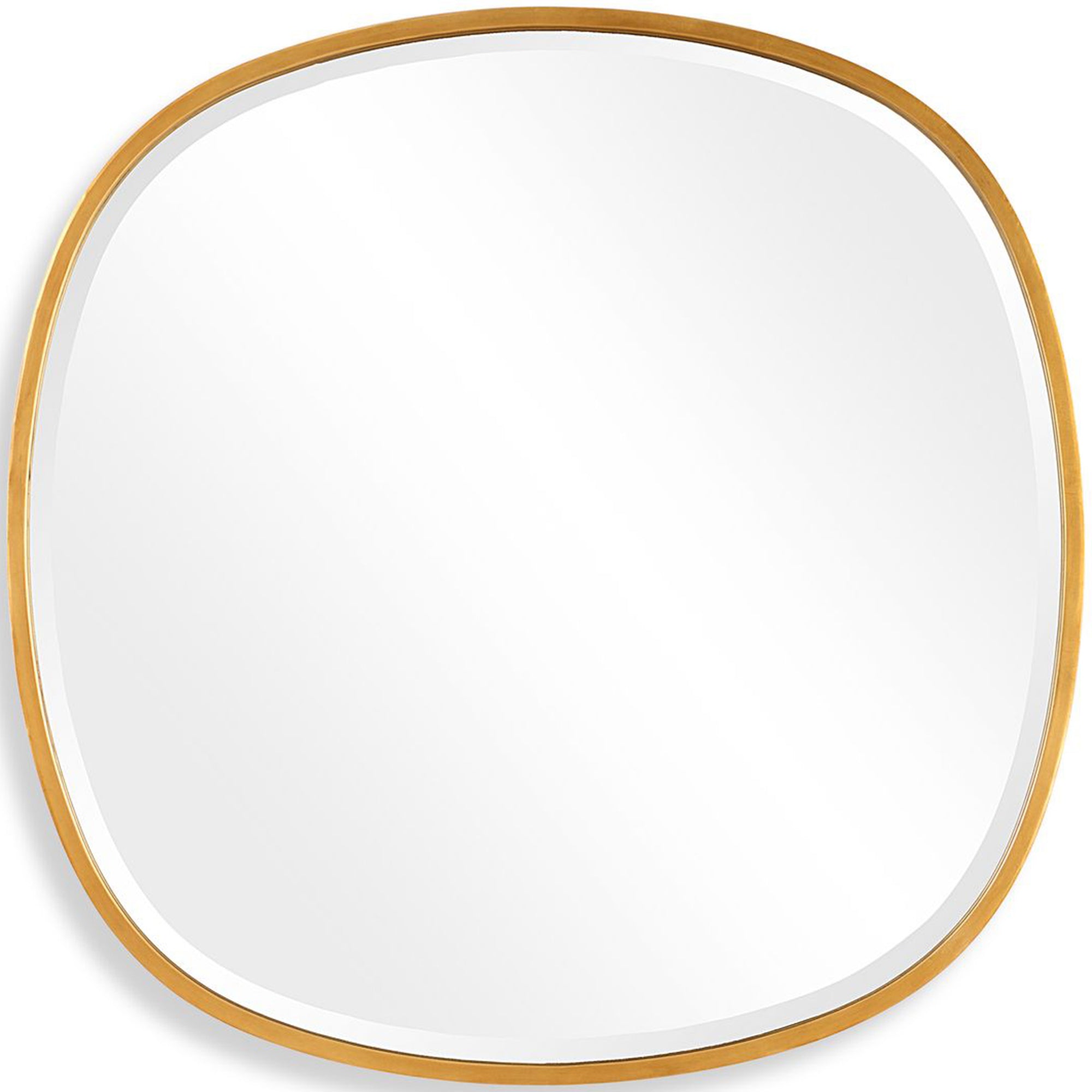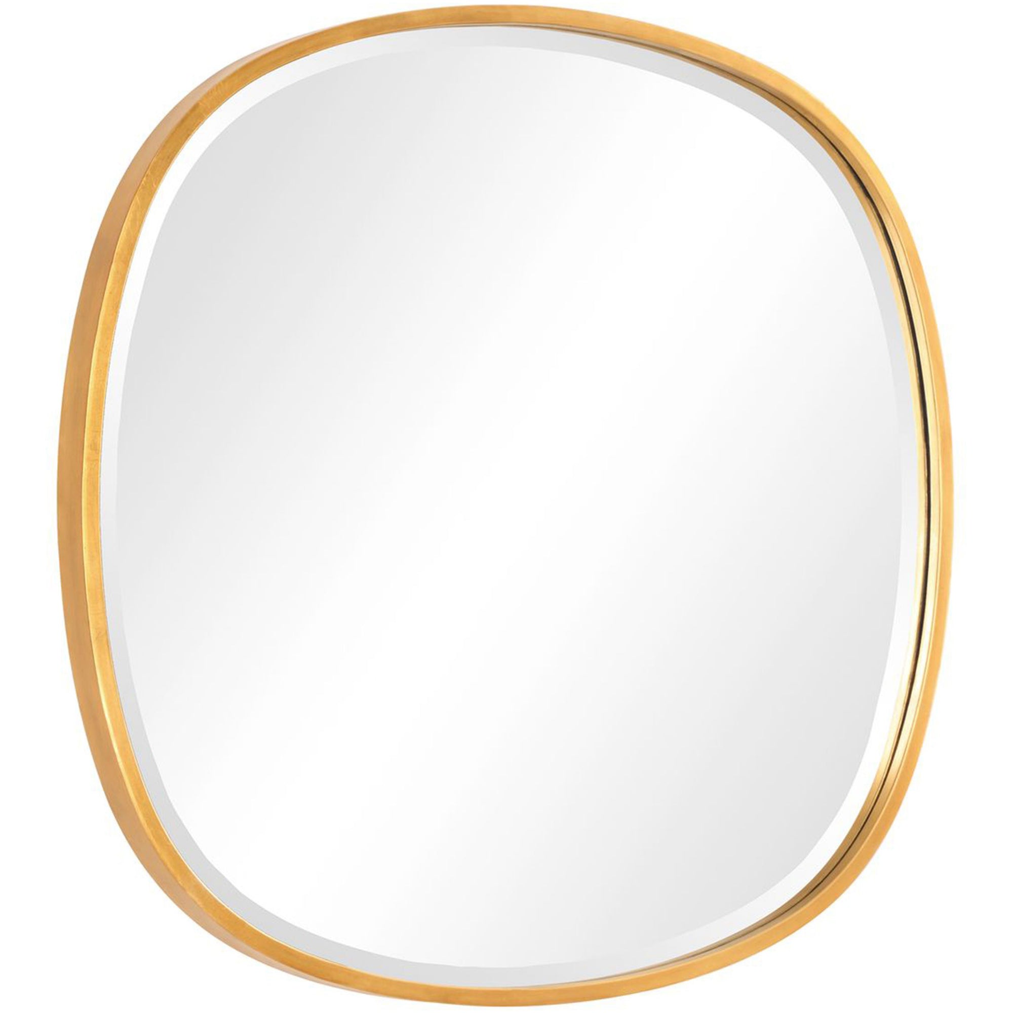The Houston Mirror features a modern interpretation of the classic round shape, with an irregular iron frame finished in gold leaf. The 1" beveled mirror adds depth and elegance, and it can be hung vertically or horizontally to enhance any space.