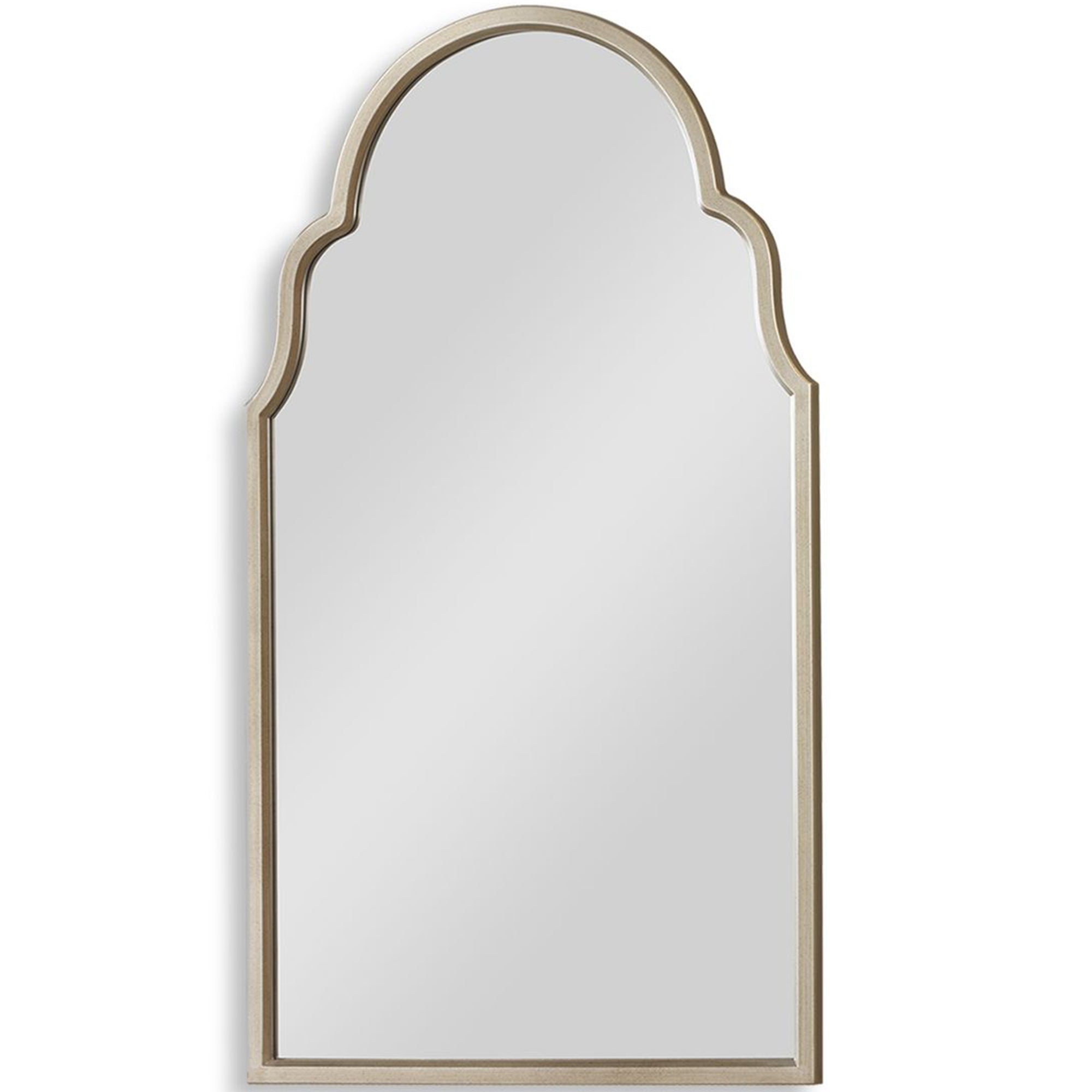 The Imara Mirror features a beautifully shaped arch-top frame with graceful curves, finished in warm silver. Ideal for a foyer or above a bathroom vanity, this elegant mirror serves as a striking focal point in any space.