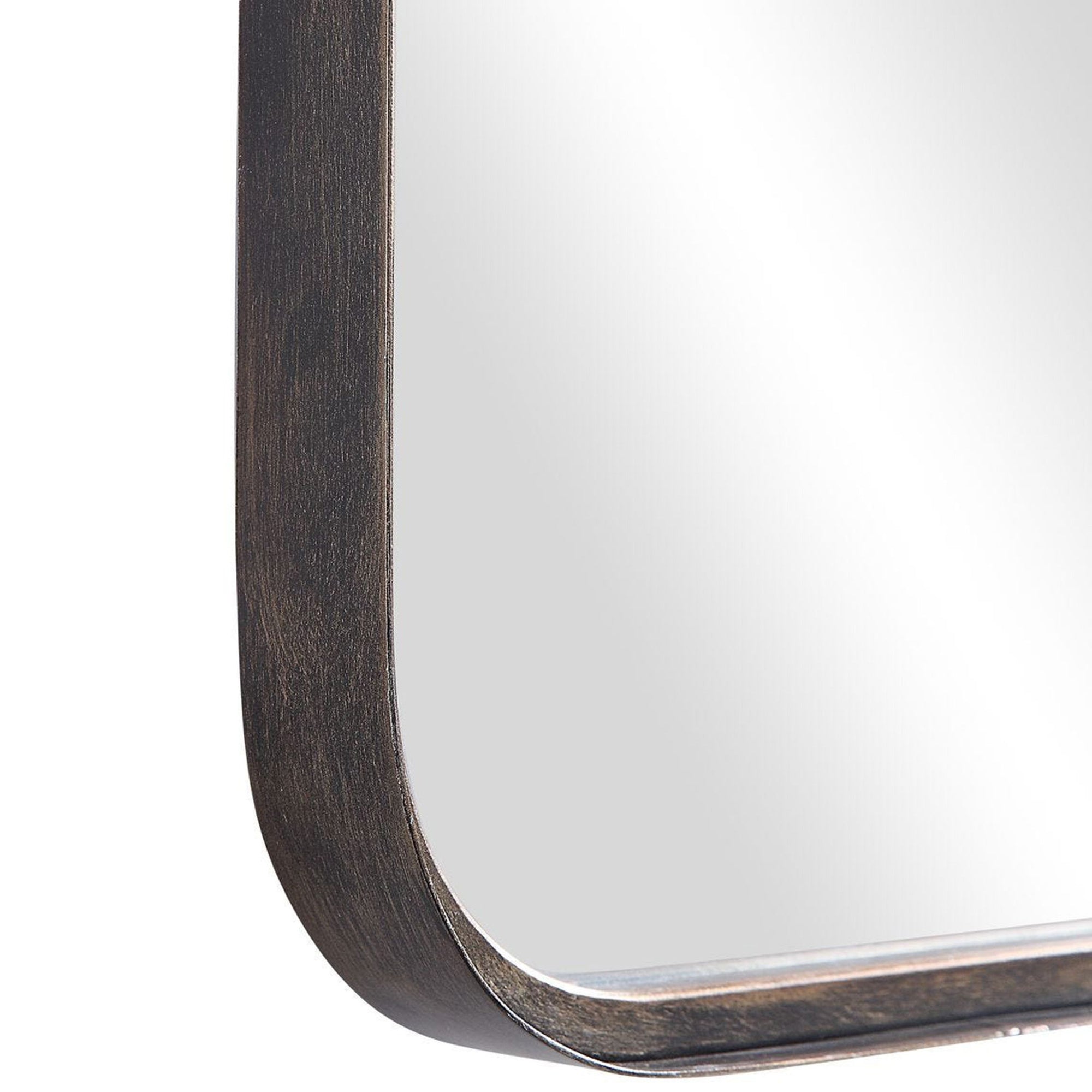The Jaxx Mirror features a rectangular frame with rounded corners for a softer, distinctive look. Finished in dark bronze with subtle gold highlights, this versatile mirror may be hung vertically or horizontally to suit any space.