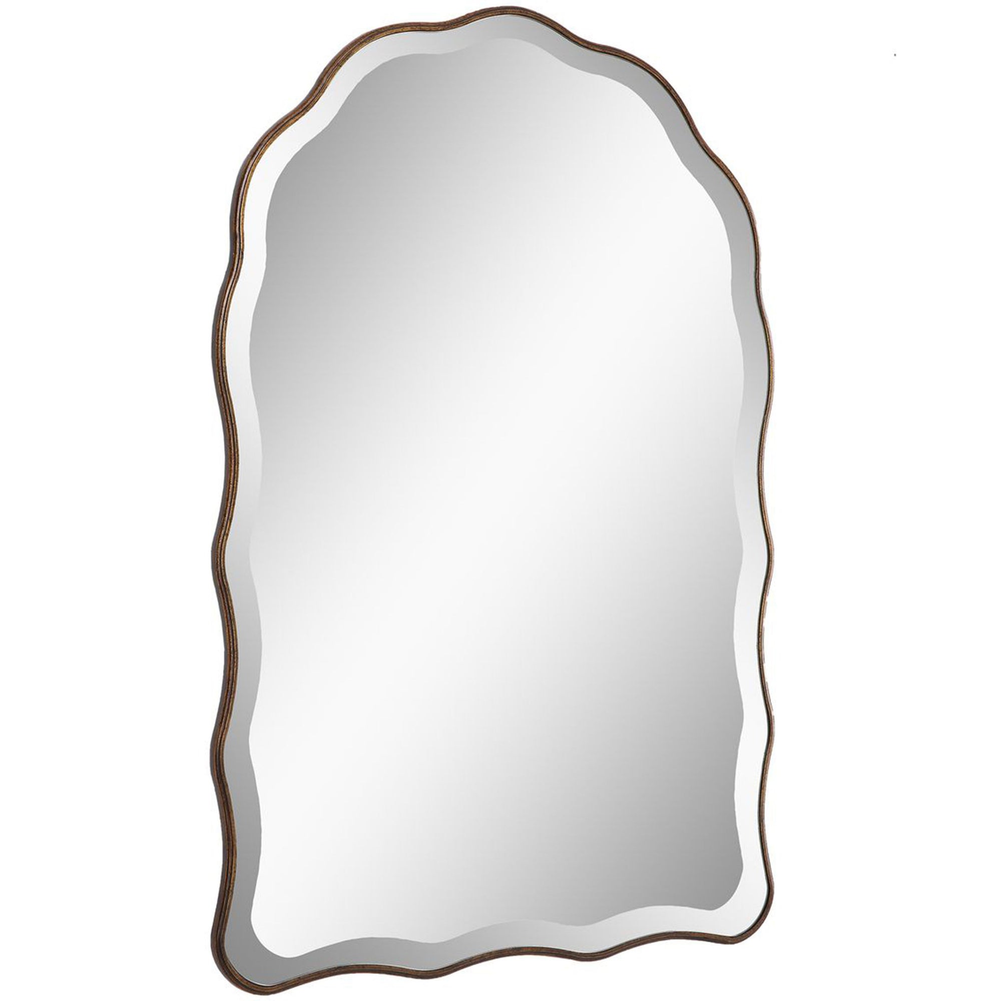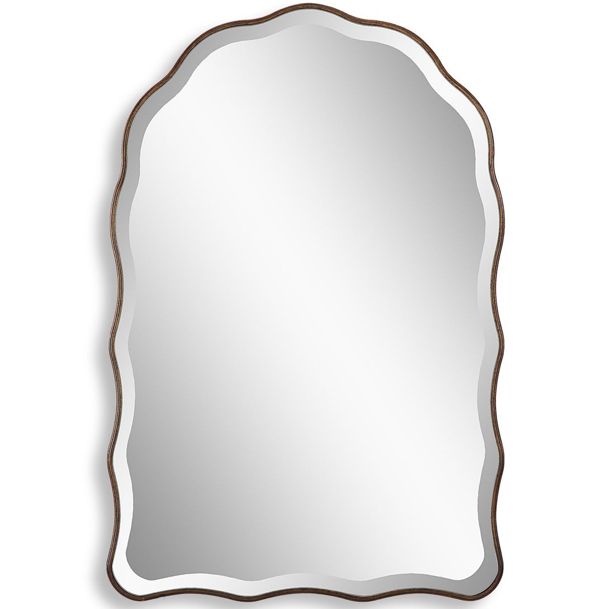 The Leander Mirror features an arch top frame with scalloped edges, creating a delicate and elegant look. The frame surrounds a 1" beveled mirror and may be hung either vertically or horizontally.